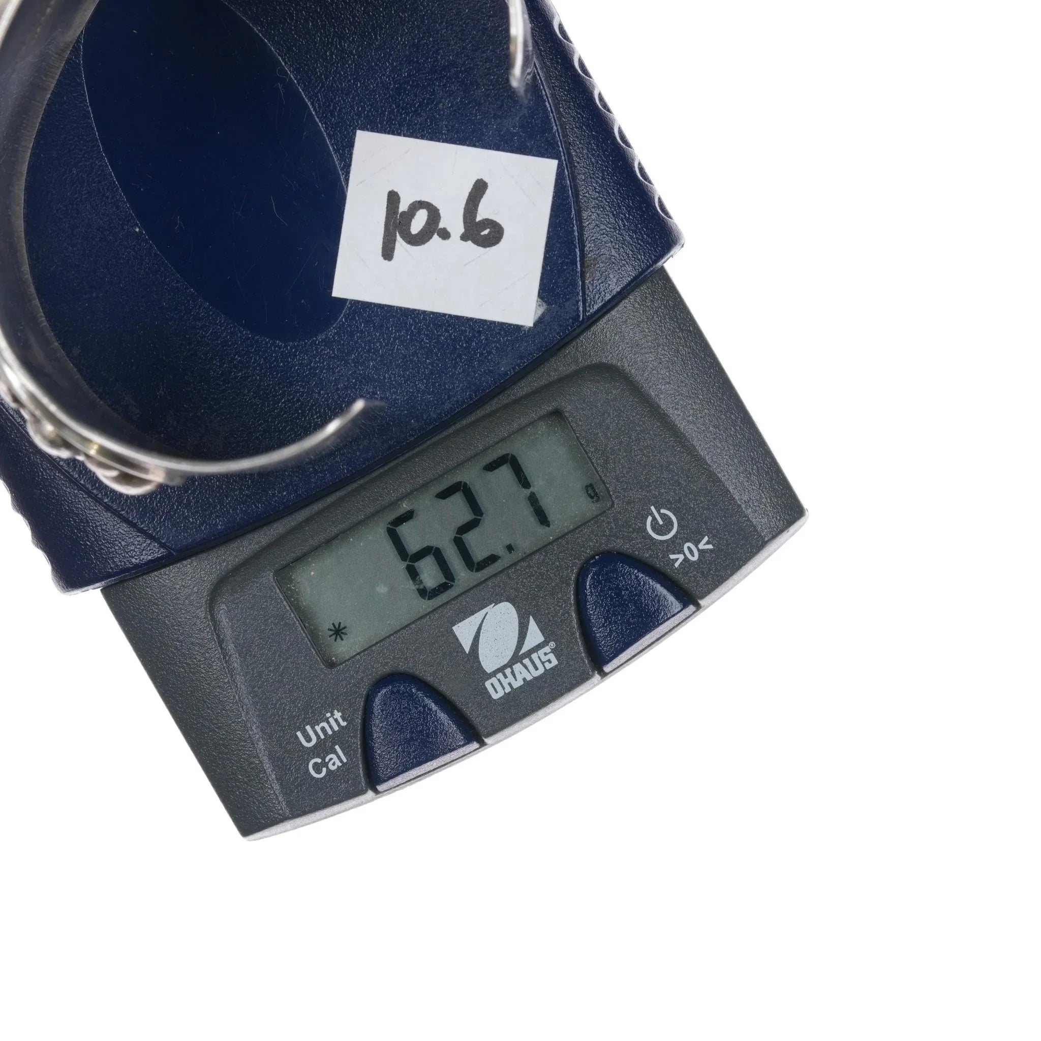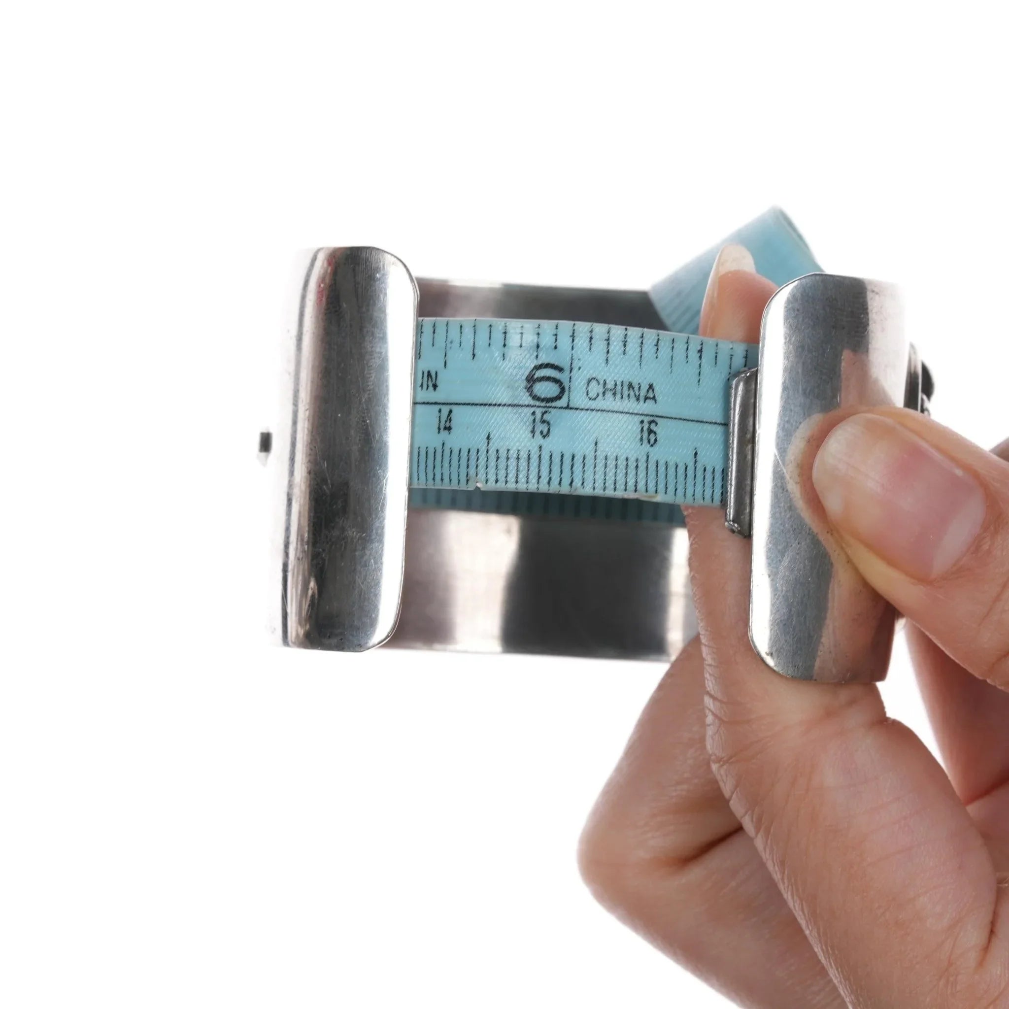 All precious metals are tested and guaranteed, any Native American jewelry<br>referred to as Silver or Sterling is guaranteed to be a minimum of 90% (coin)<br>silver and possibly higher content. Anything marked is guaranteed to be what<br>it‘s marked, most bracelets are photographed on a 6" wrist (non hairy), rings<br>photographed on the appropriate sized finger when possible. With bracelets if<br>the measurement is not given in the description then inside circumference is<br>shown where the metal meets the number on the the cloth tape measure.