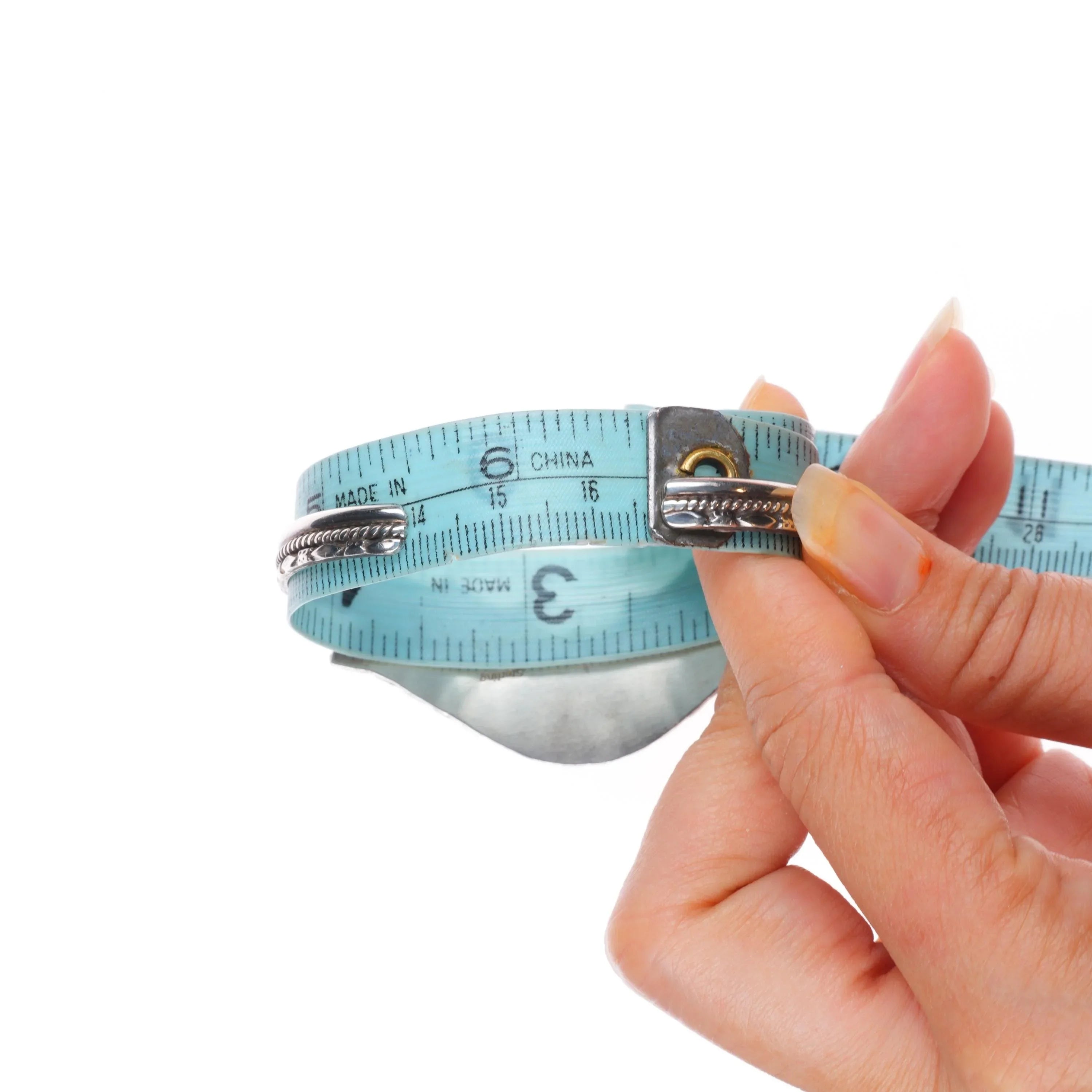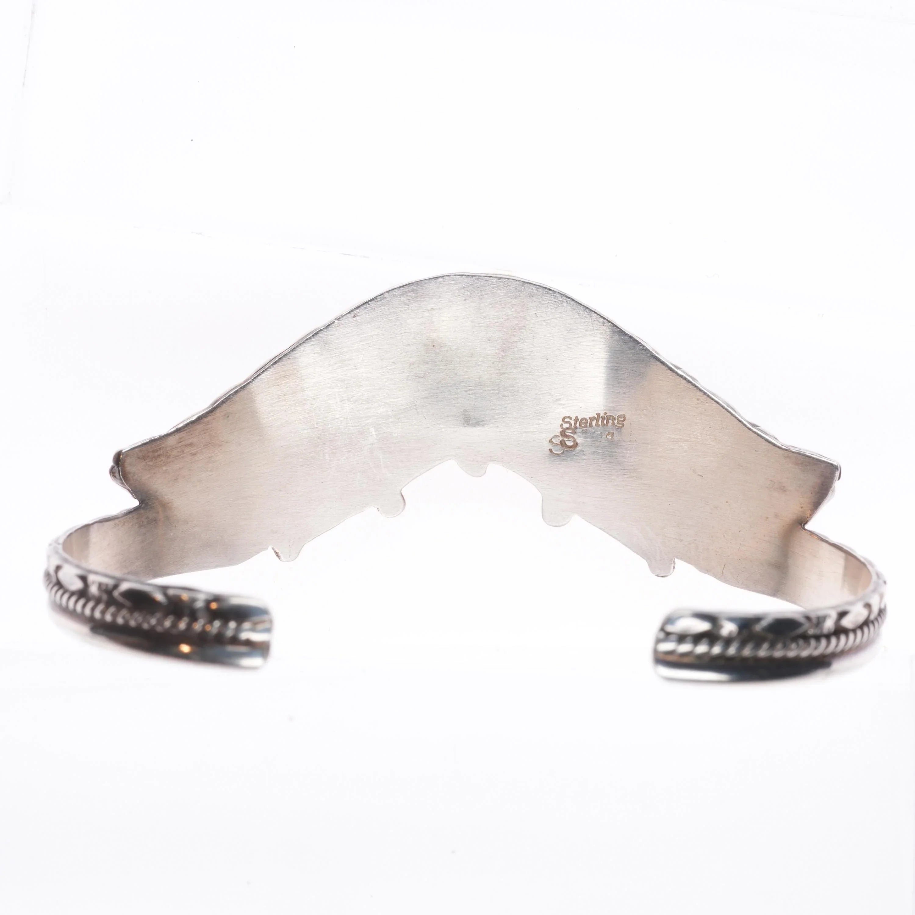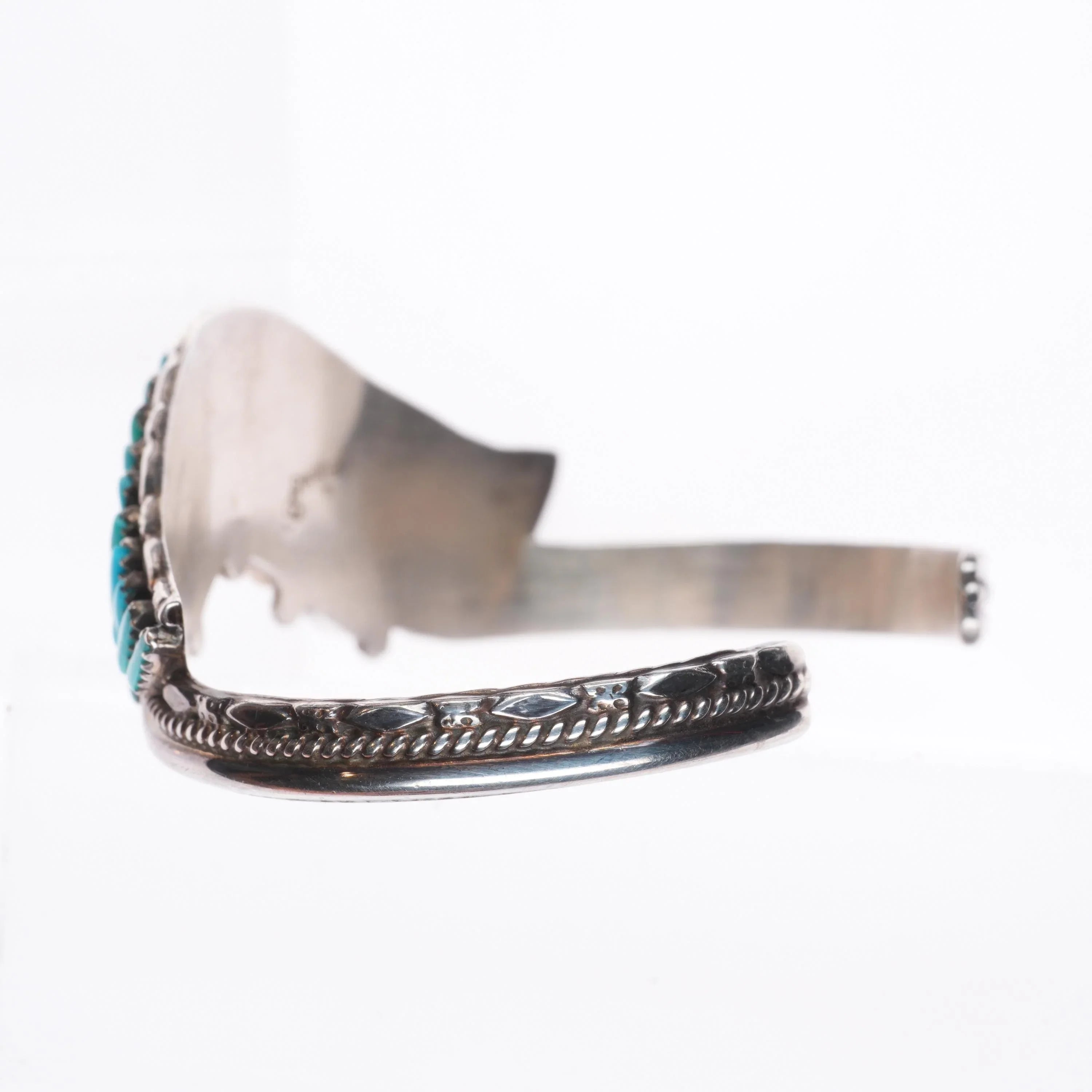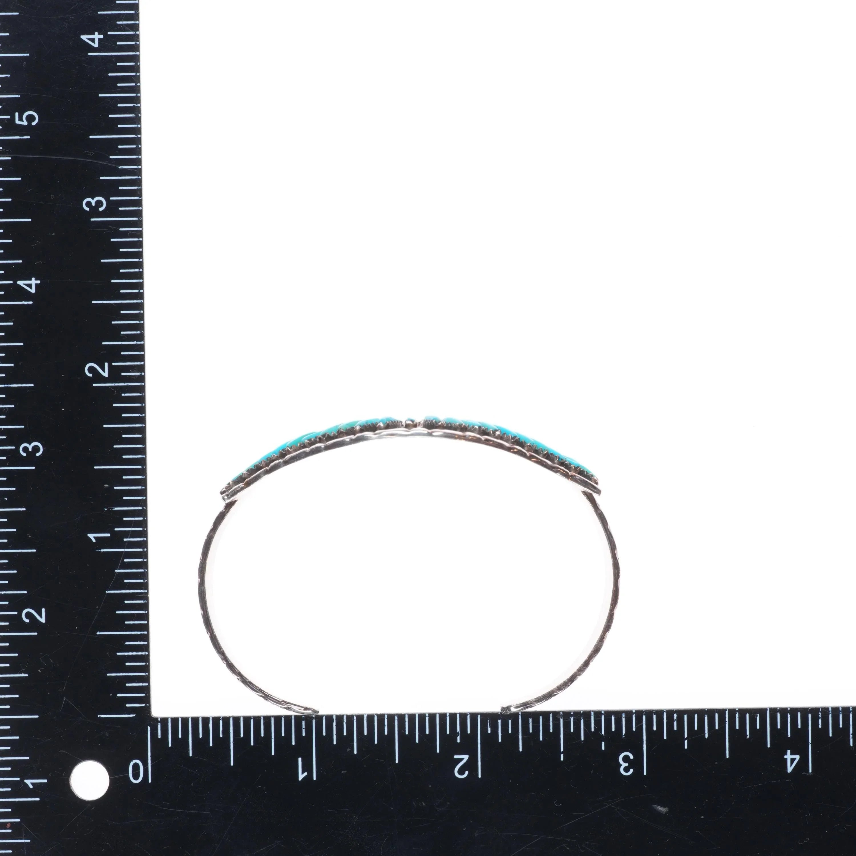 6.5" BB Zuni sterling silver turquoise curved needlepoint cuff bracelet