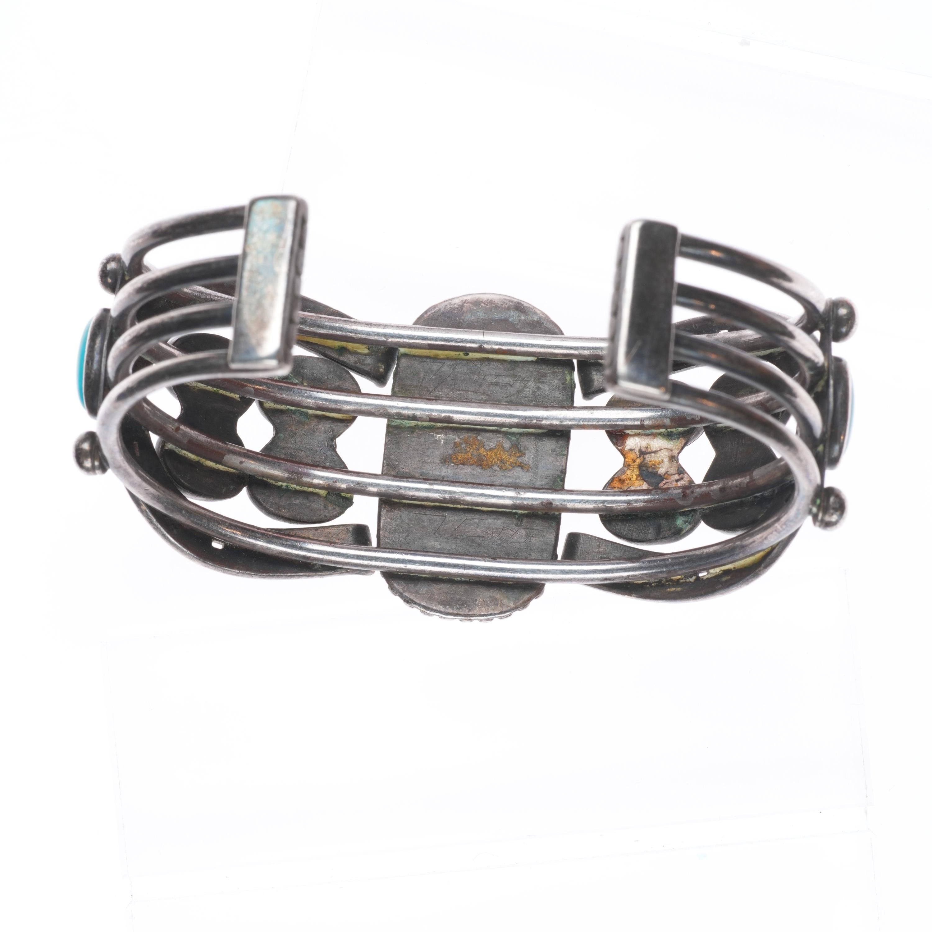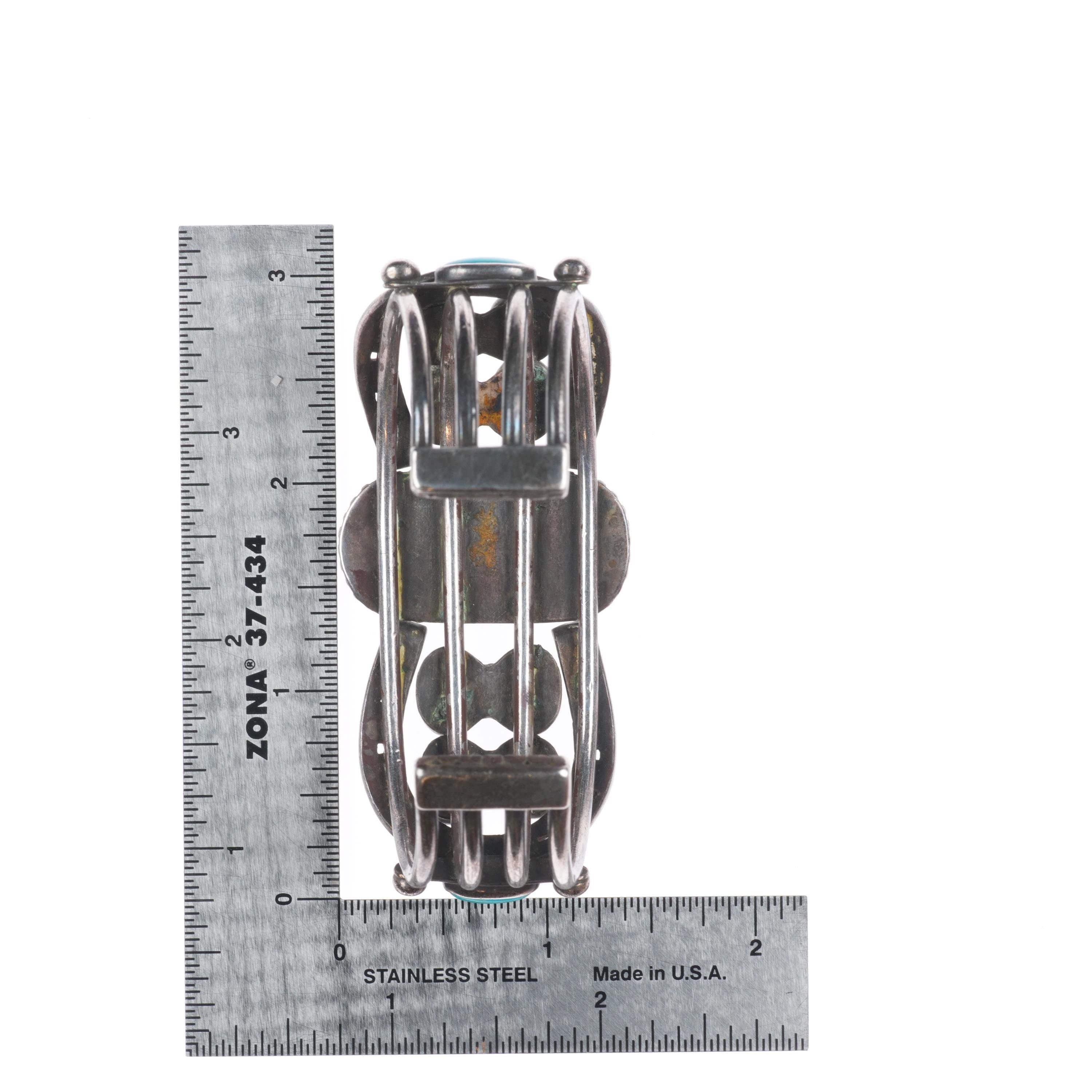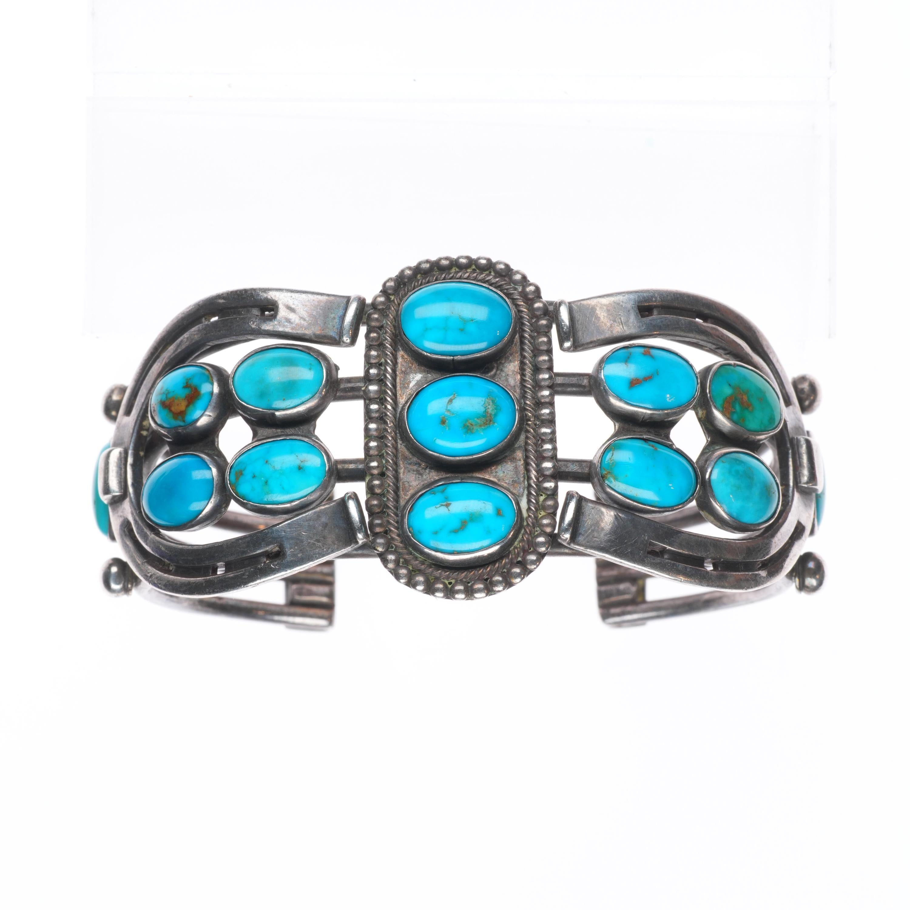 6.5" c1940 Navajo Blue Gem turquoise Horseshoes sterling silver cuff bracelet. Tested and guaranteed solid sterling silver with weight and measurements in pictures. Circa second quarter of the 20th century with some expected age appropriate wear.