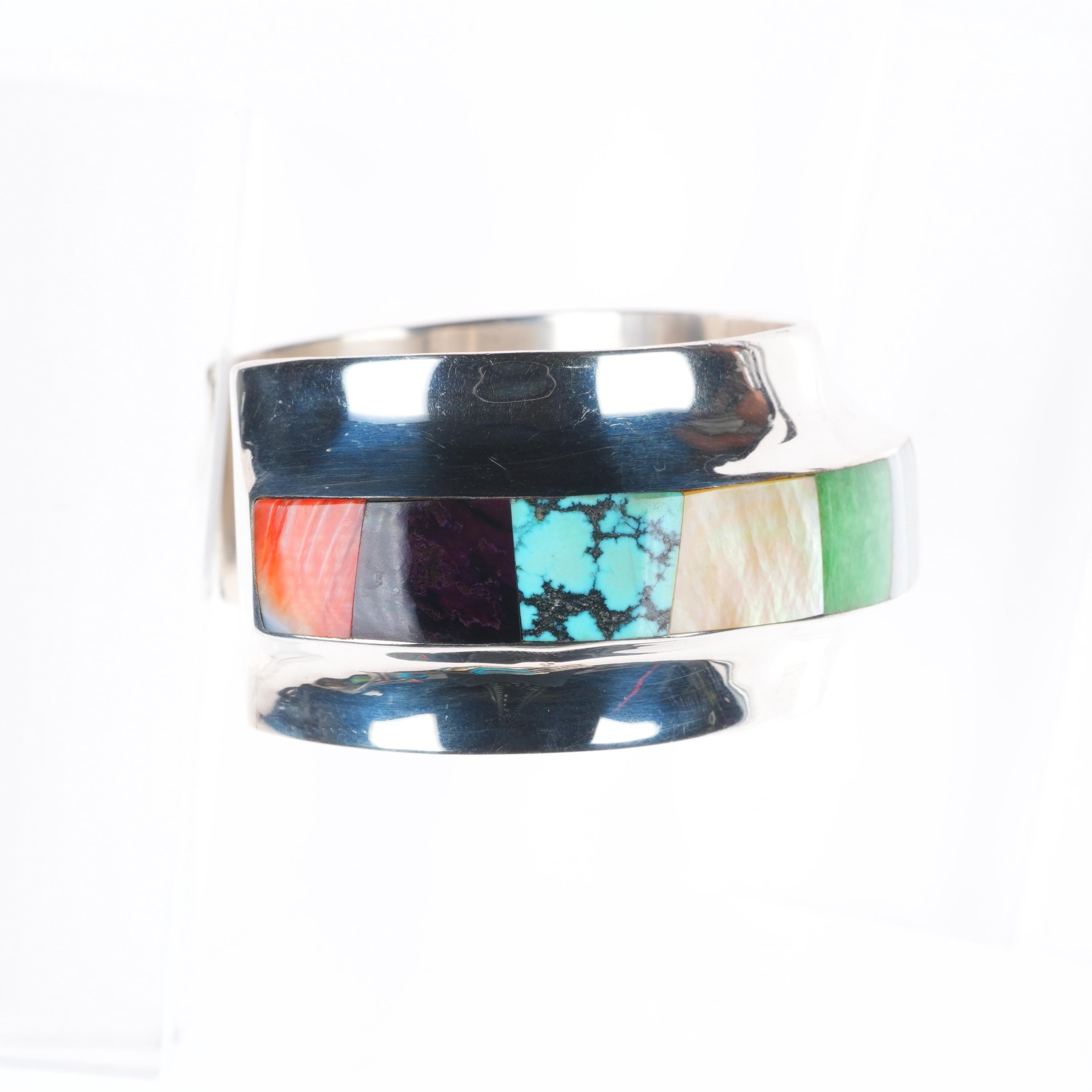 6.5" Frank Carrillo Laguna Sterling silver Sugilite, Coral, opal cuff bracelet