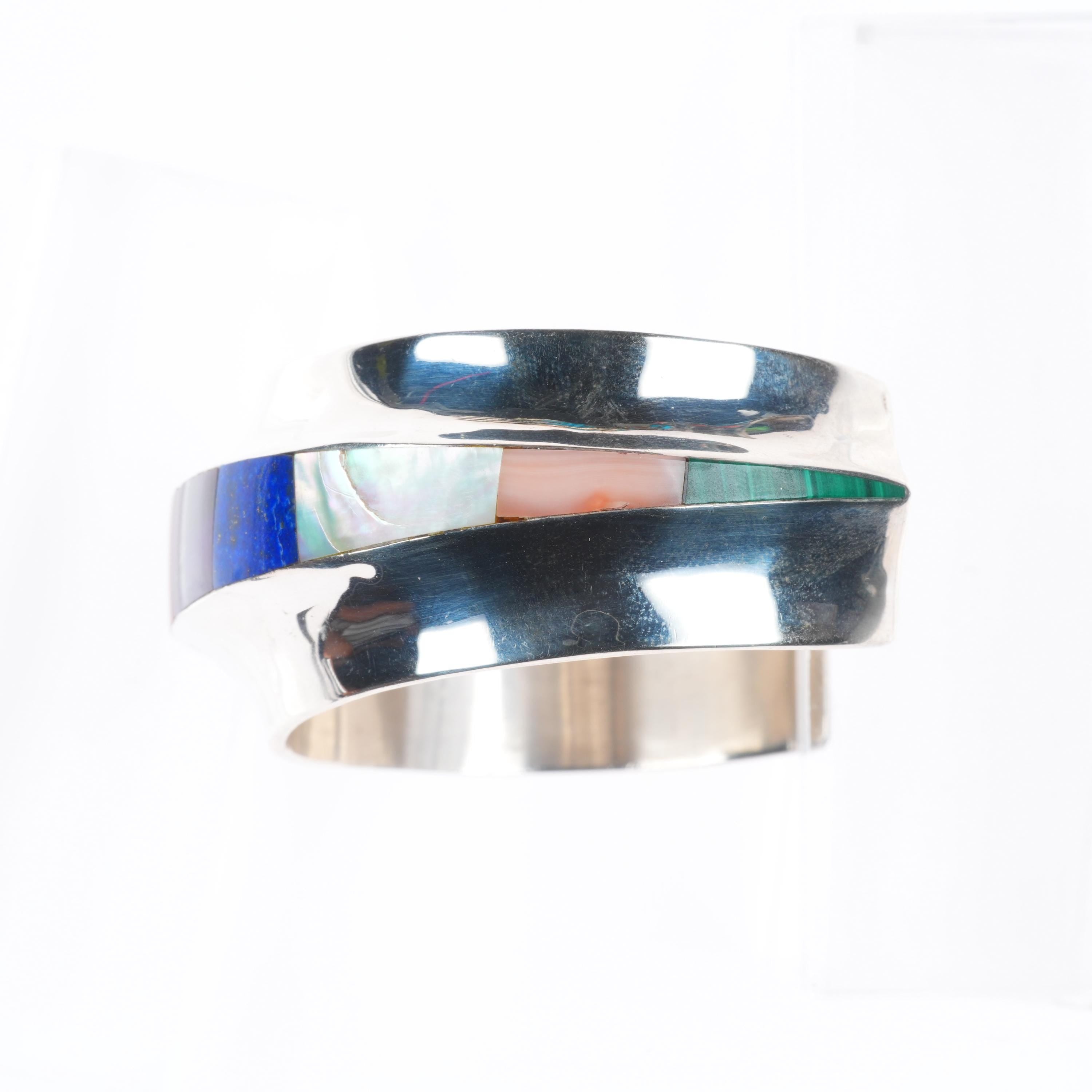 6.5" Frank Carrillo Laguna Sterling silver Sugilite, Coral, opal cuff bracelet. Tested and guaranteed solid sterling silver with weight and measurements in pictures. Great condition with age appropriate wear, circa last quarter of the 20th century.