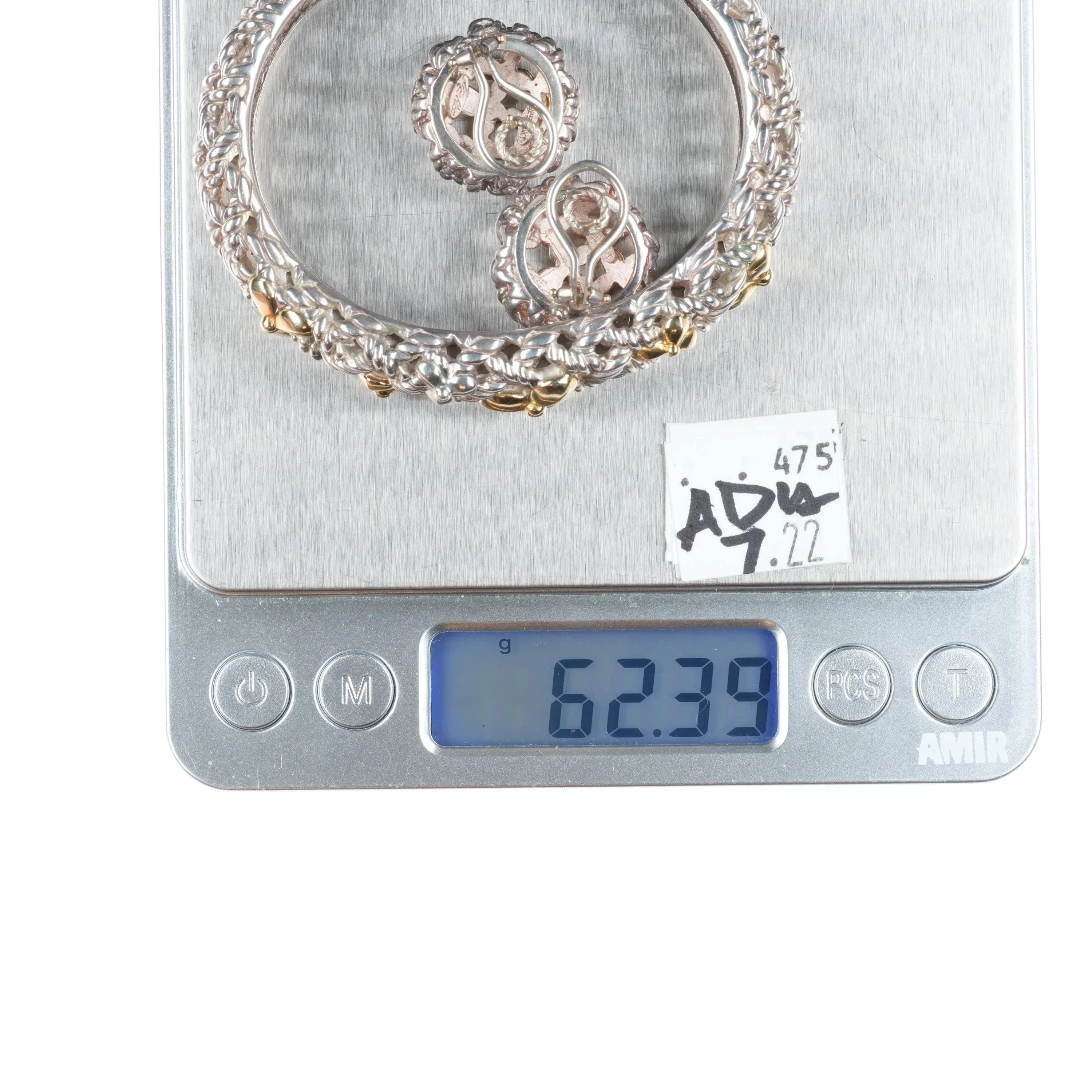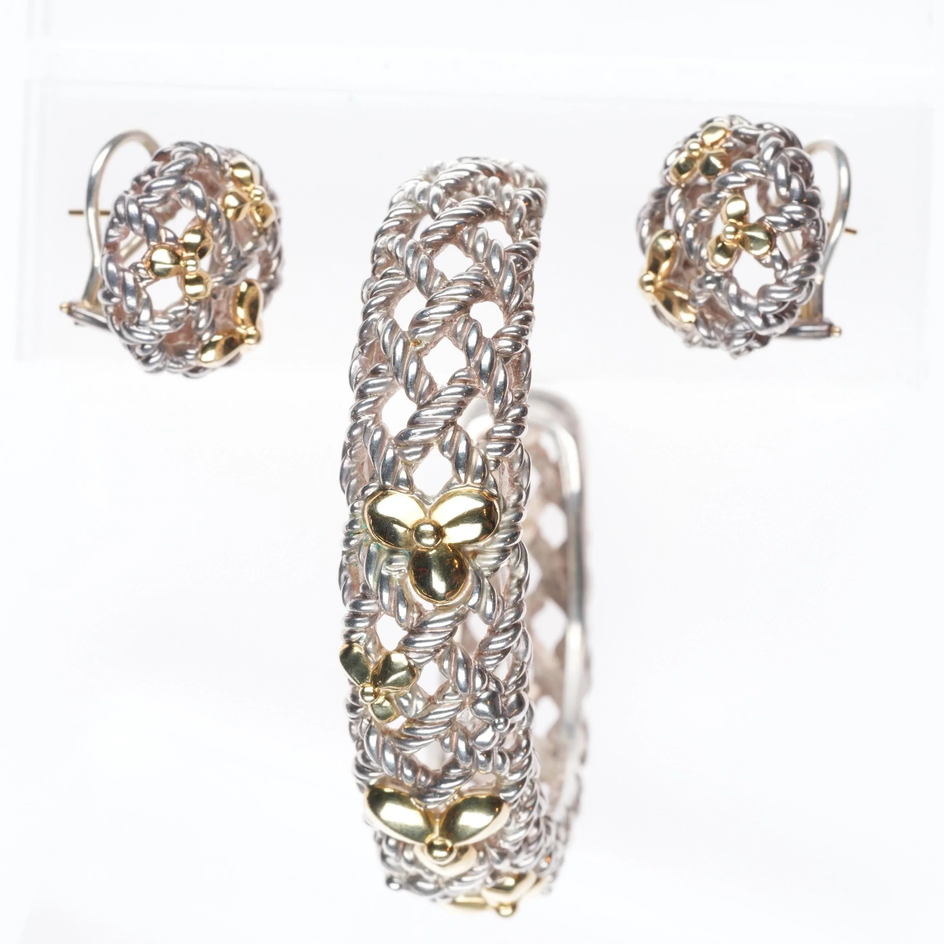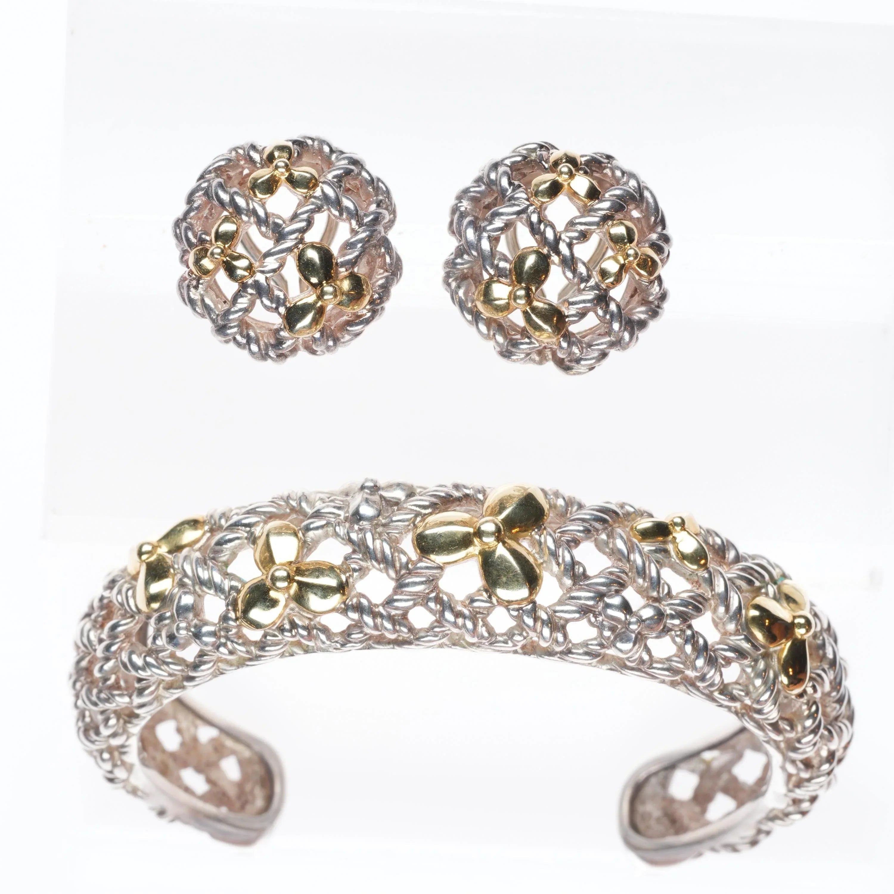 6.5" Retro Bill Blass sterling silver/18k gold cuff bracelet/earrings set