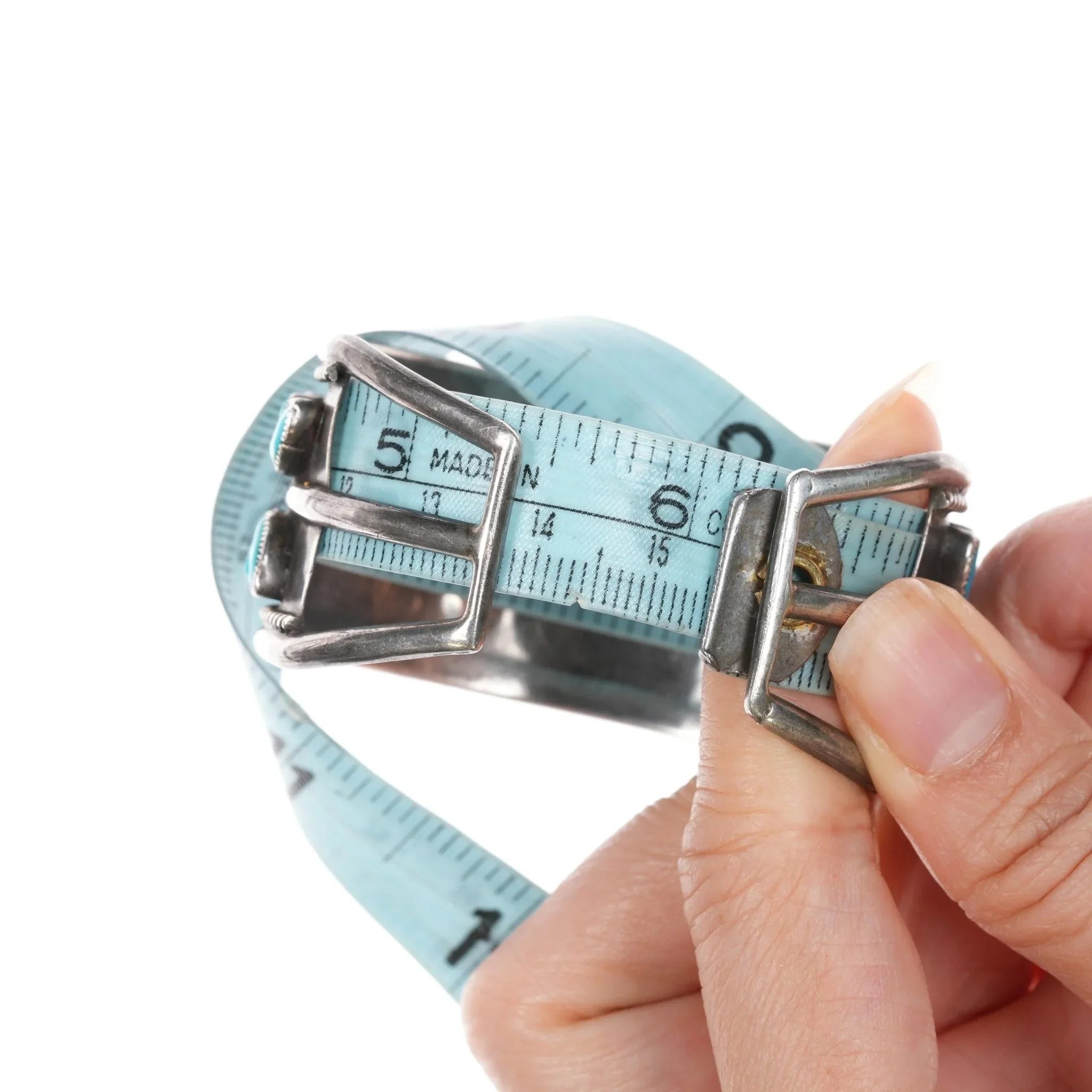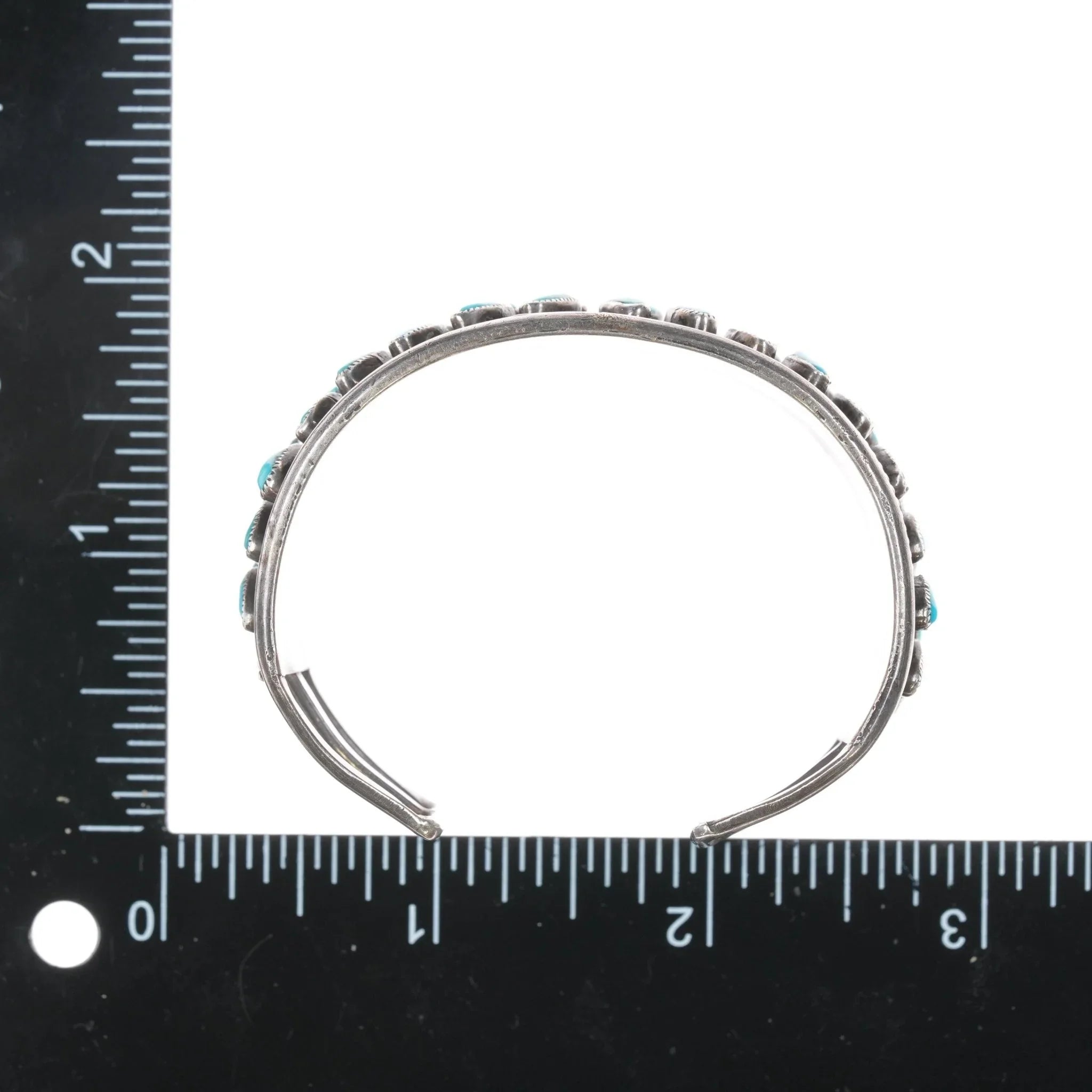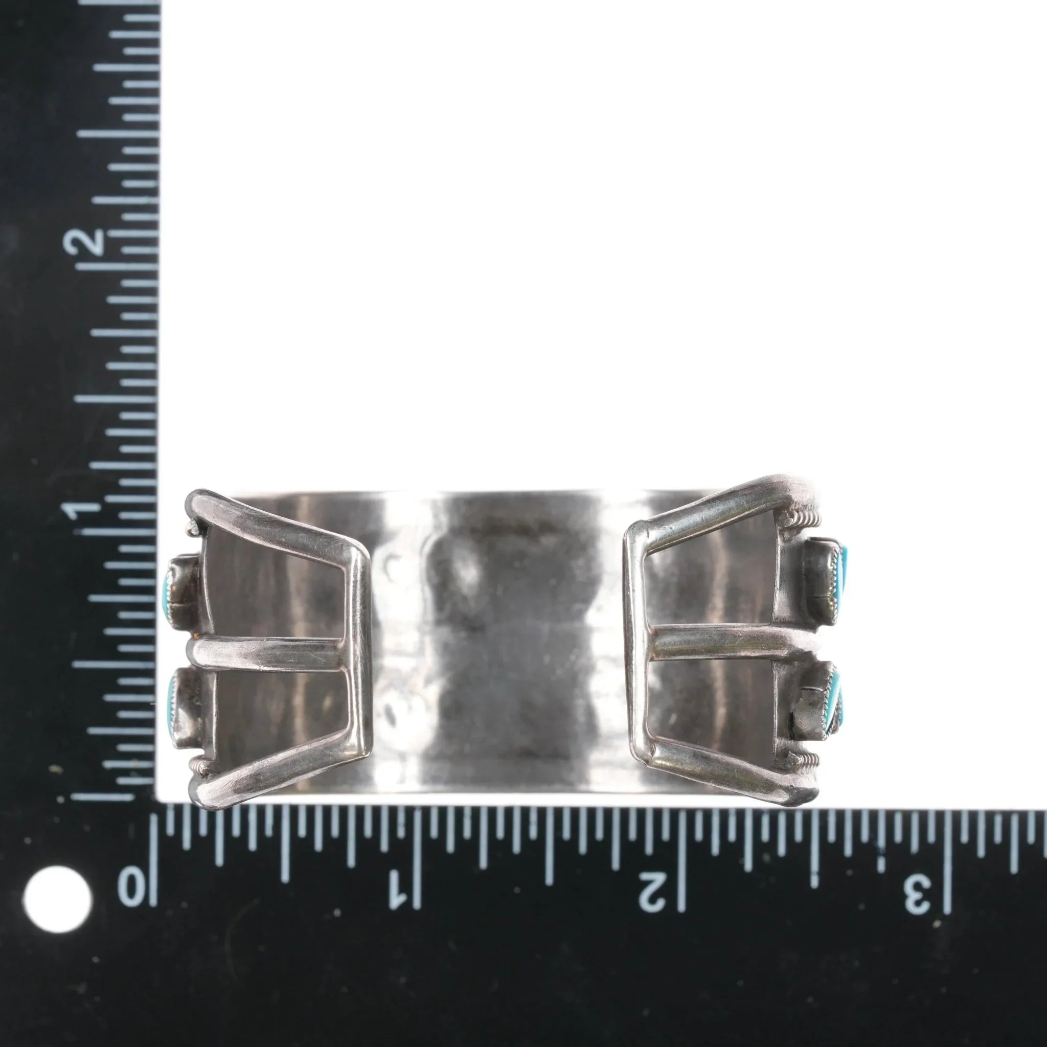 6" 50's-60's Zuni sleeping beauty turquoise, sterling double row cuff bracelet