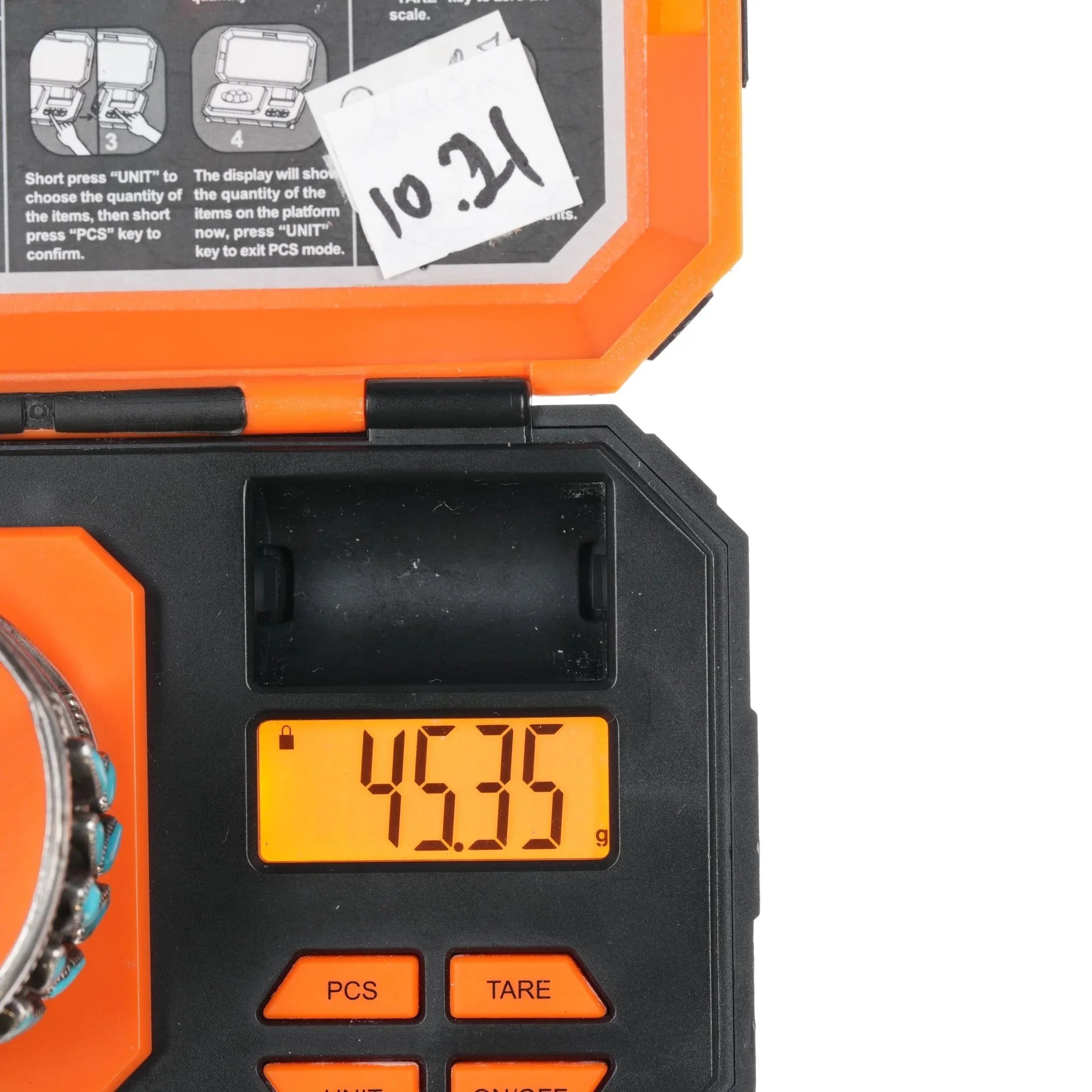 6" 50‘s-60‘s Zuni sleeping beauty turquoise, sterling double row cuff bracelet. One stone secure in bezel with old fracture. No significant issues, weight and measurements in pics. Unmarked as typical of this era (third quarter of the 20th century).