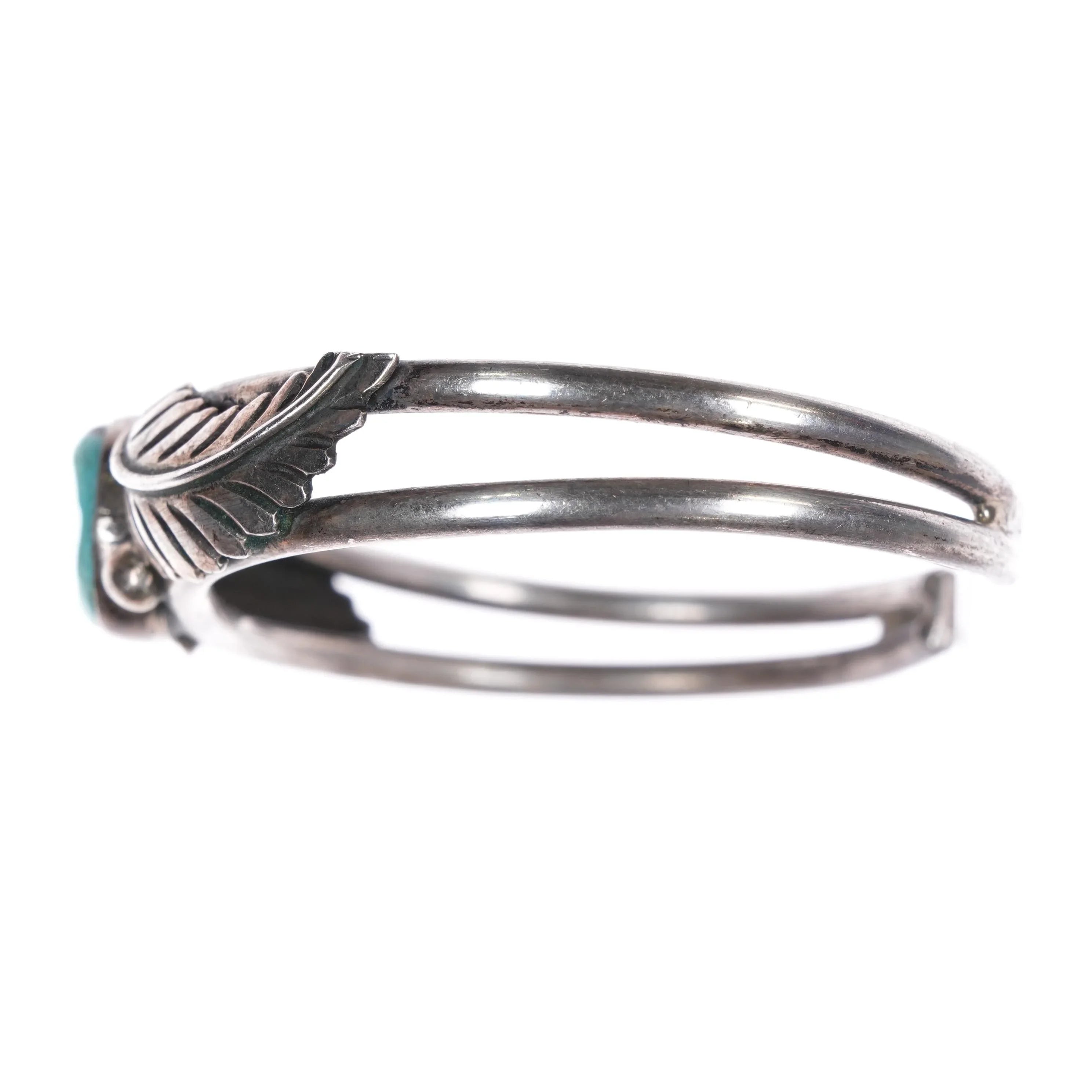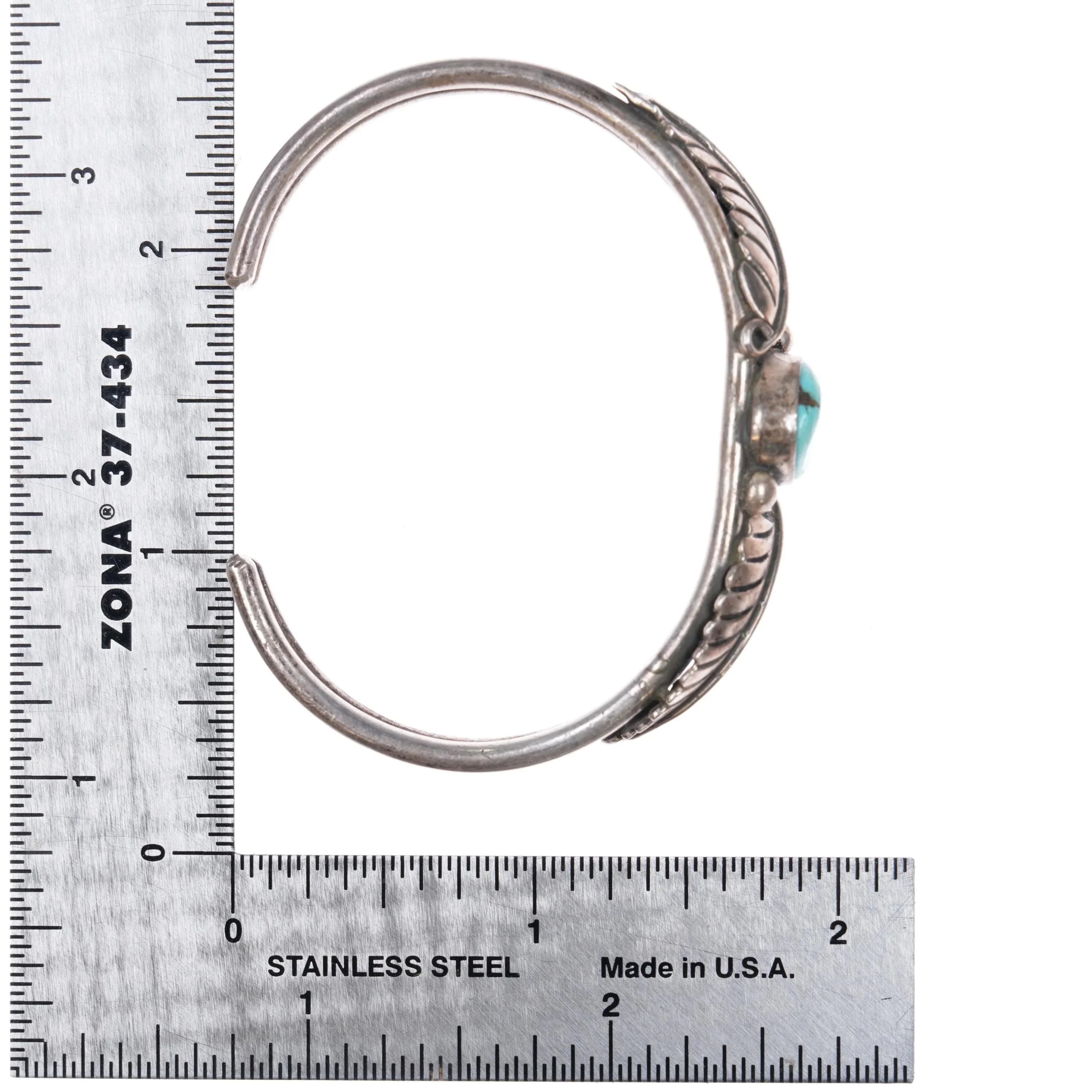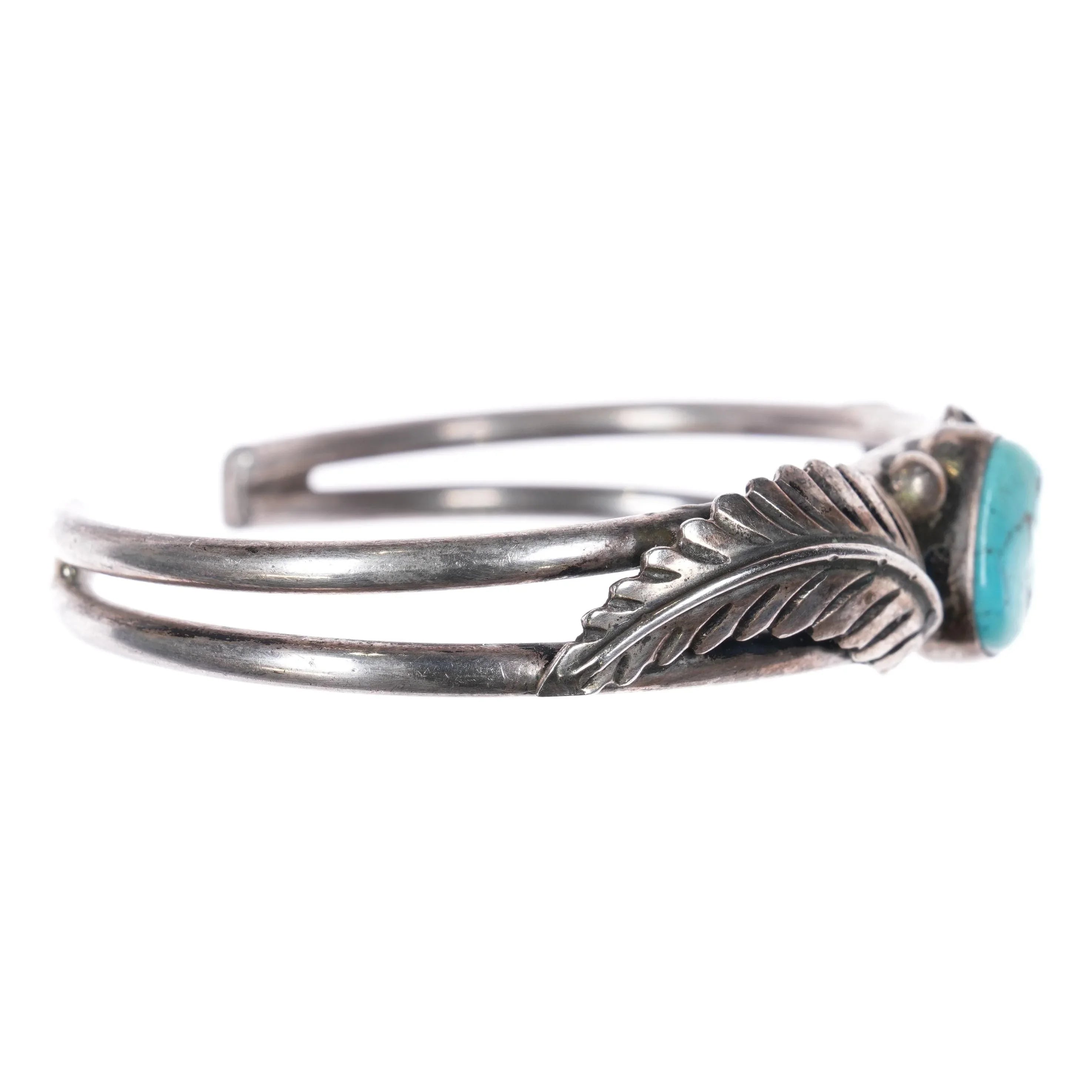 6" 60‘s-70‘s Navajo sterling slim/sturdy feather blossom silver cuff bracelet. Tested and guaranteed solid sterling silver with no hallmark. Weight and measurements in pictures. Some expected wear, no cracks or breaks. Very sturdy. Circa 60‘s-70‘s.