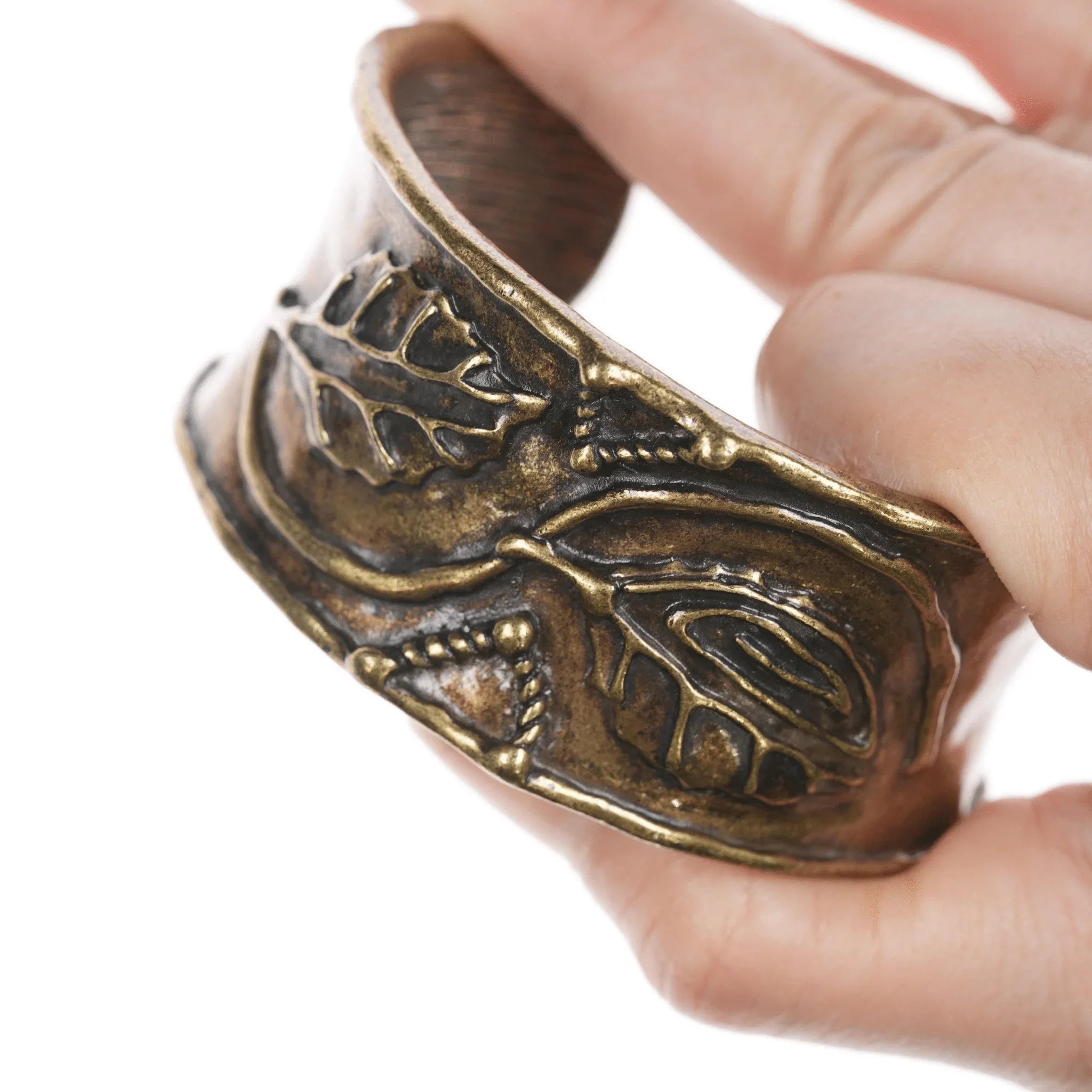 6 7/8" Artisan cast brass cuff bracelet, great looking with no identifying marks.