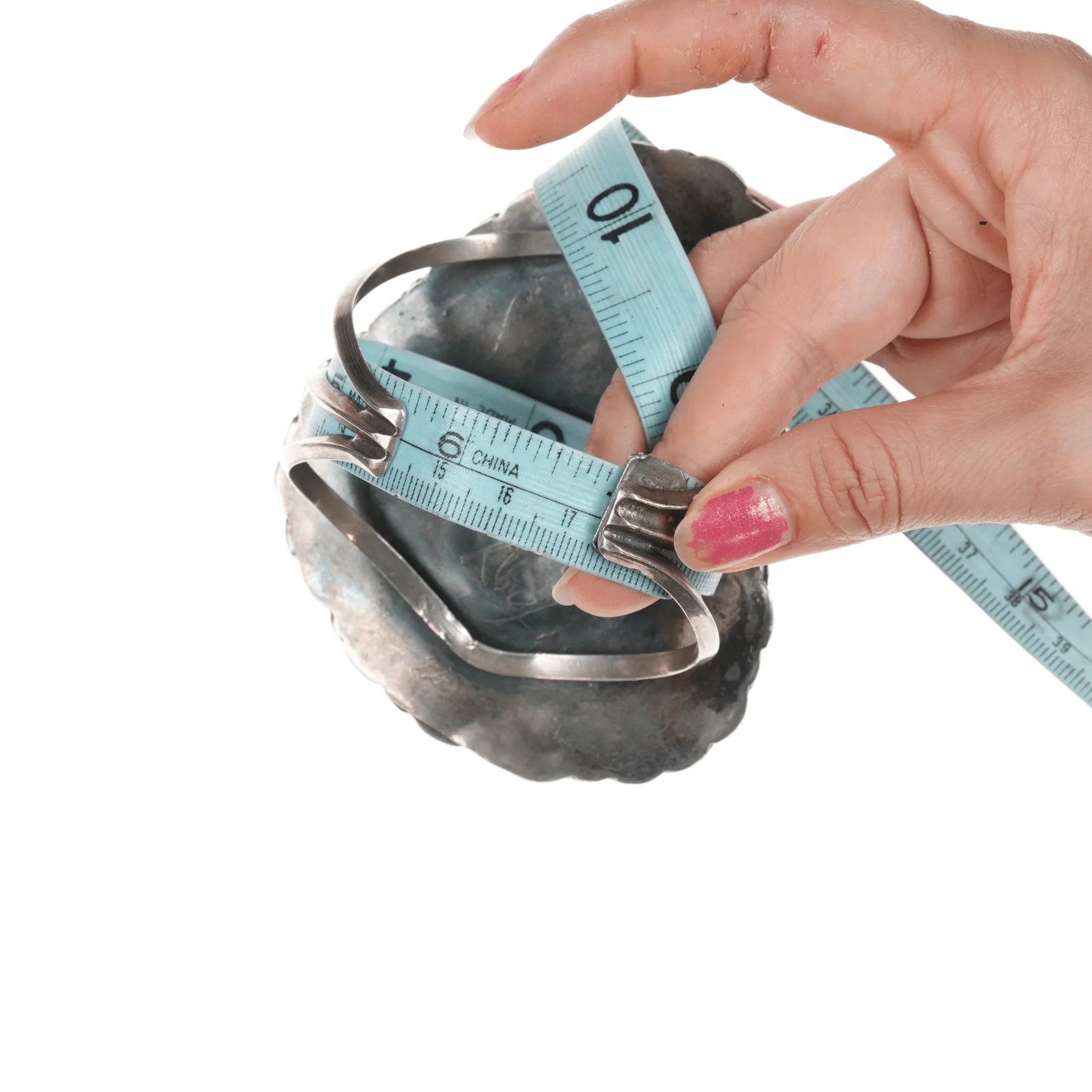 All precious metals are tested and guaranteed, any Native American jewelry<br>referred to as Silver or Sterling is guaranteed to be a minimum of 90% (coin)<br>silver and possibly higher content. Anything marked is guaranteed to be what<br>it's marked, most bracelets are photographed on a 6" wrist (non hairy), rings<br>photographed on the appropriate sized finger when possible. With bracelets if<br>the measurement is not given in the description then inside circumference is<br>shown where the metal meets the number on the the cloth tape measure.
