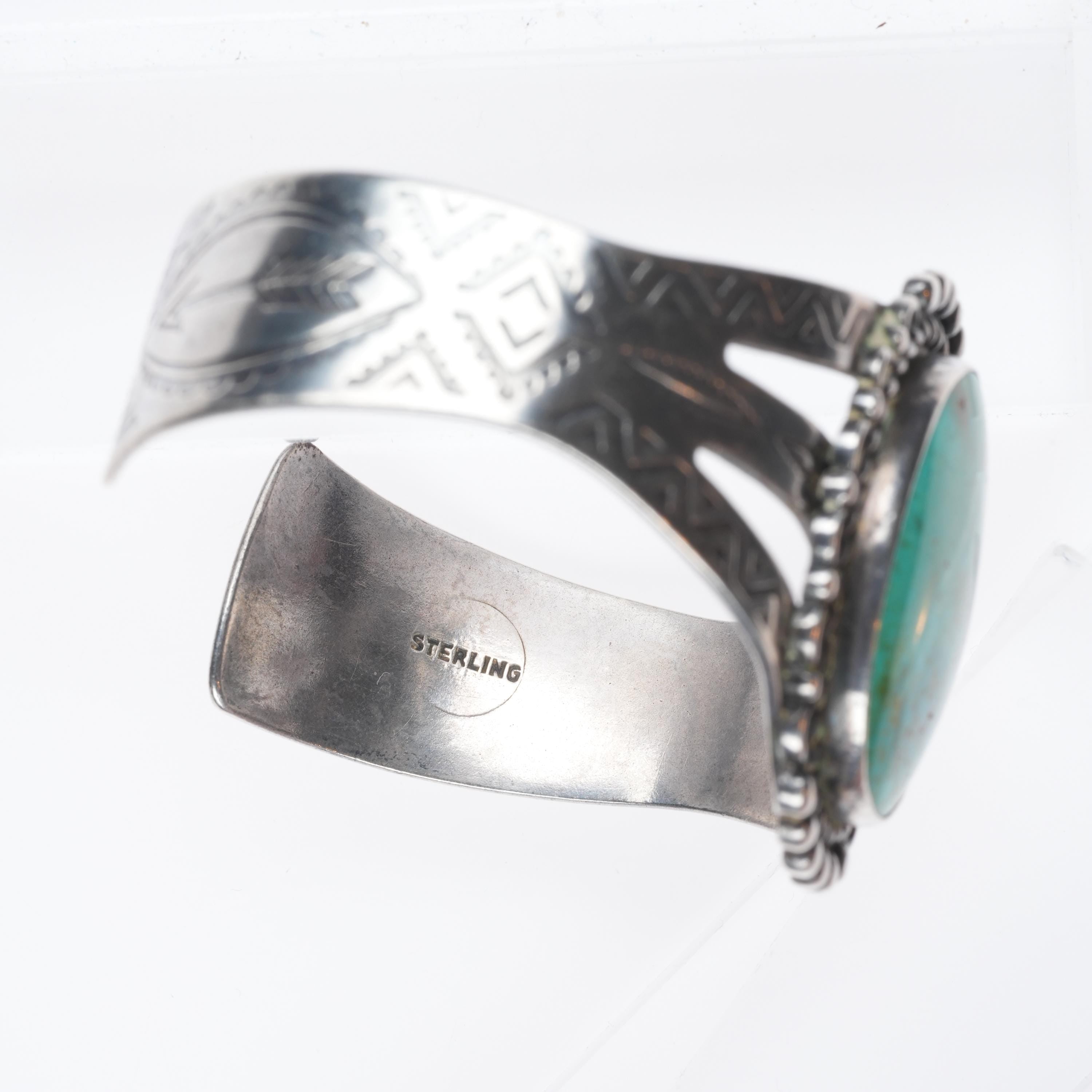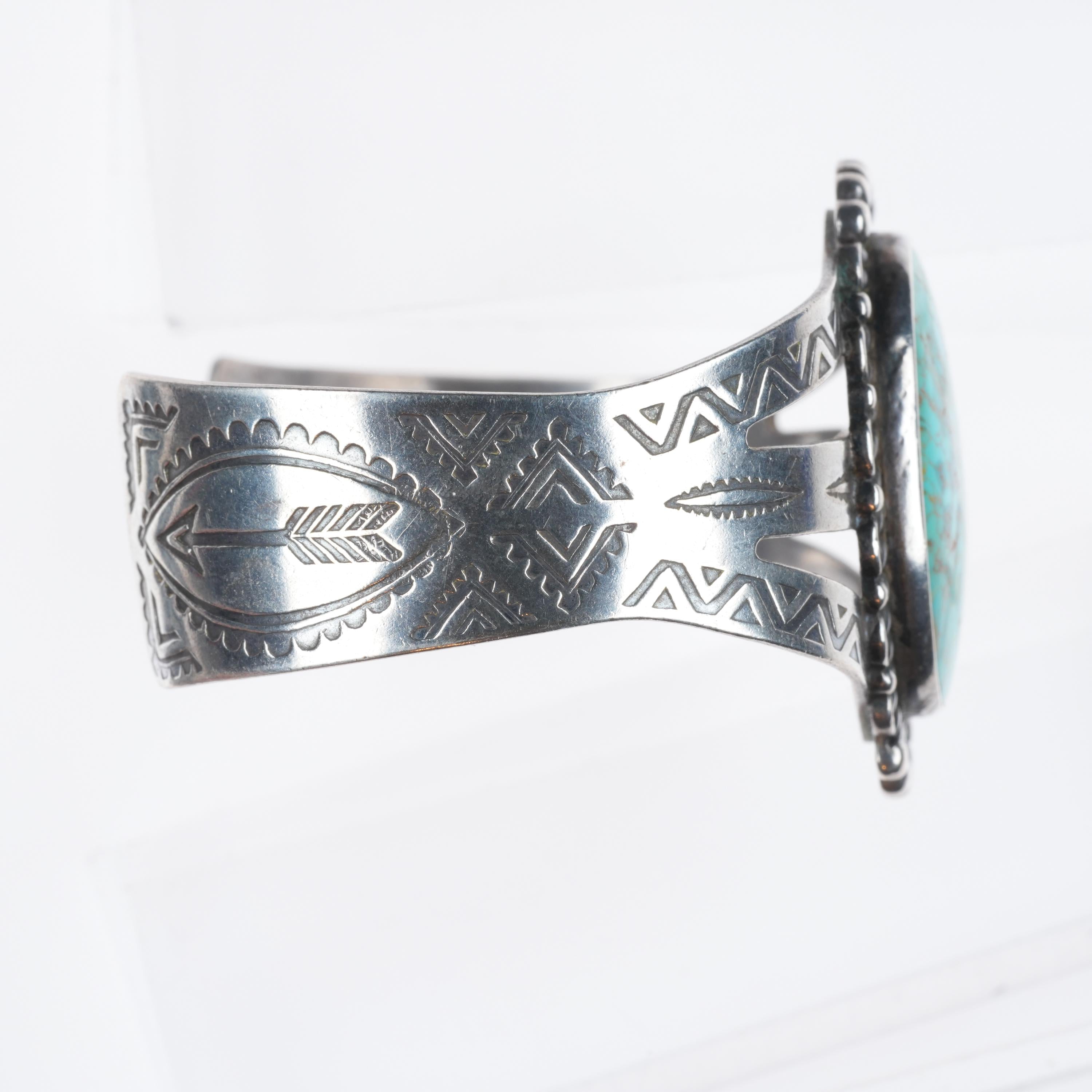 6.75" 1950‘s Vintage Maisels sterling silver Fred Harvey turquoise cuff bracelet. Tested and guaranteed solid sterling silver with weight and measurements in pictures. Circa third quarter of the 20th century, most likely Maisels shop with no markings other than sterling.