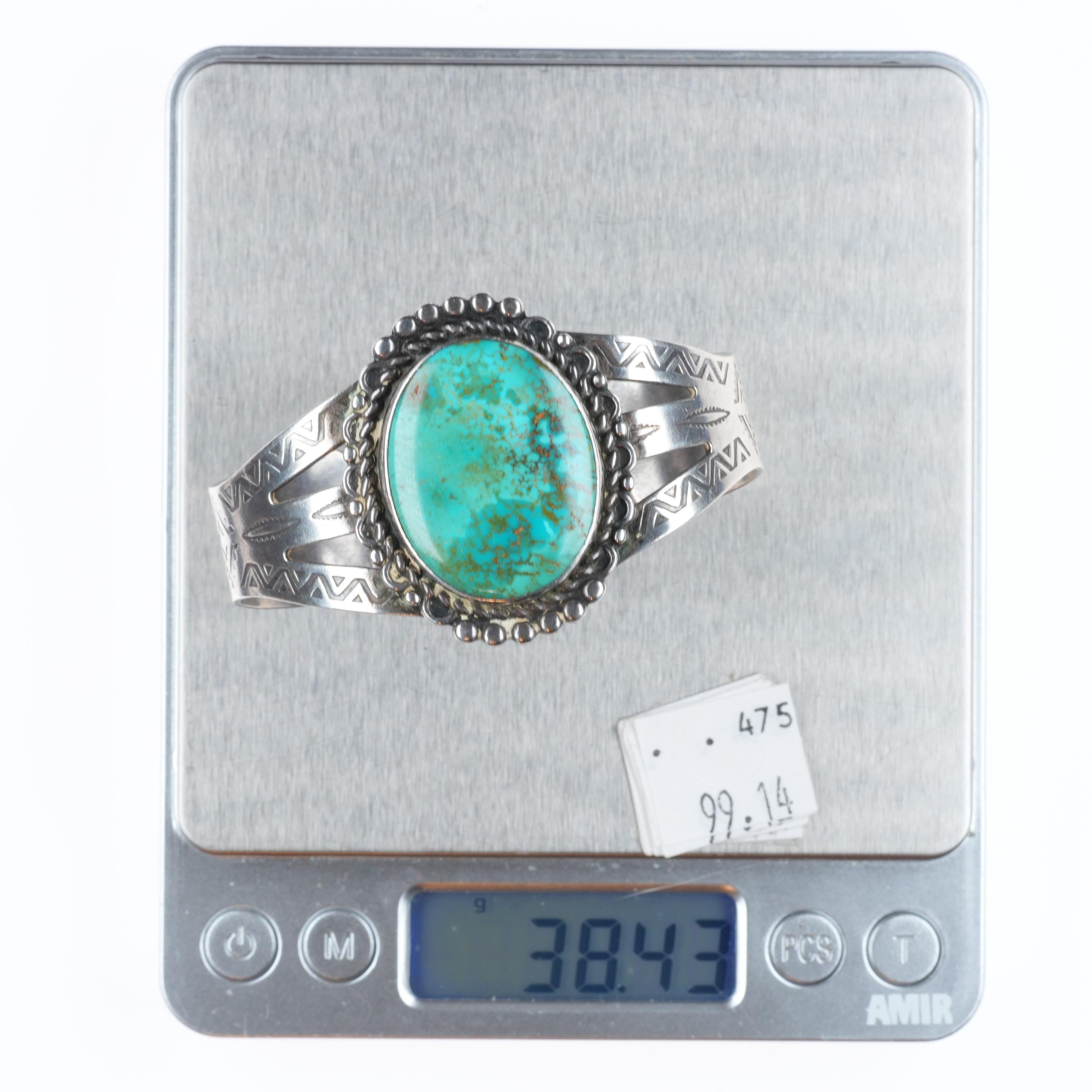 6.75" 1950's Vintage Maisels sterling silver Fred Harvey turquoise cuff bracelet