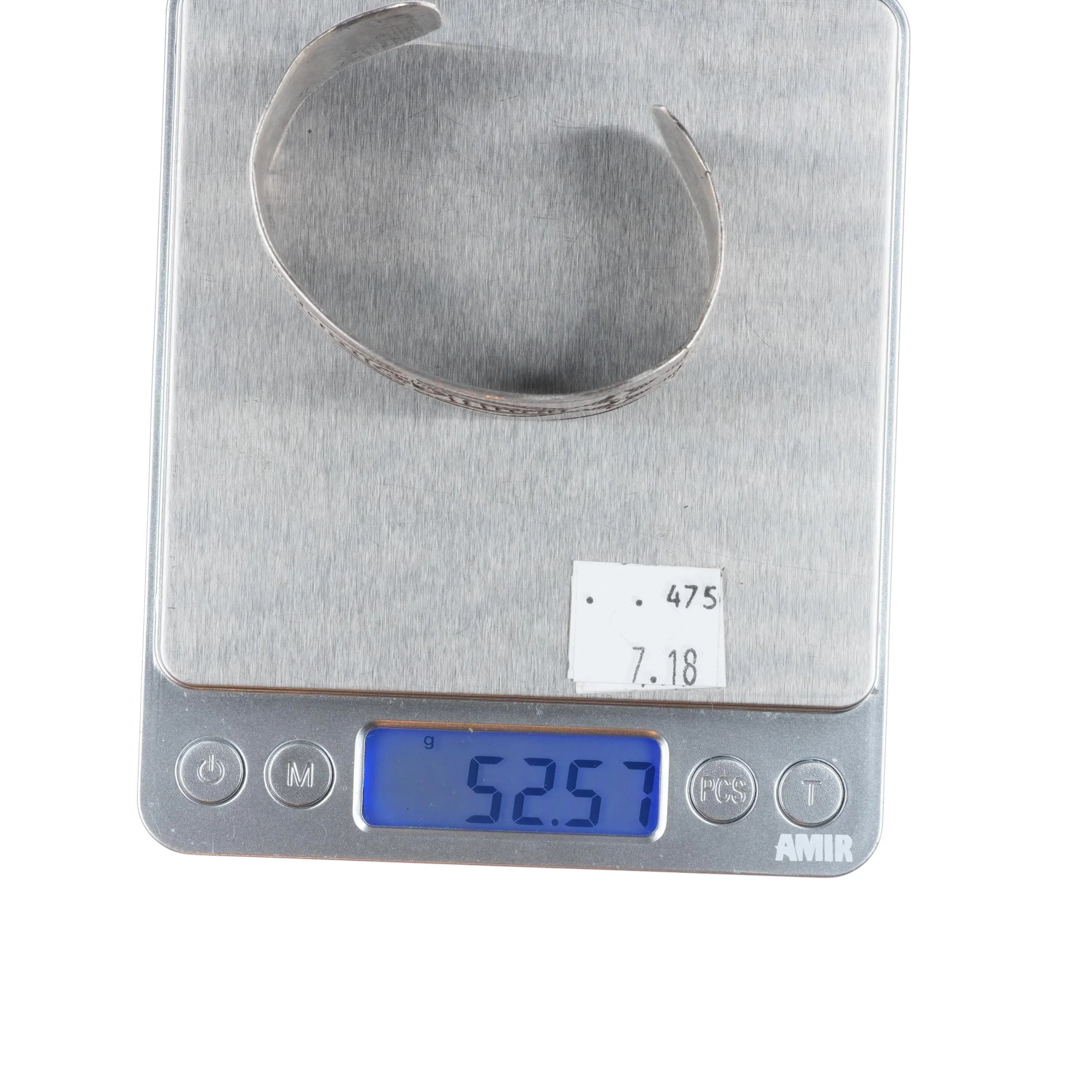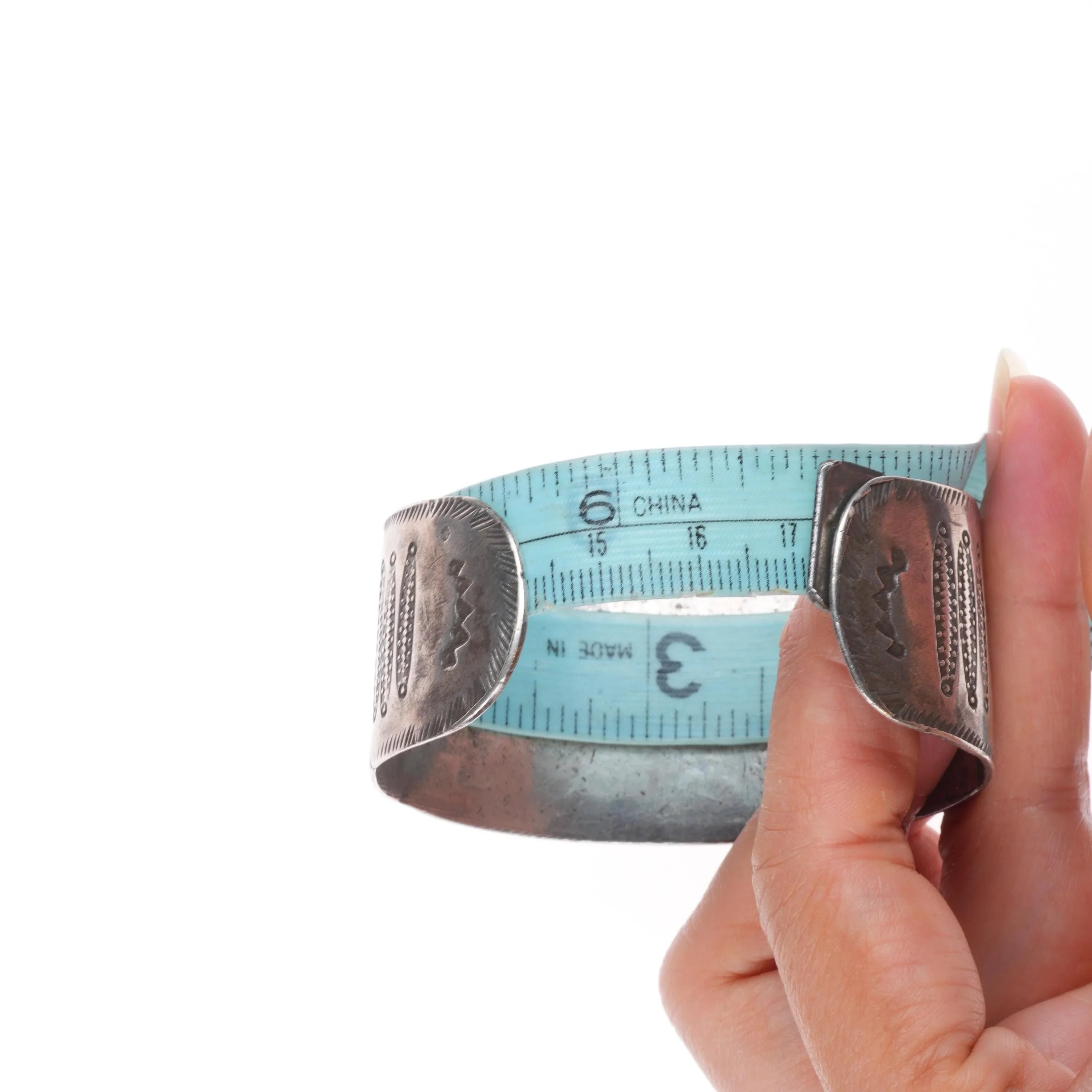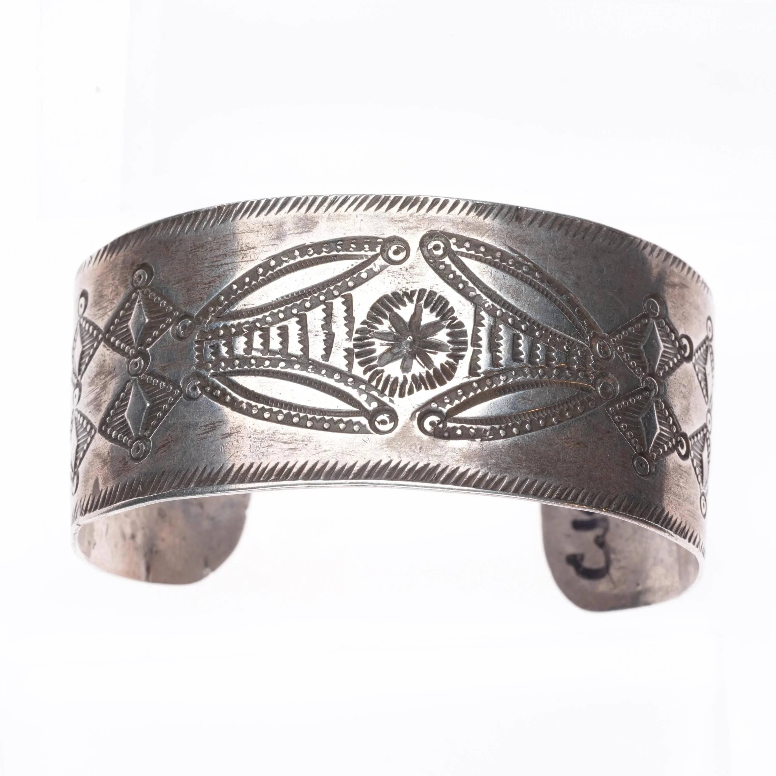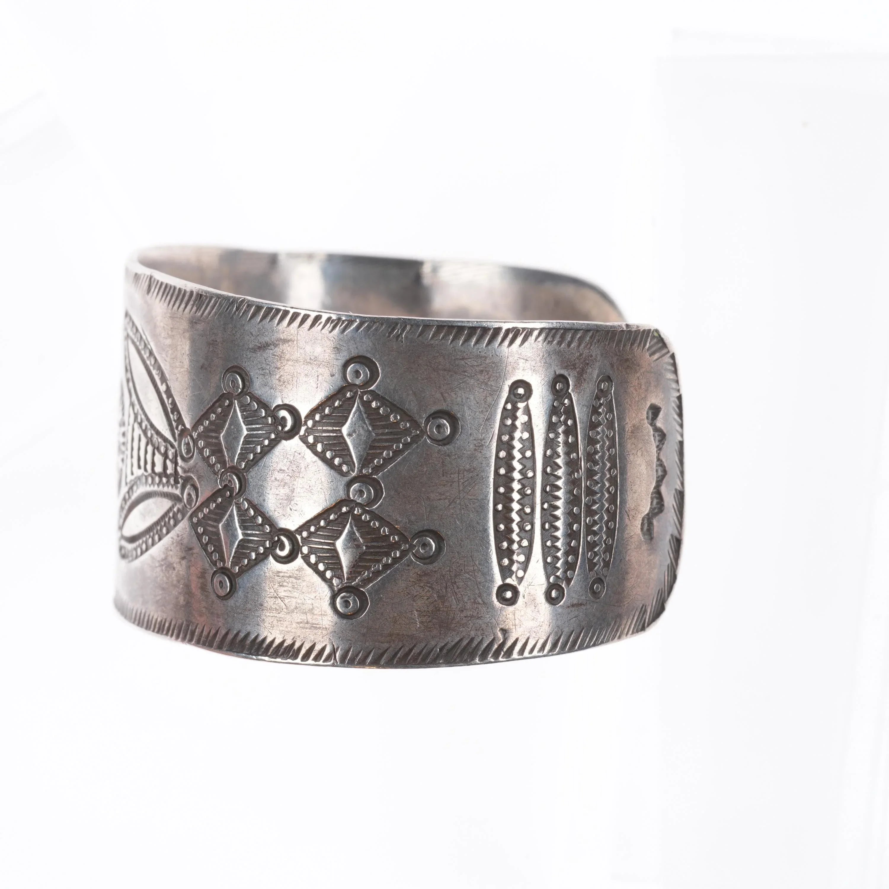 6.75" Antique Navajo Ingot silver heavily stamped wide band cuff bracelet