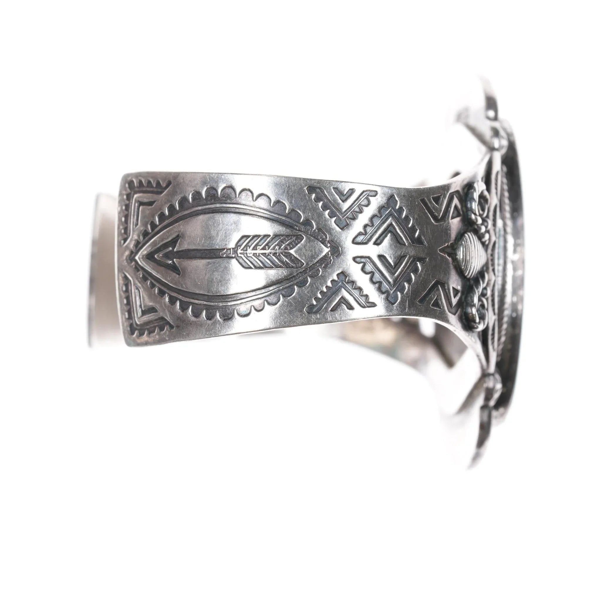 6.75" c1950's Navajo Curio sterling cuff bracelet with nice turquoise