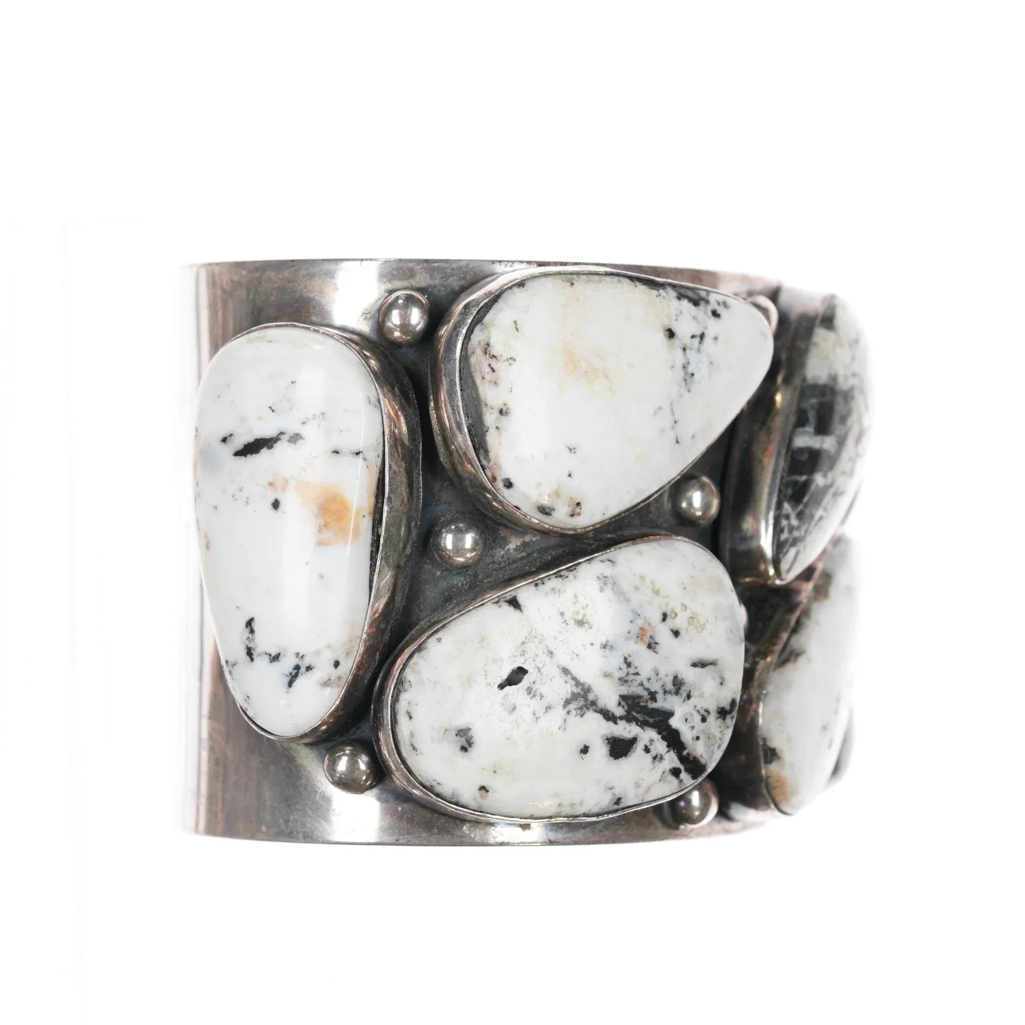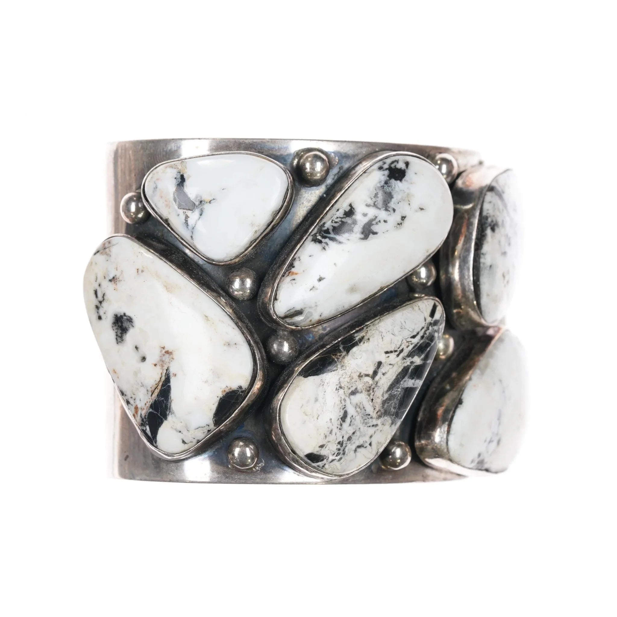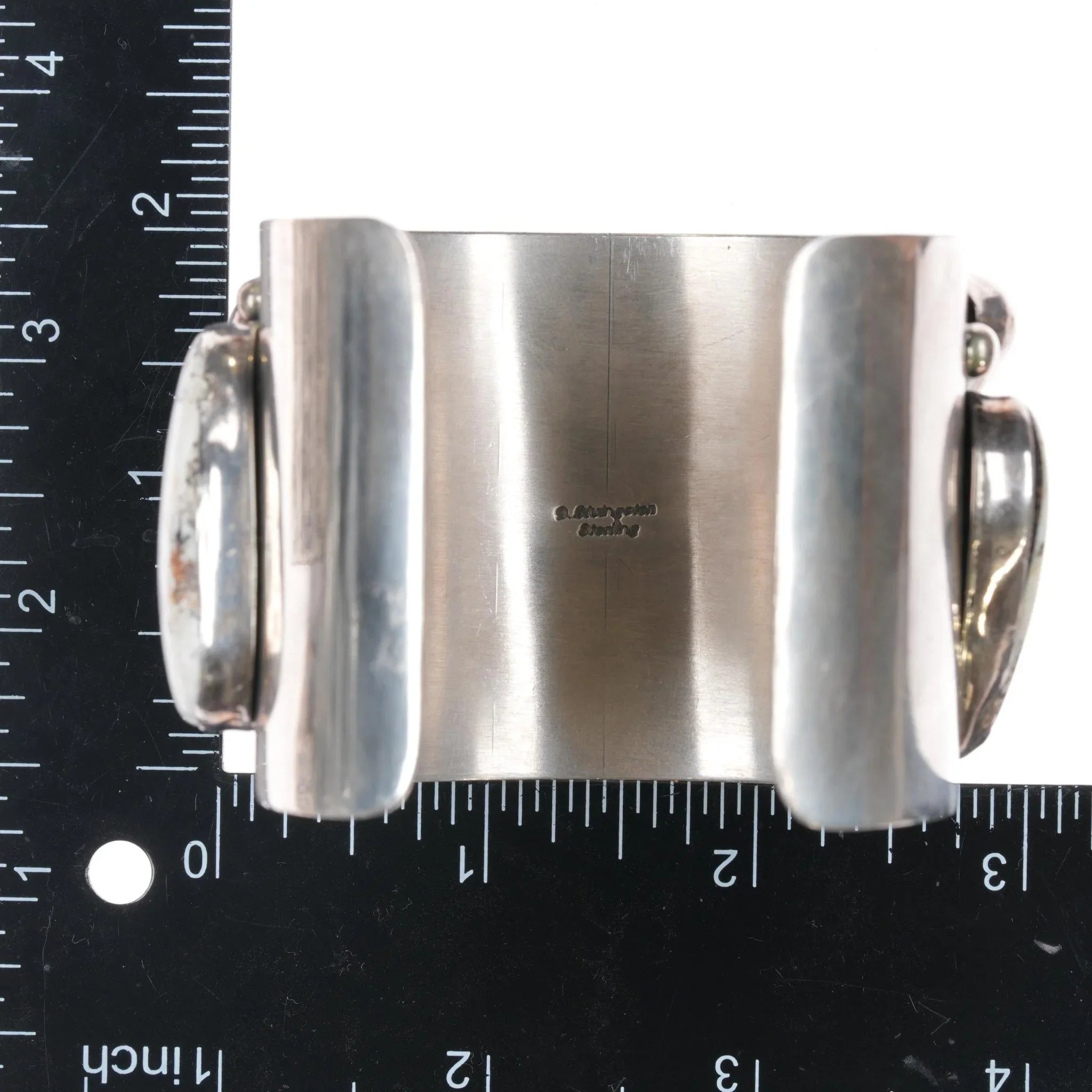 6.75" Darren Livingston Navajo sterling white buffalo cuff bracelet, solid sterling silver, weight and measurements in pics.