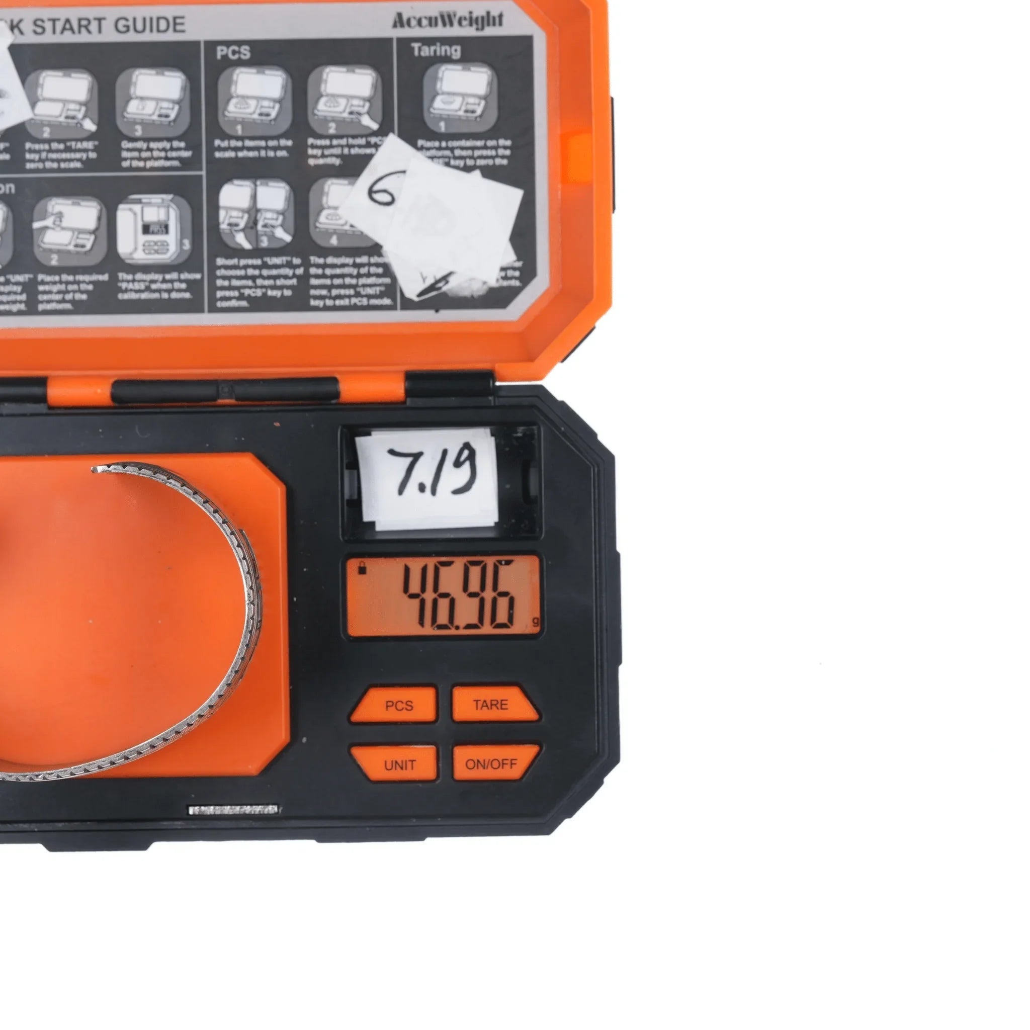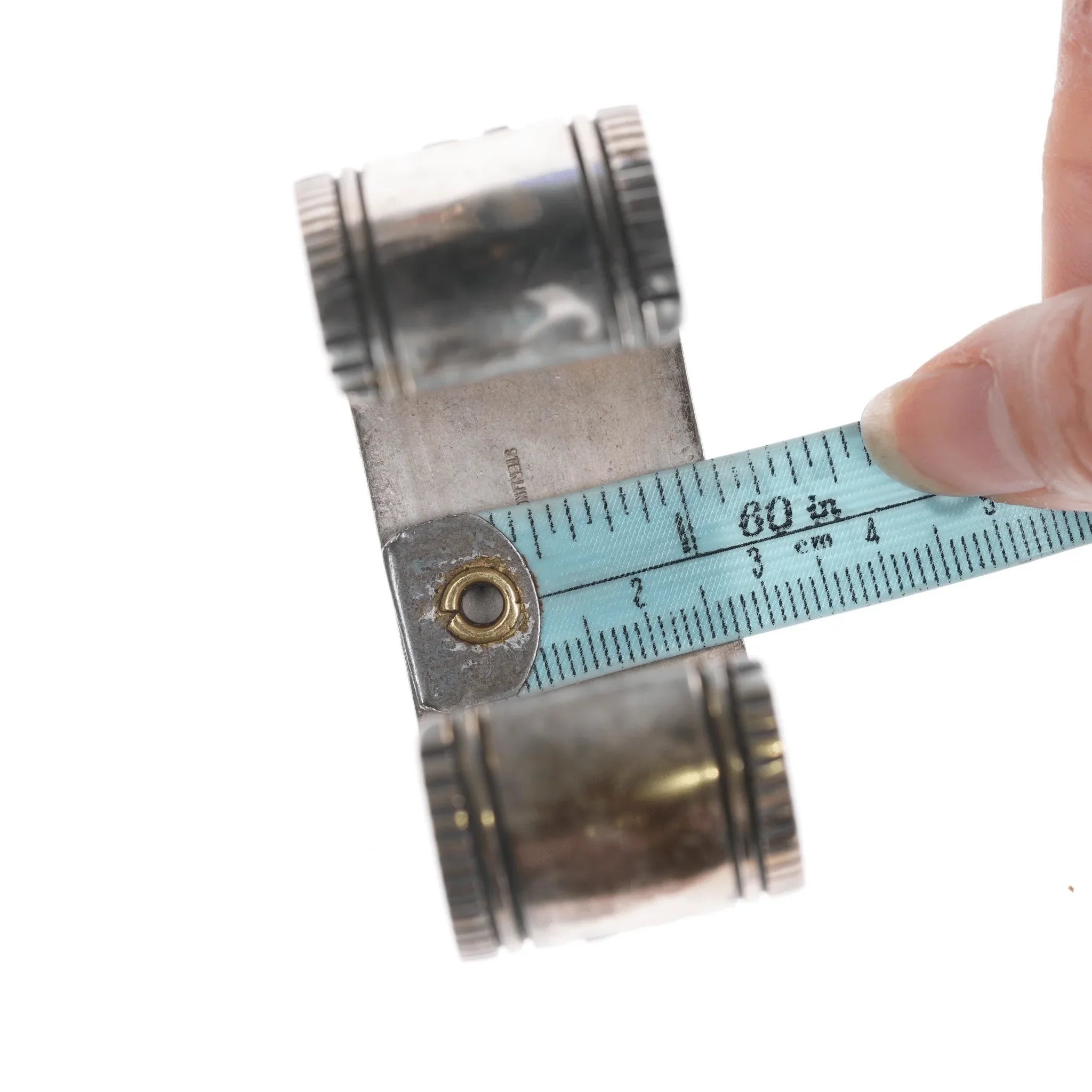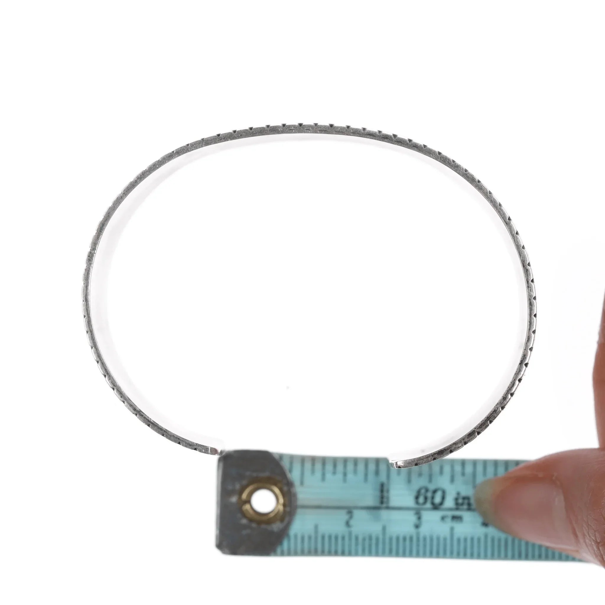 All precious metals are tested and guaranteed. A Native American jewelry piece referred to as "silver" or "ingot" is guaranteed to be at least 90% silver. I rarely use the word "sterling" when referring to older Native American silver or really any older silver jewelry as silver contents vary and "sterling" is 92.5% silver. No older jewelry is going to be exactly 92.5% silver, some a little over, some a little under. It wasn't an exact thing with handmade jewelry. I've seen thousands of pieces xrf'd to prove this. Bracelets are photographed on a 6" women's wrist.