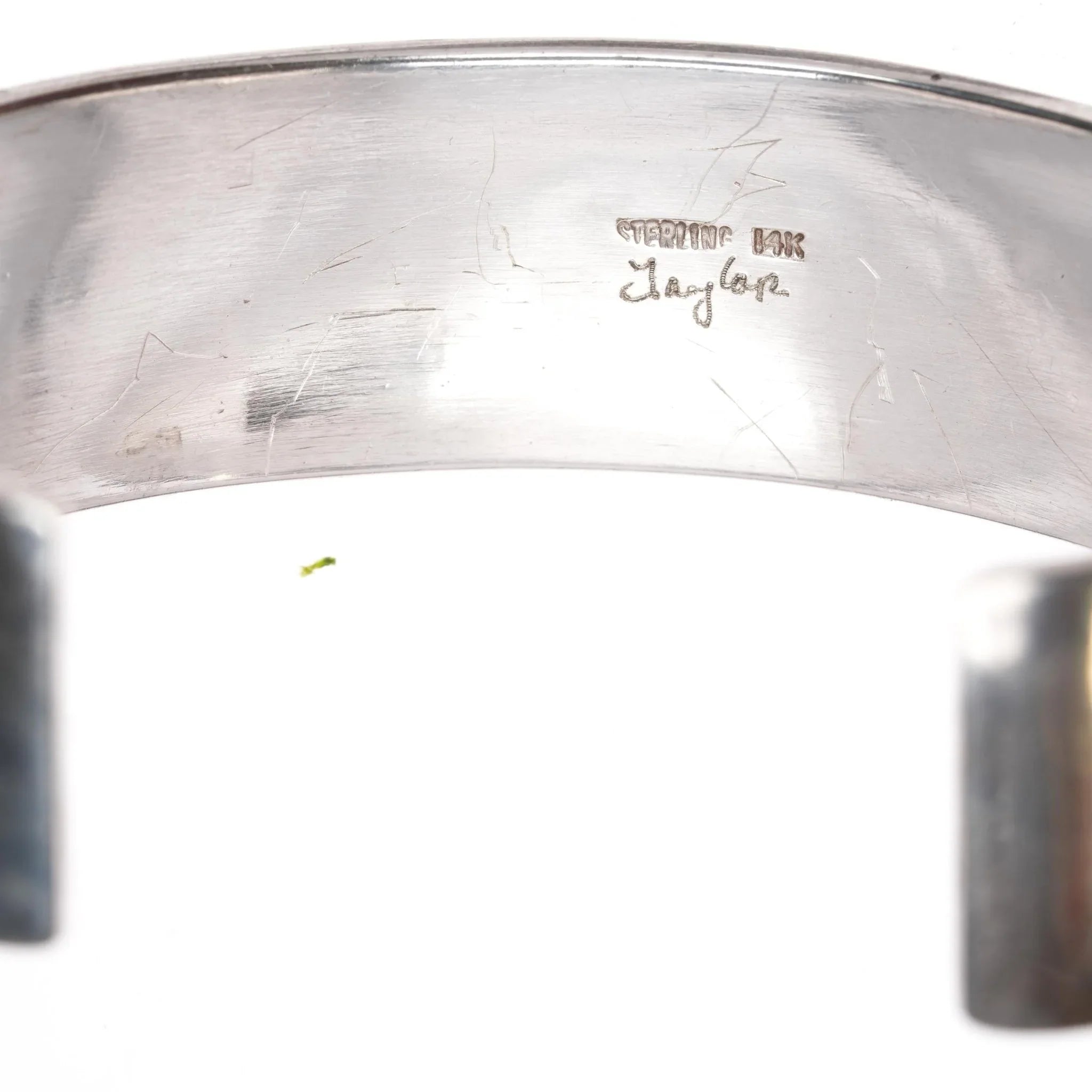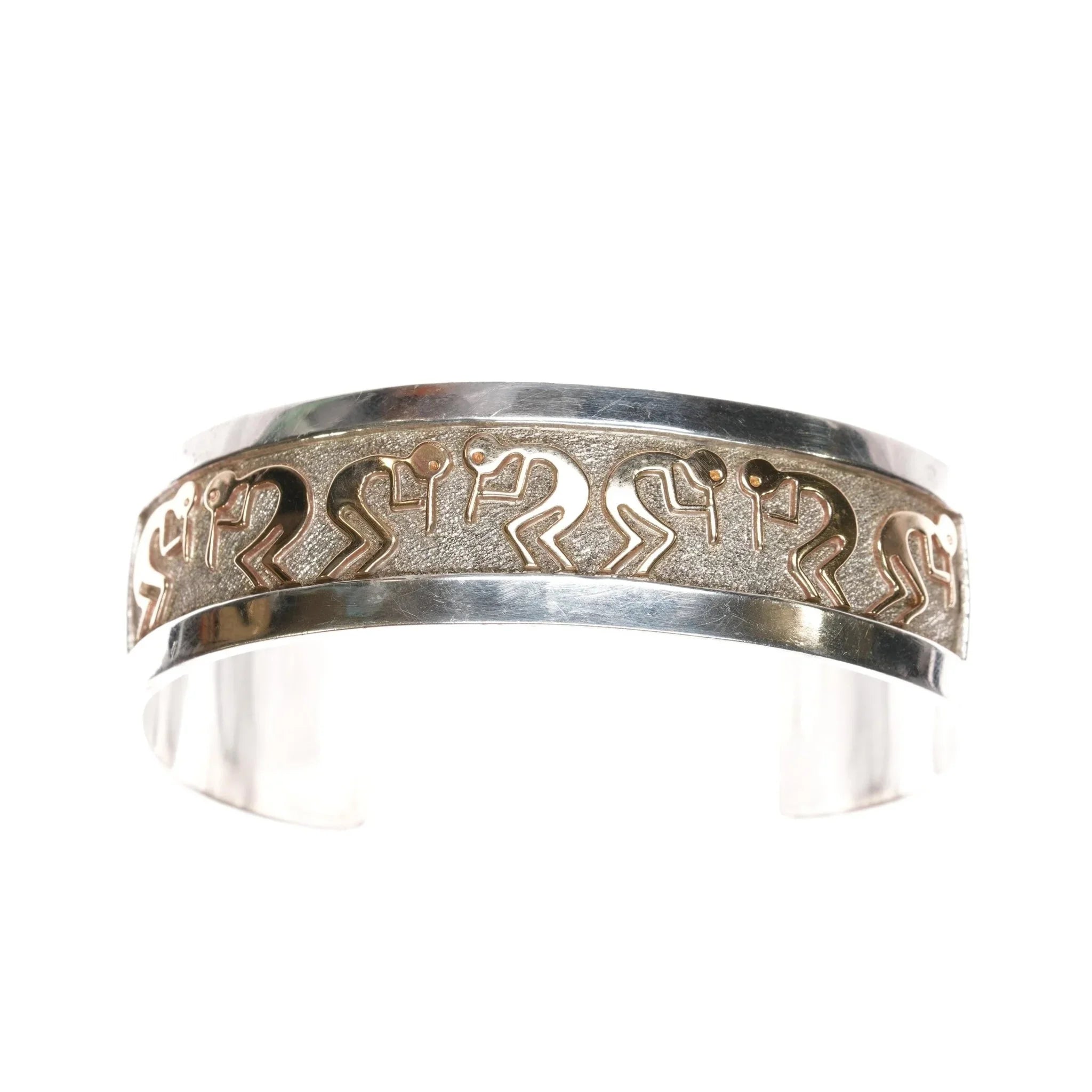 6.75" Robert Taylor Navajo Sterling/14k gold kokopelli cuff bracelet. Solid 14k gold Kokopelli‘s. No issues, weight and measurements in pics.