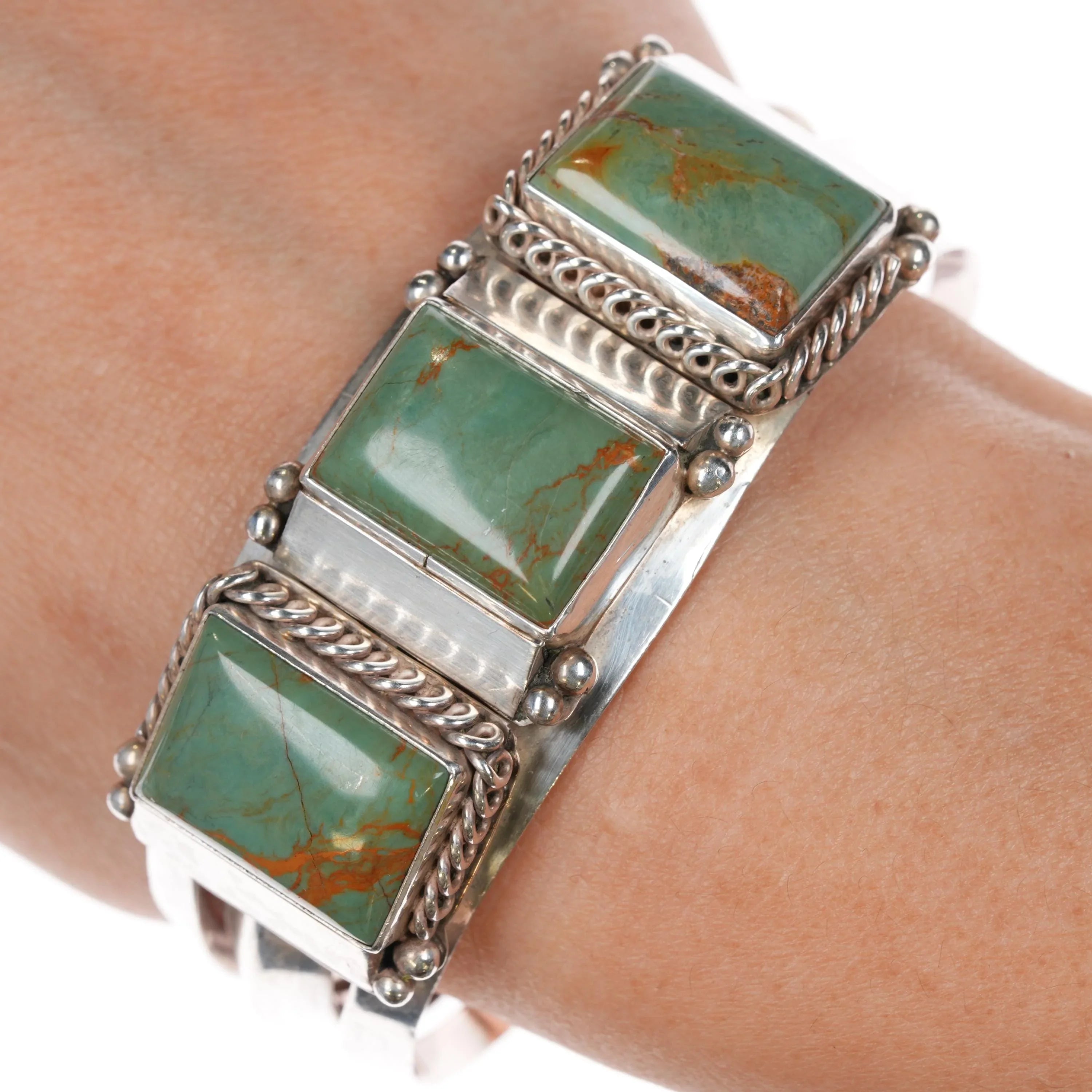 6.75" Tom Lewis Navajo sterling and turquoise cuff bracelet. Weight and measurements in pics, no issues. Very well made.