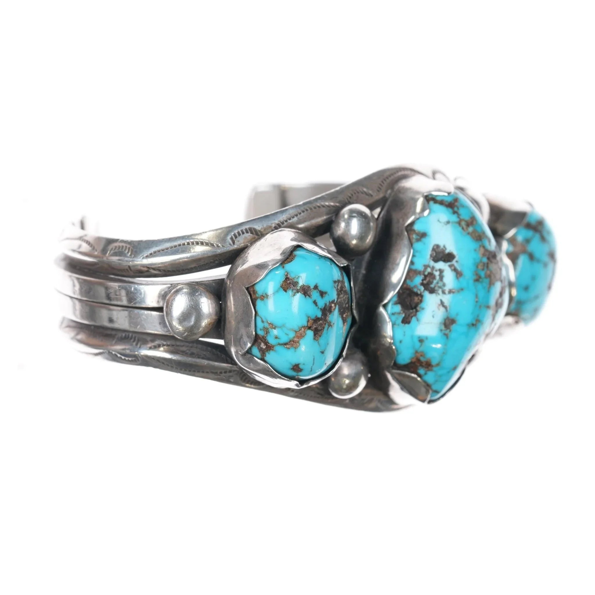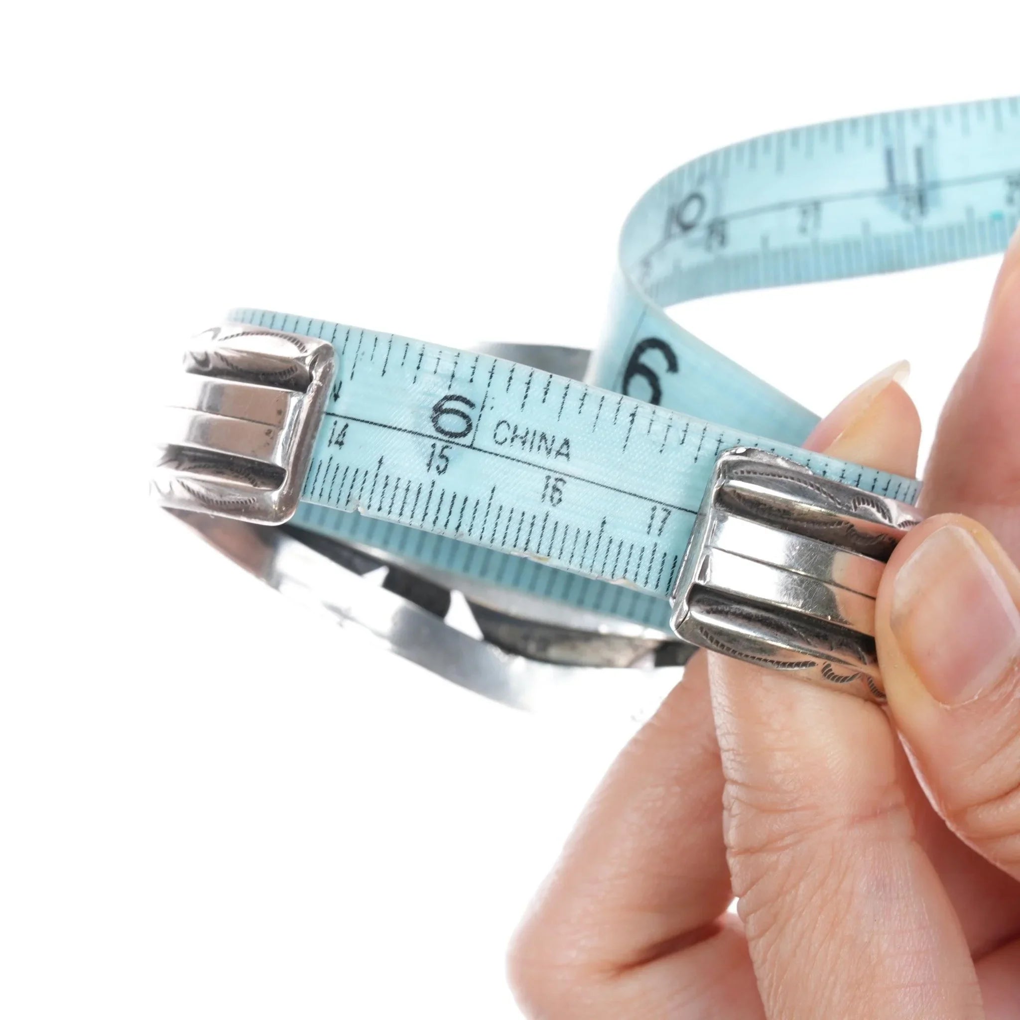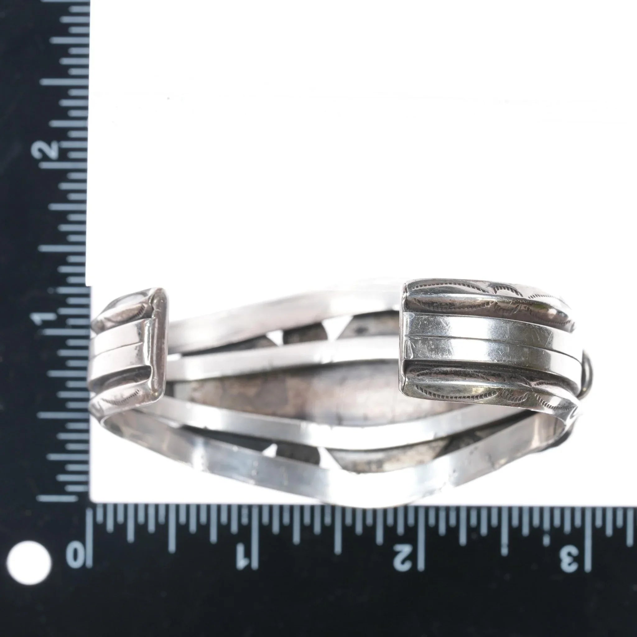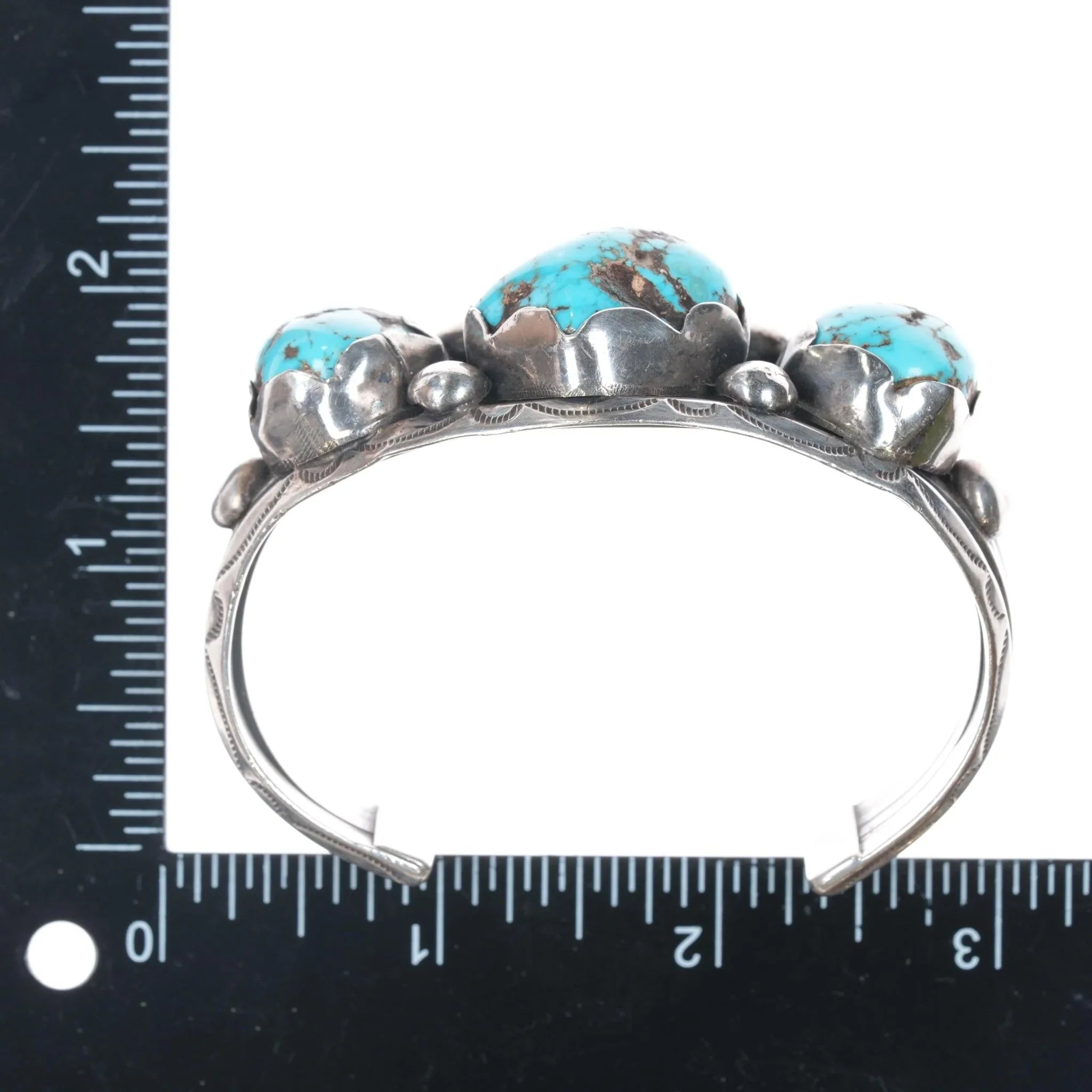 6.75" Vintage Native American stamped carinated silver cuff bracelet w/turquoise. Solid sterling, weight and measurements in pics. Unmarked as shown. Circa mid 20th century.
