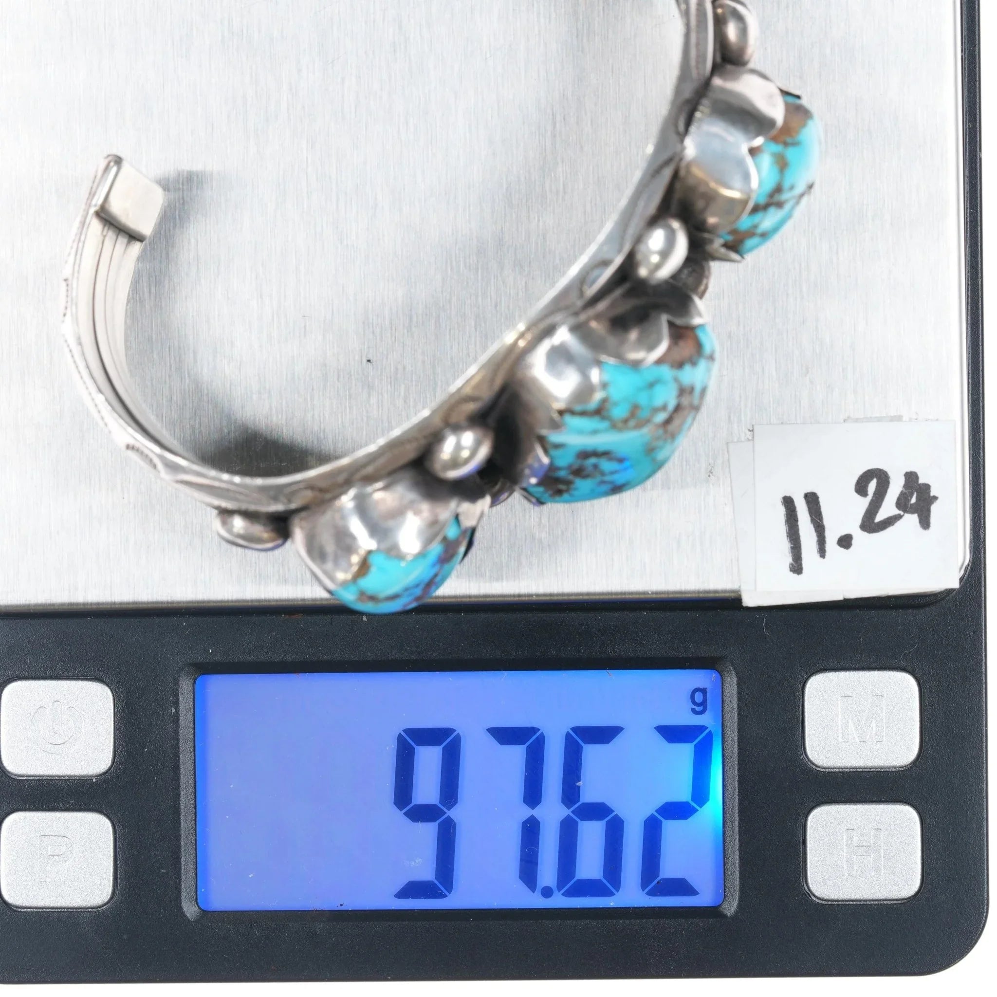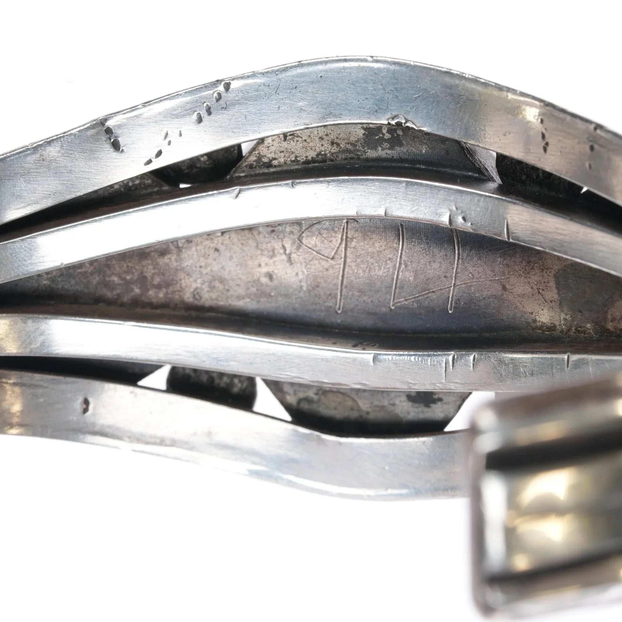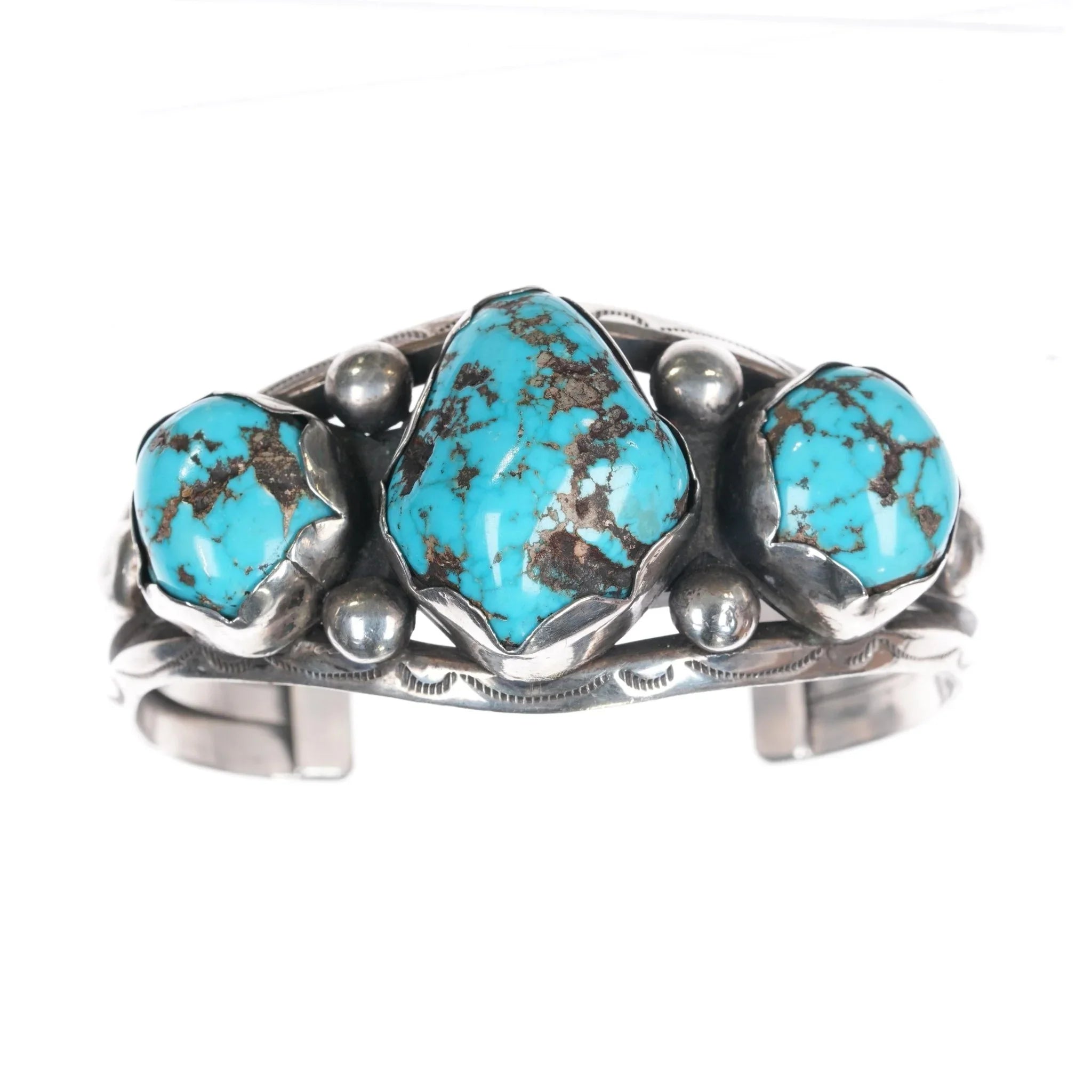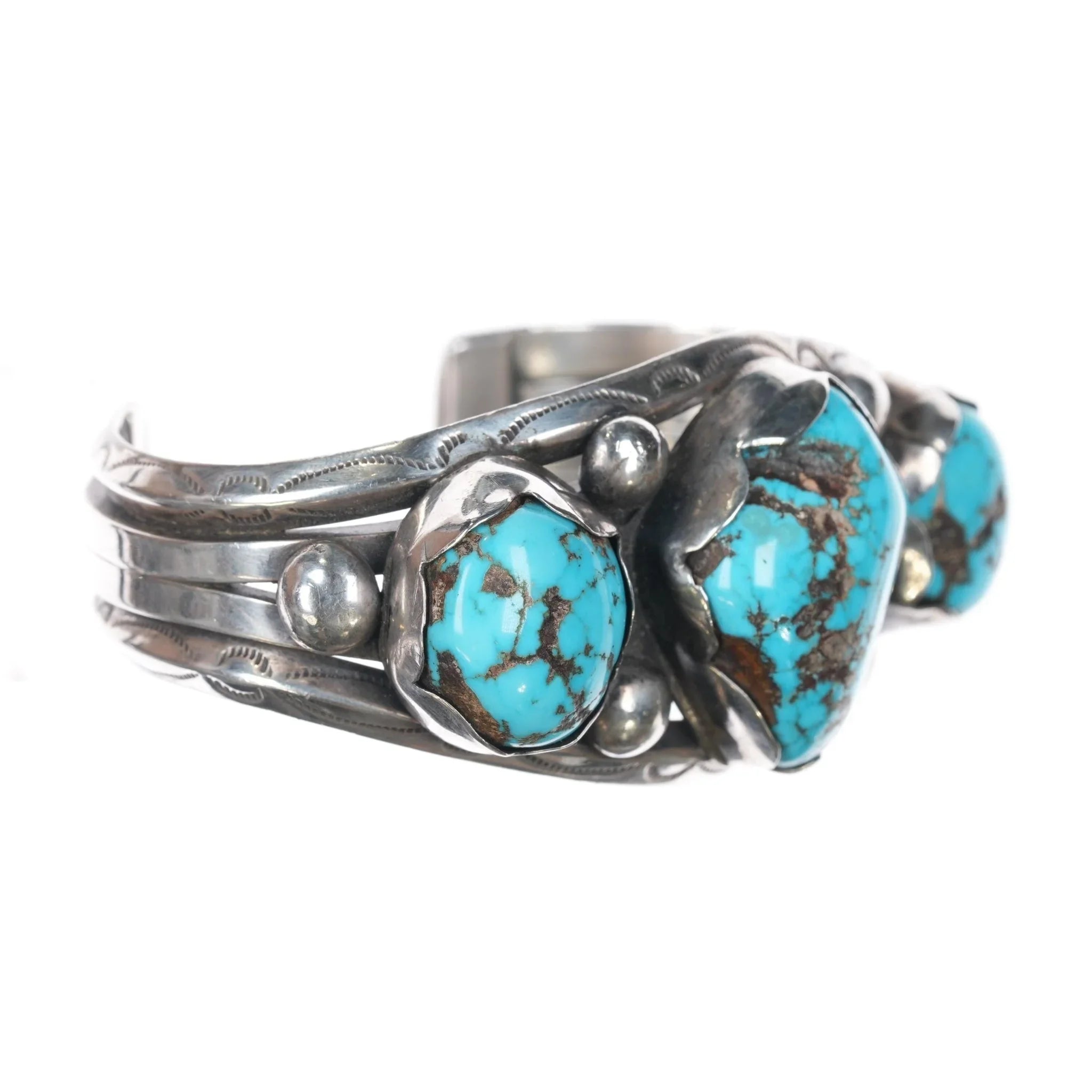 6.75" Vintage Native American stamped carinated silver cuff bracelet w/turquoise. Solid sterling, weight and measurements in pics. Unmarked as shown. Circa mid 20th century.