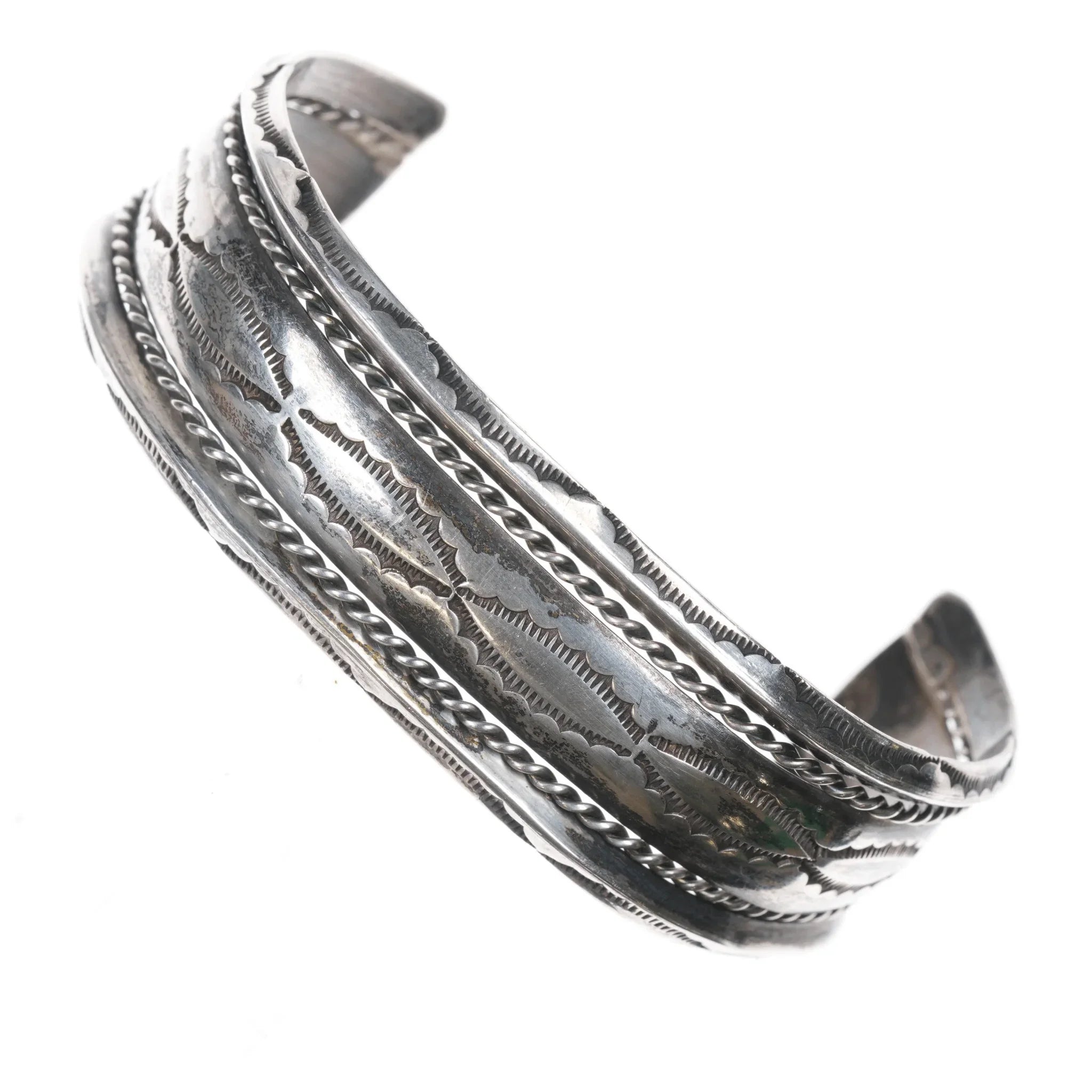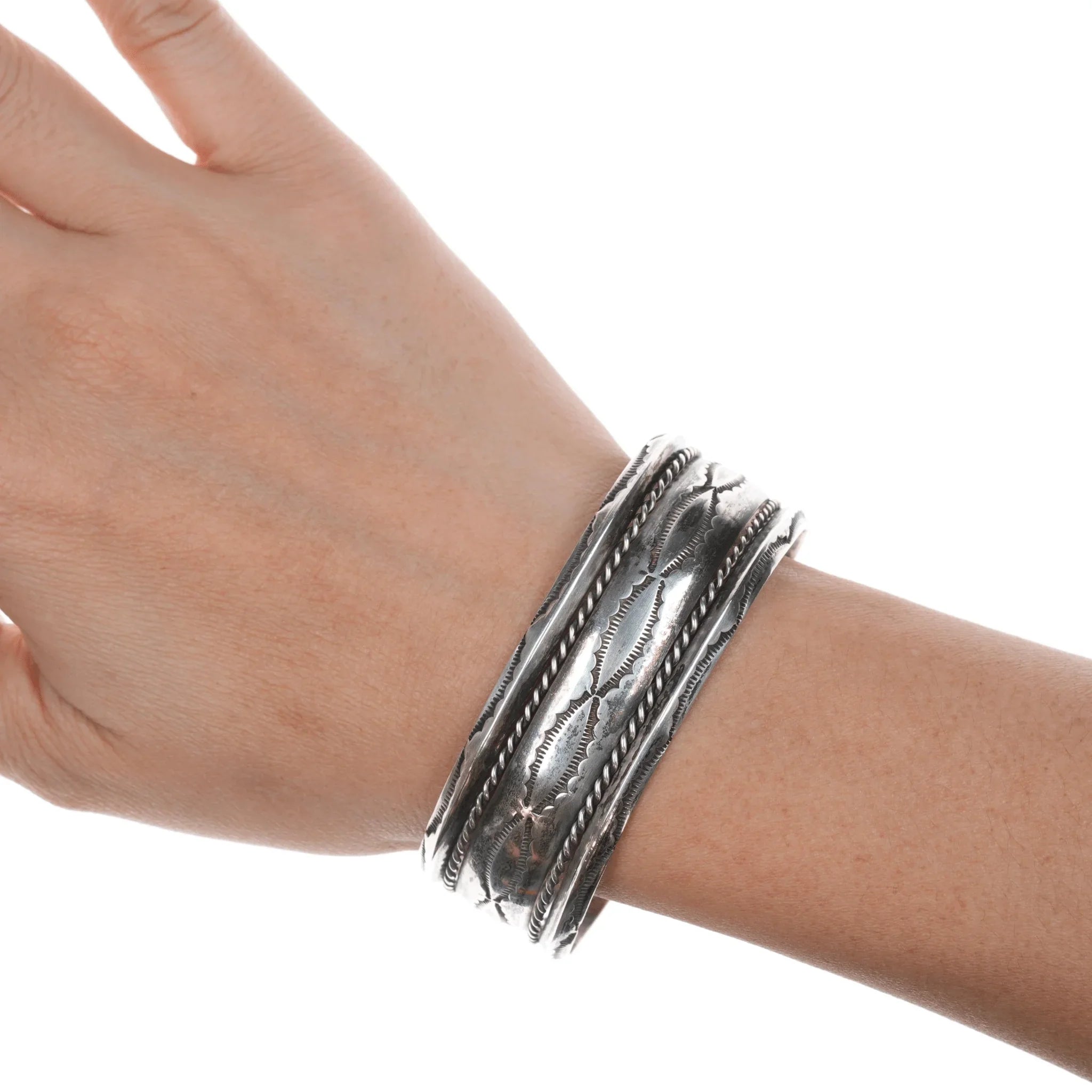 6.75" Vintage Navajo 3 band twisted wire stamped silver cuff bracelet