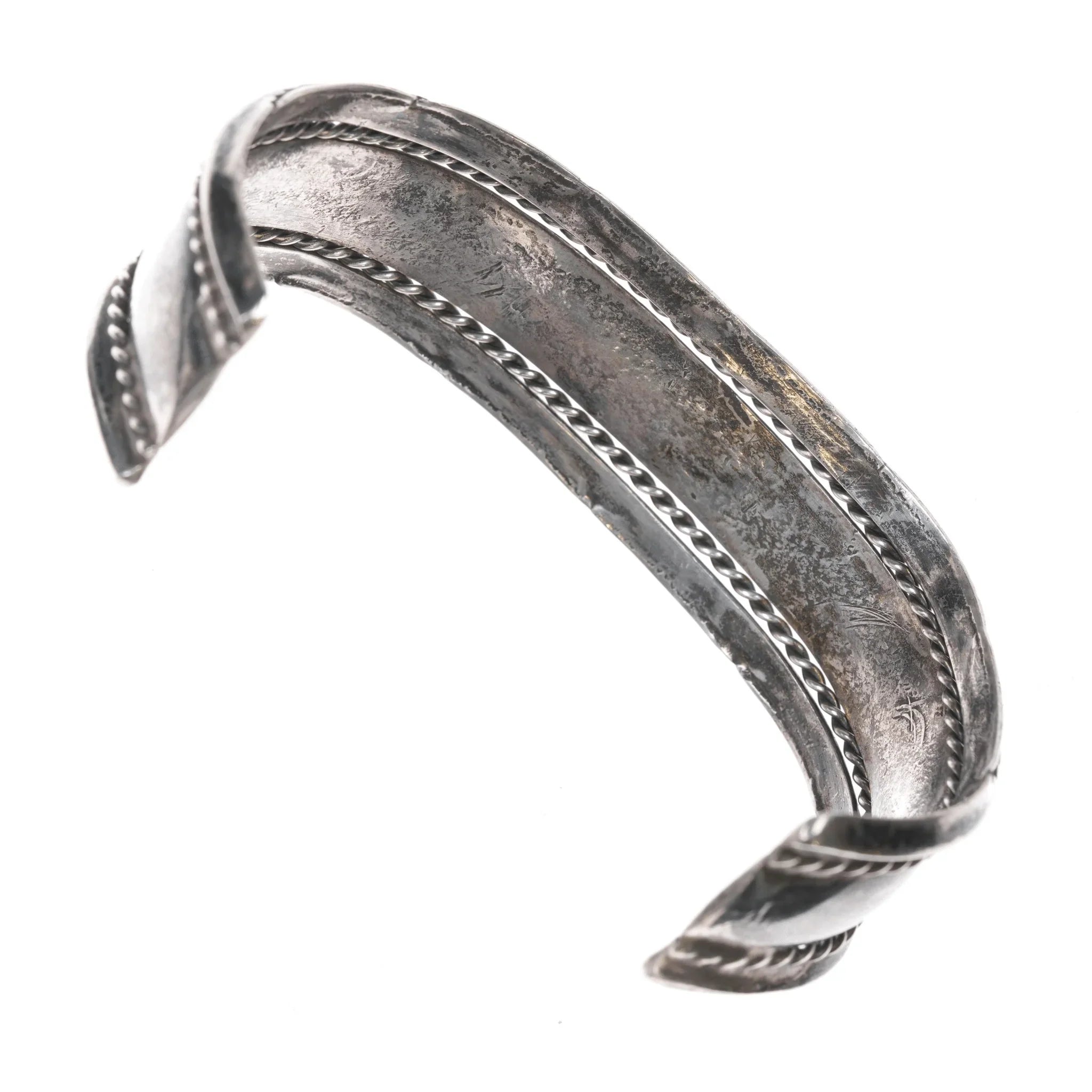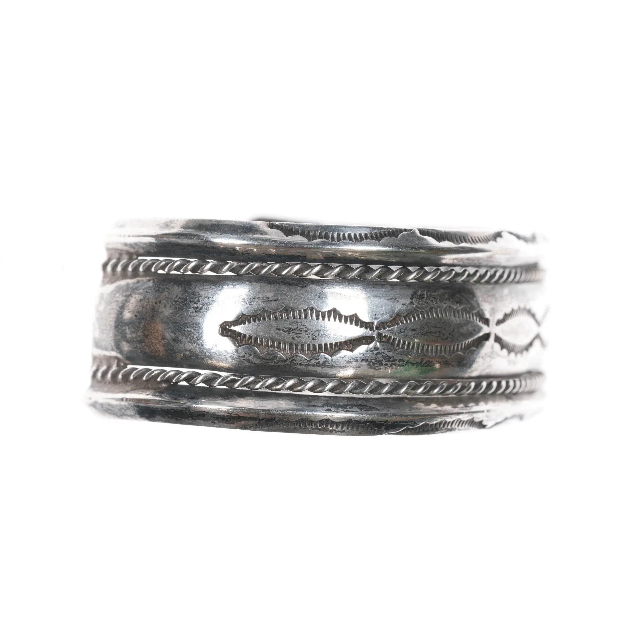 6.75" Vintage Navajo 3 band twisted wire stamped silver cuff bracelet. No issues, measurements in pics.