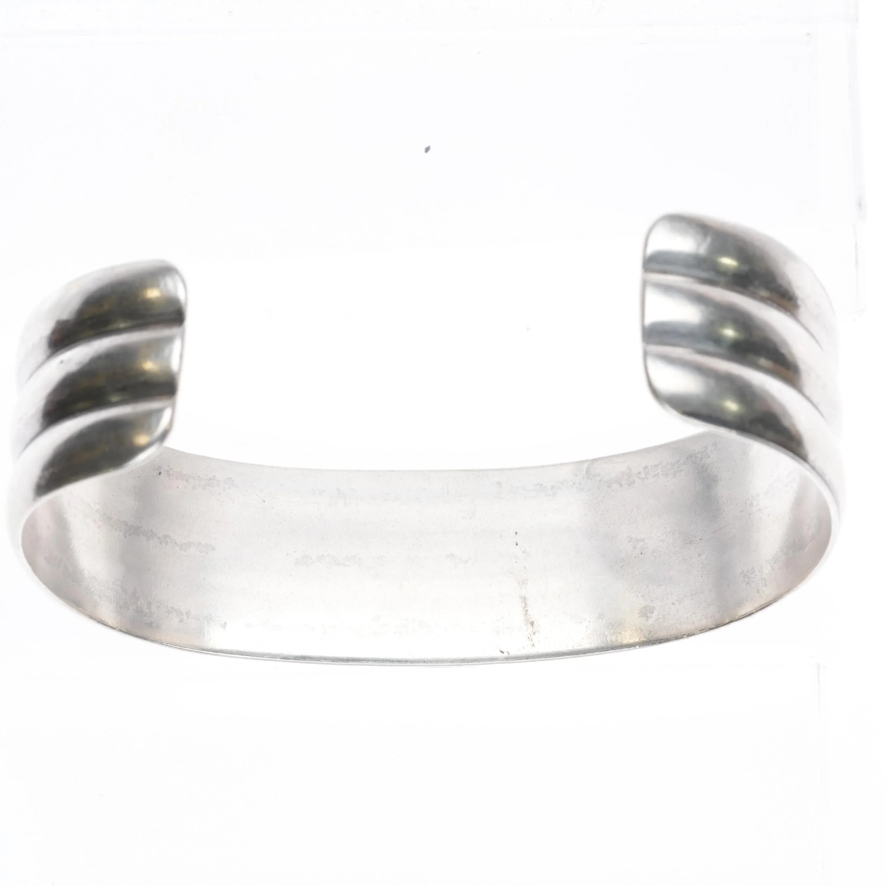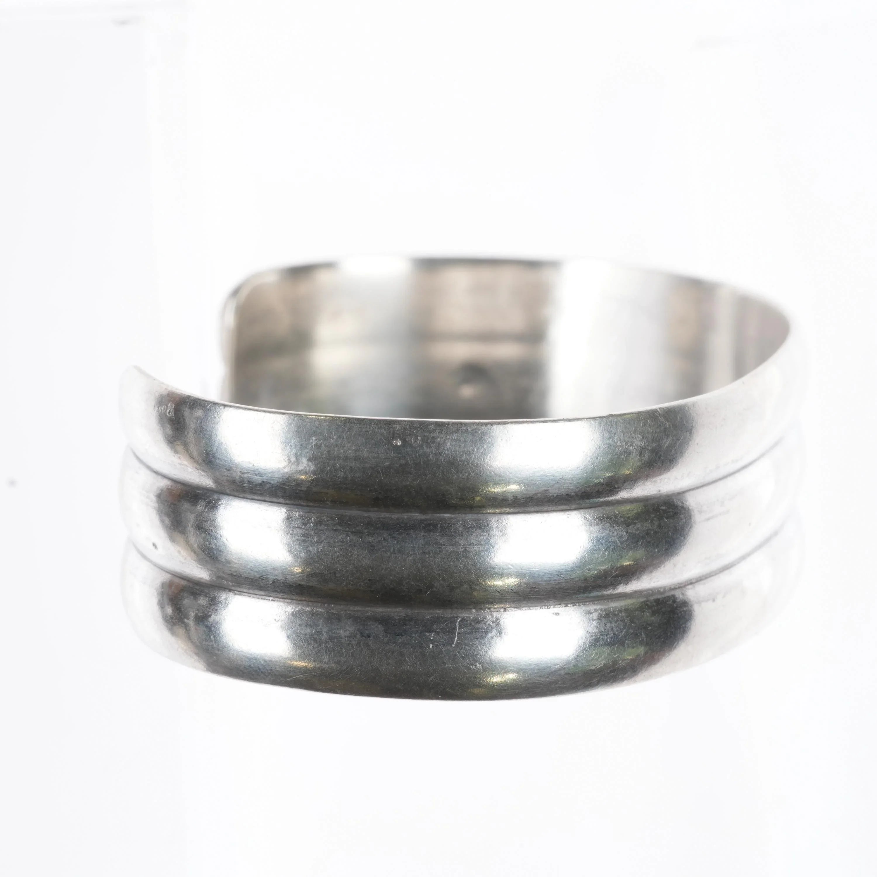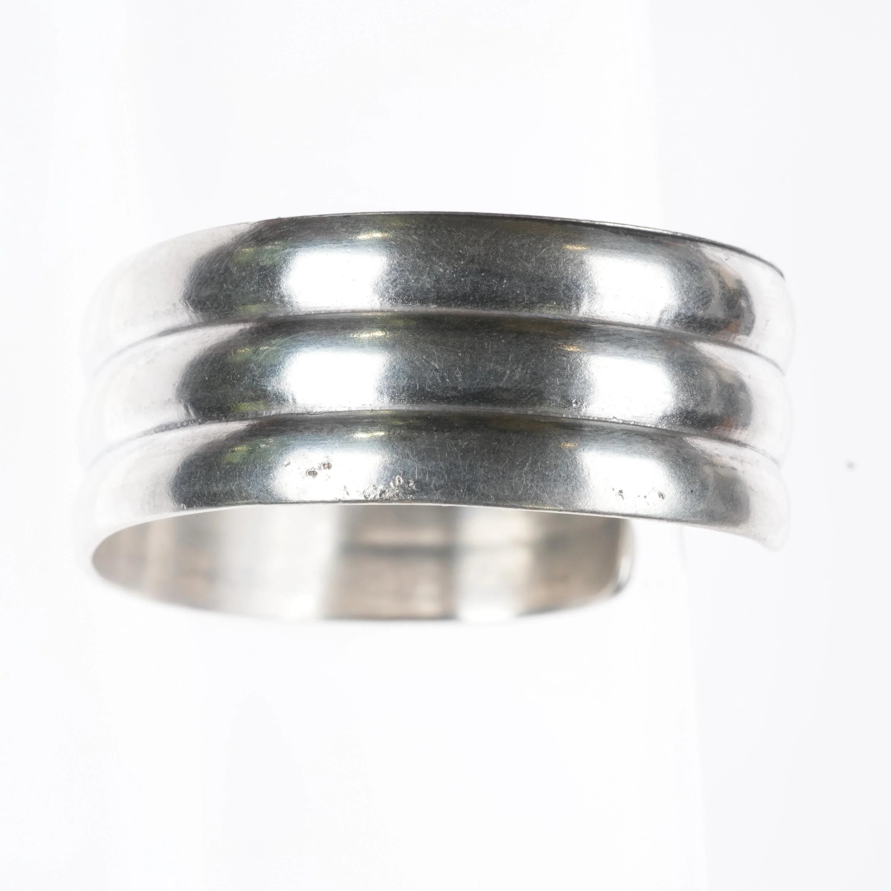 6.75" Vintage Navajo 3 ring sterling silver stacker cuff bracelet. Tested and guaranteed solid sterling silver with weight and measurements in pictures. Good condition, circa last quarter of the 20th century. This and most of the items from this collection were collected but worn very little if any. From a very high end collection, unmarked.