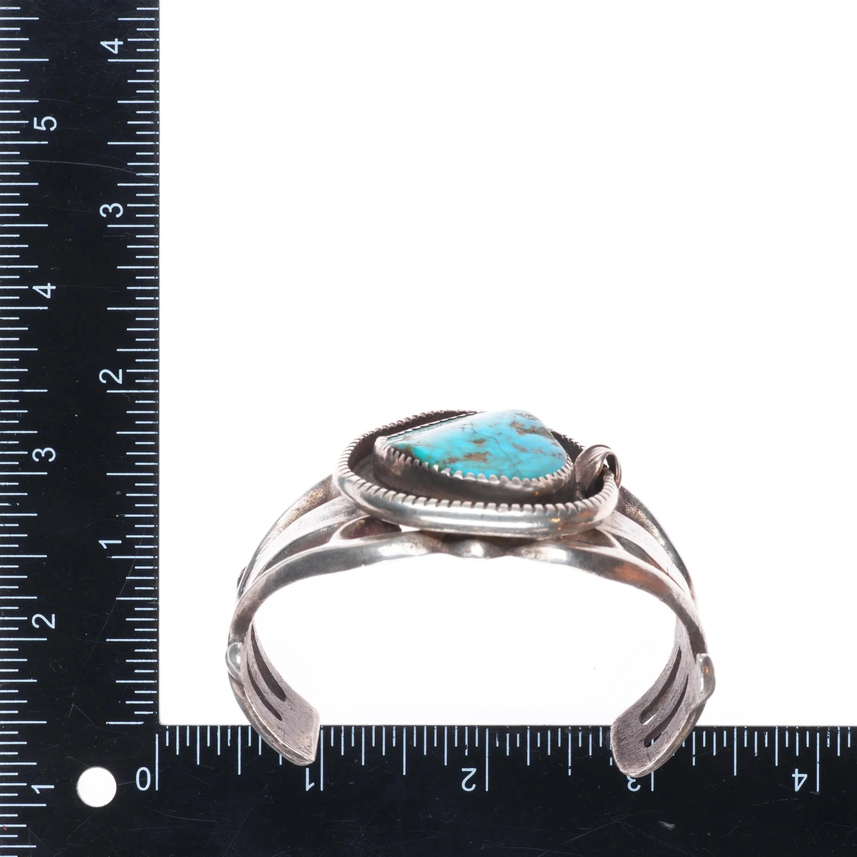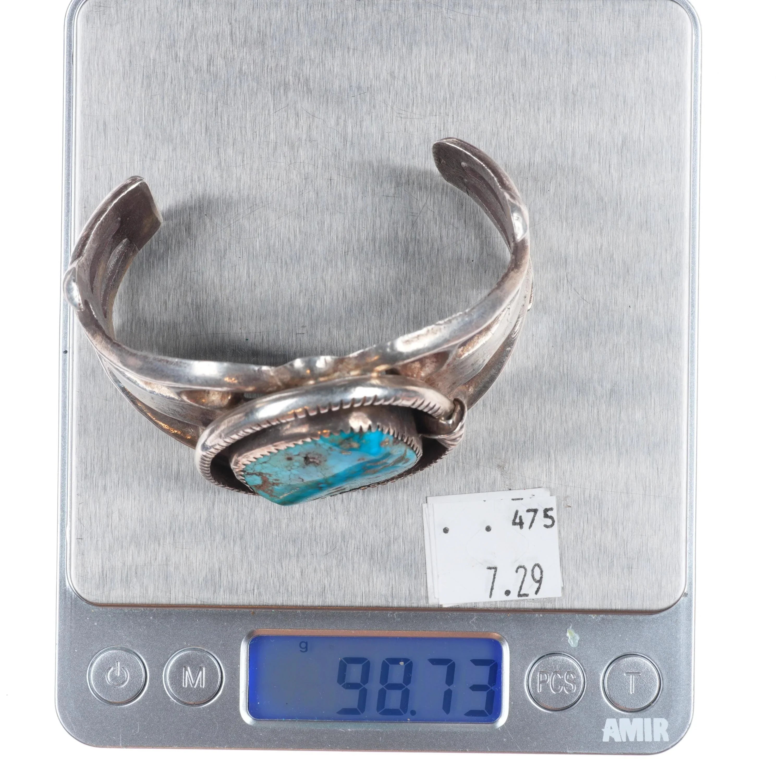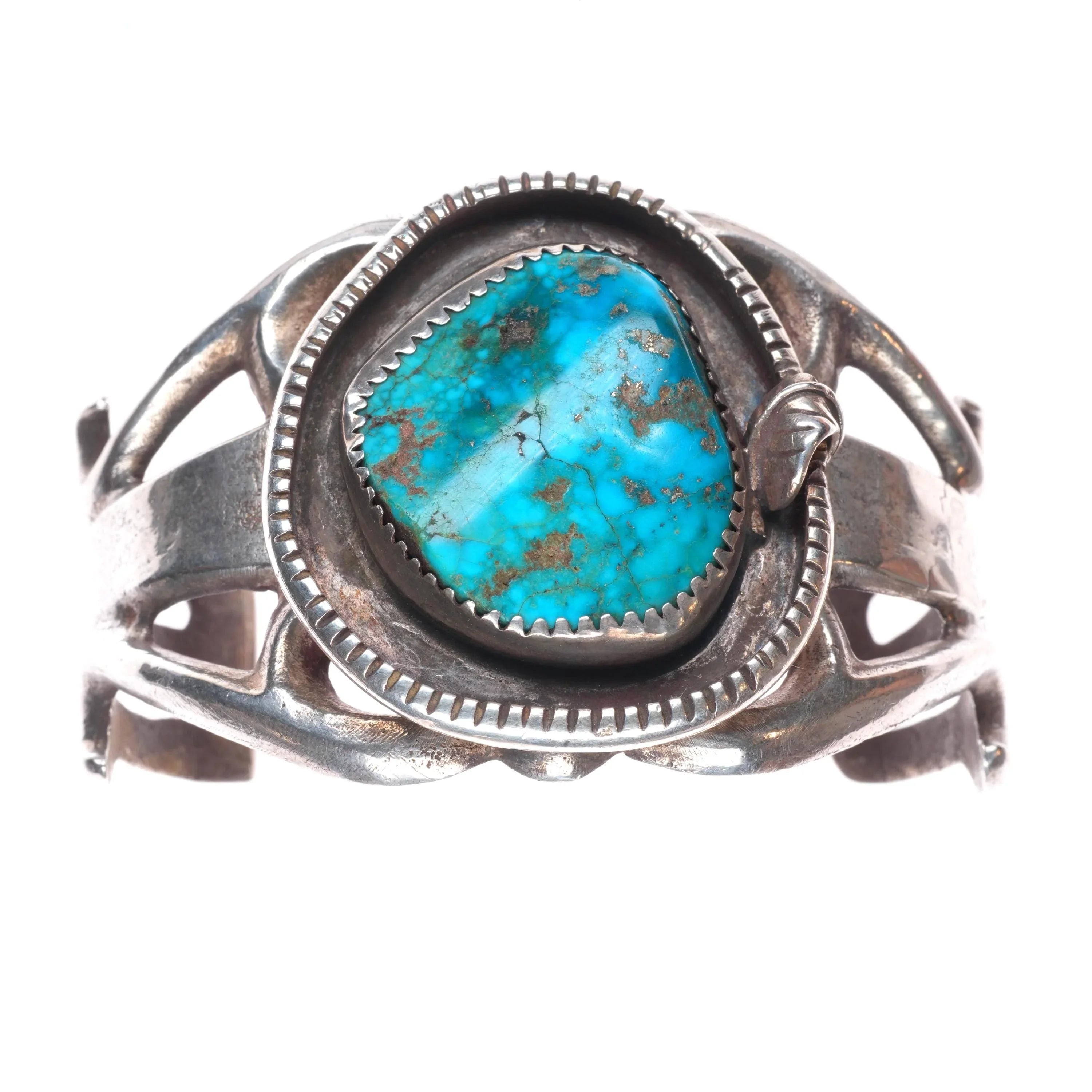 6.75" Vintage Navajo cast sterling silver shadowbox cuff bracelet nice turquoise