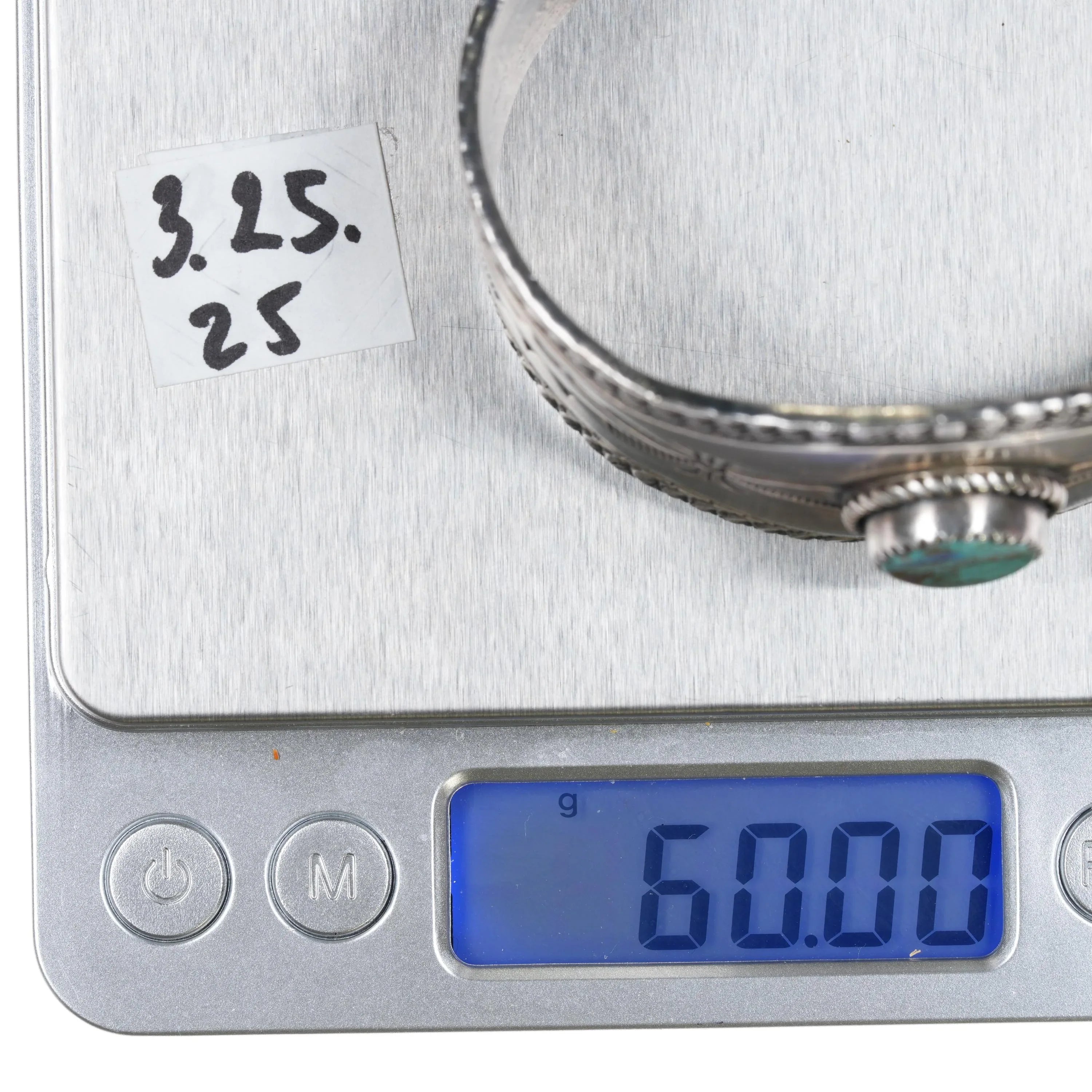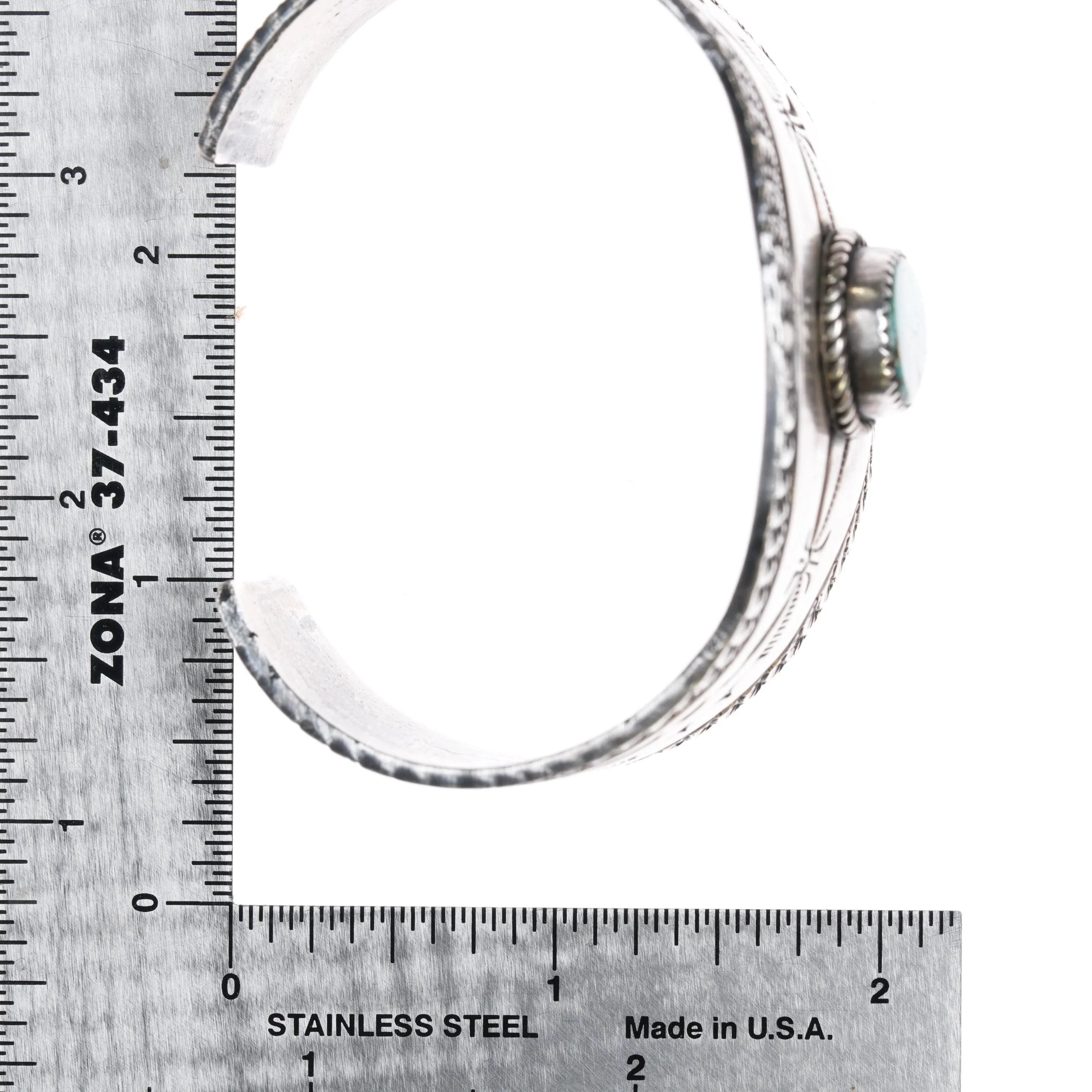 6.75" Vintage Navajo heavily stamped silver cuff bracelet w/turquoise Bisbee?. Weight and measurements in pictures, solid sterling silver. Marked as shown, just Sterling. With Bisbee, sometimes I‘m sure and sometimes I‘m not.