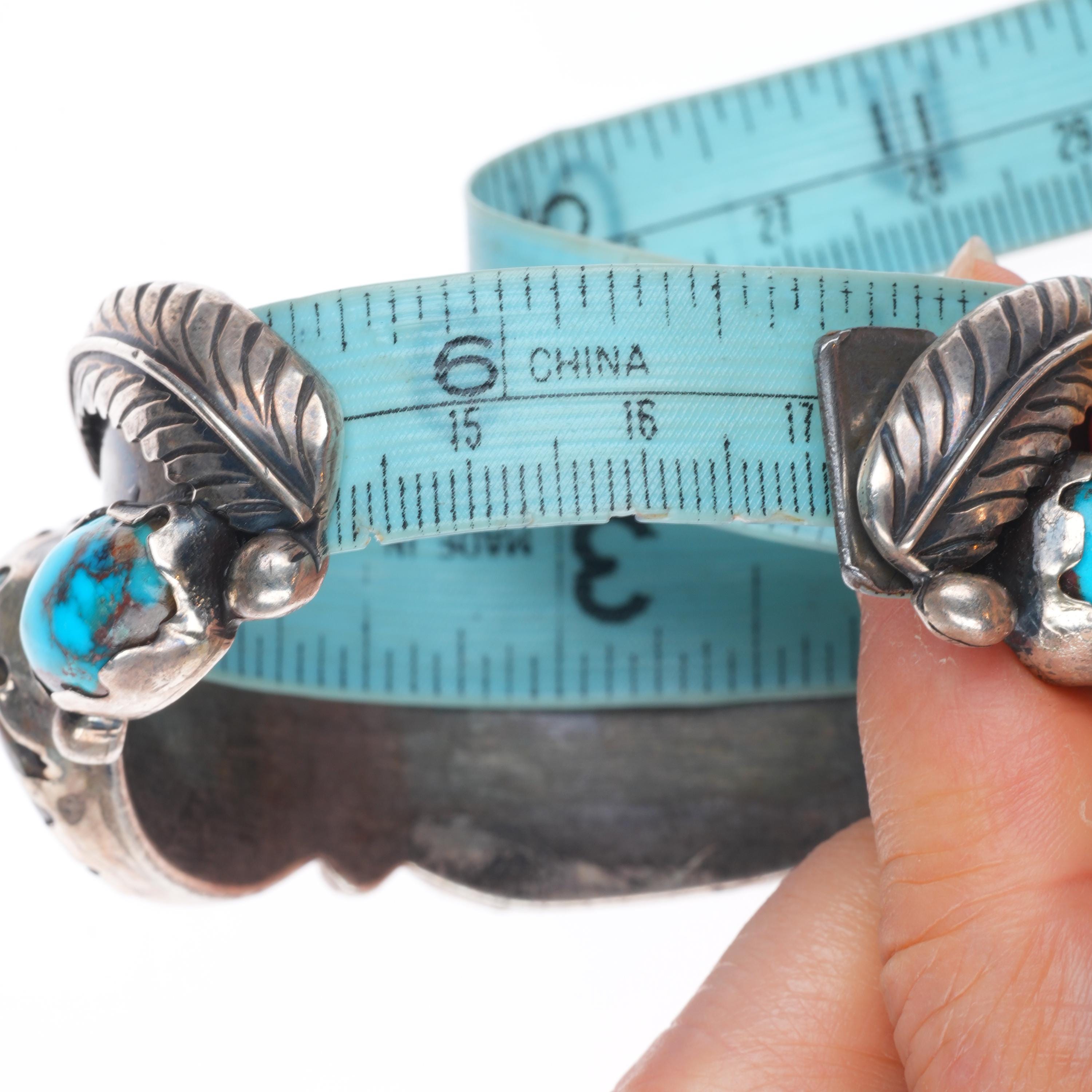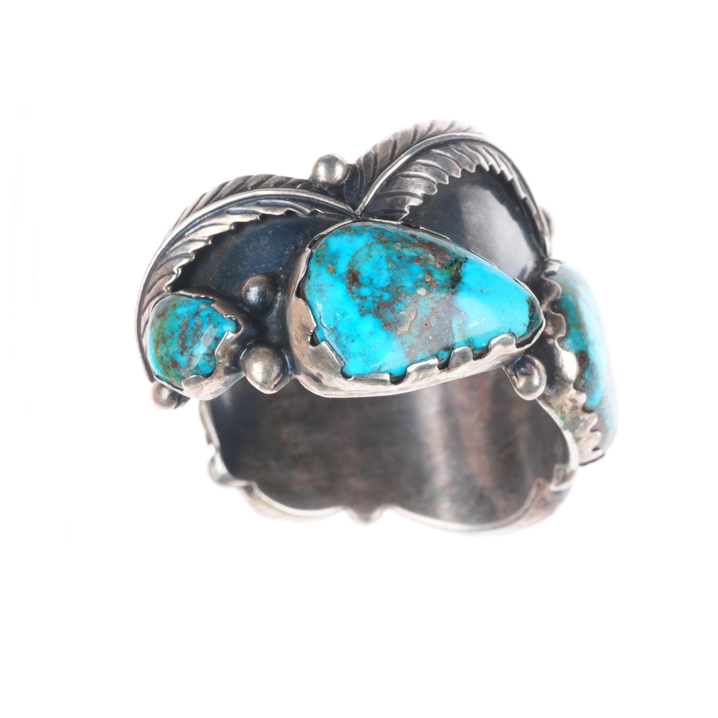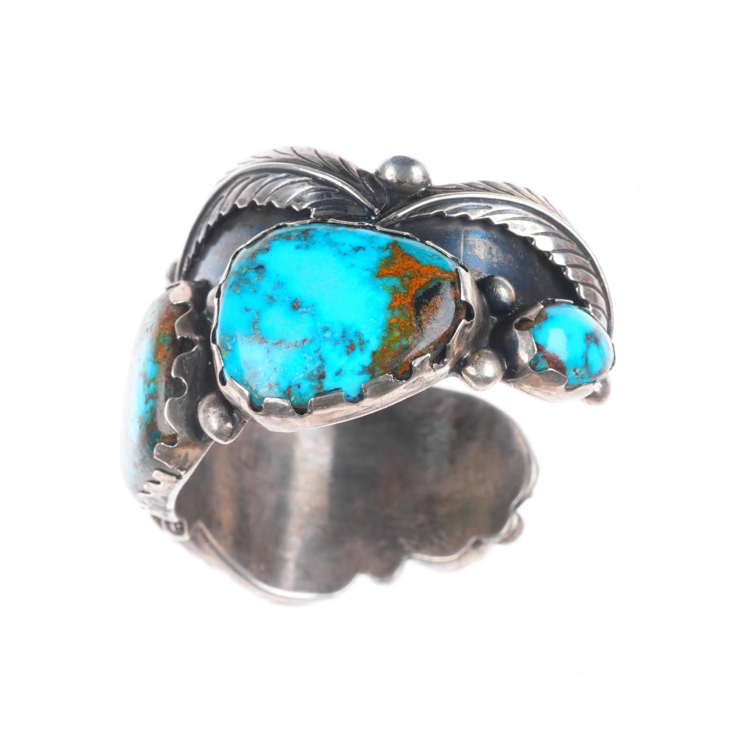 6.75" Vintage Navajo High Grade turquoise sterling silver cuff bracelet. Beautiful natural turquoise. Tested and guaranteed solid sterling silver with weight and measurements in pictures. Overall expected wear with apparent circa last quarter of the 20th century.