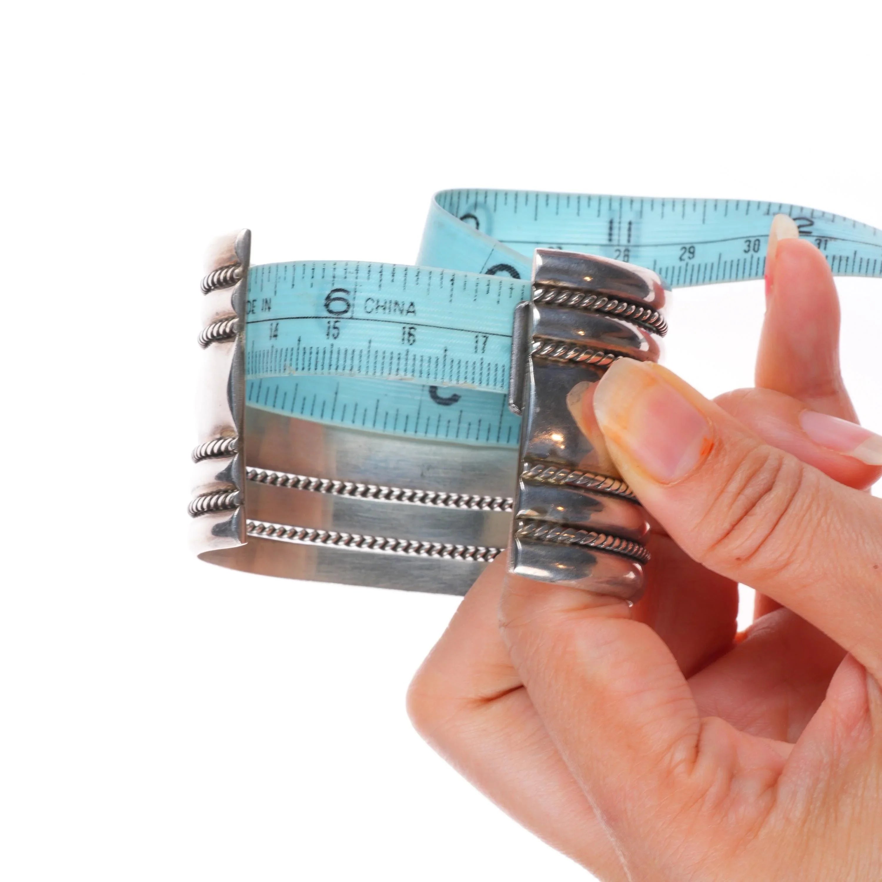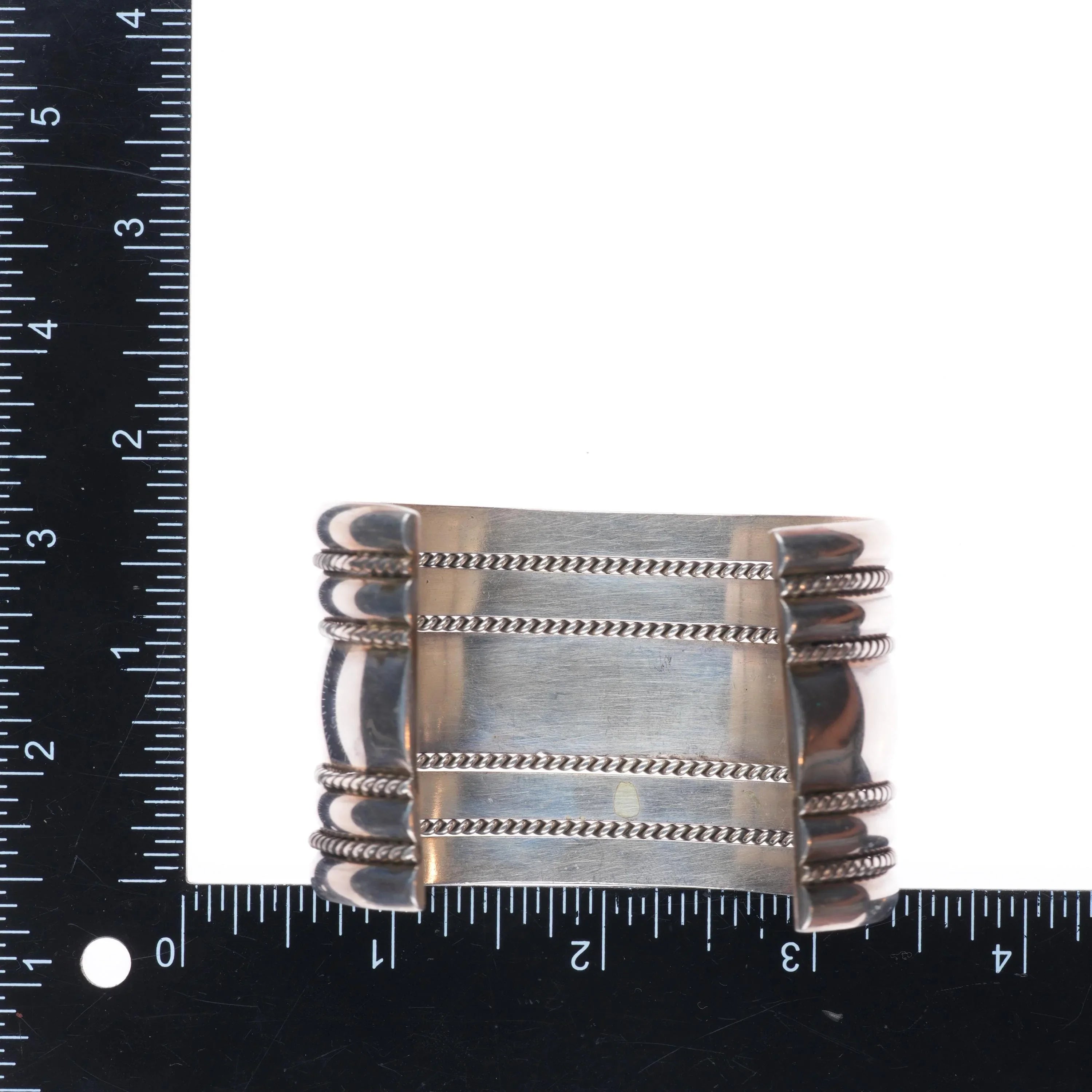 6.75" Vintage Tahe Navajo sterling silver wide band twisted wire cuff bracelet