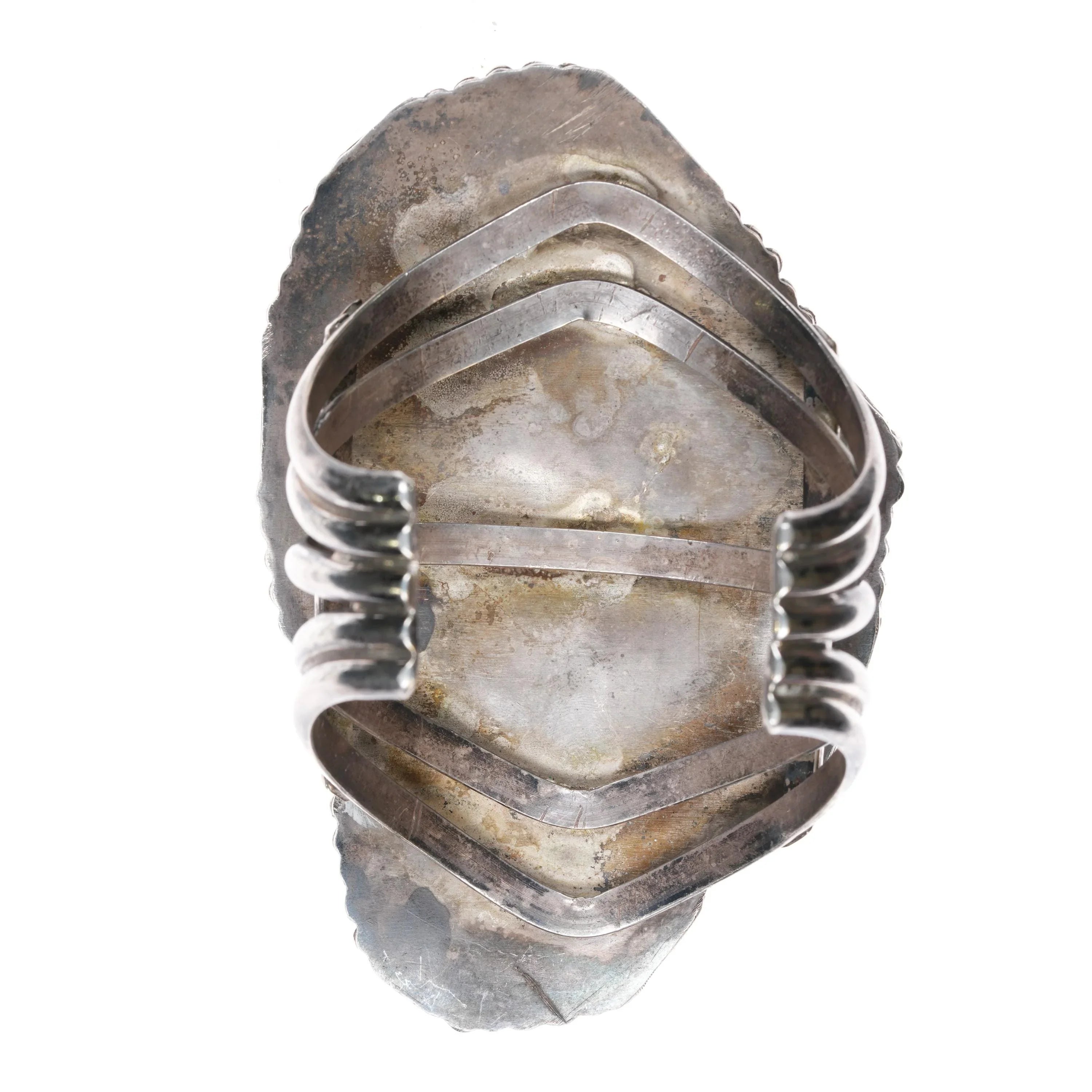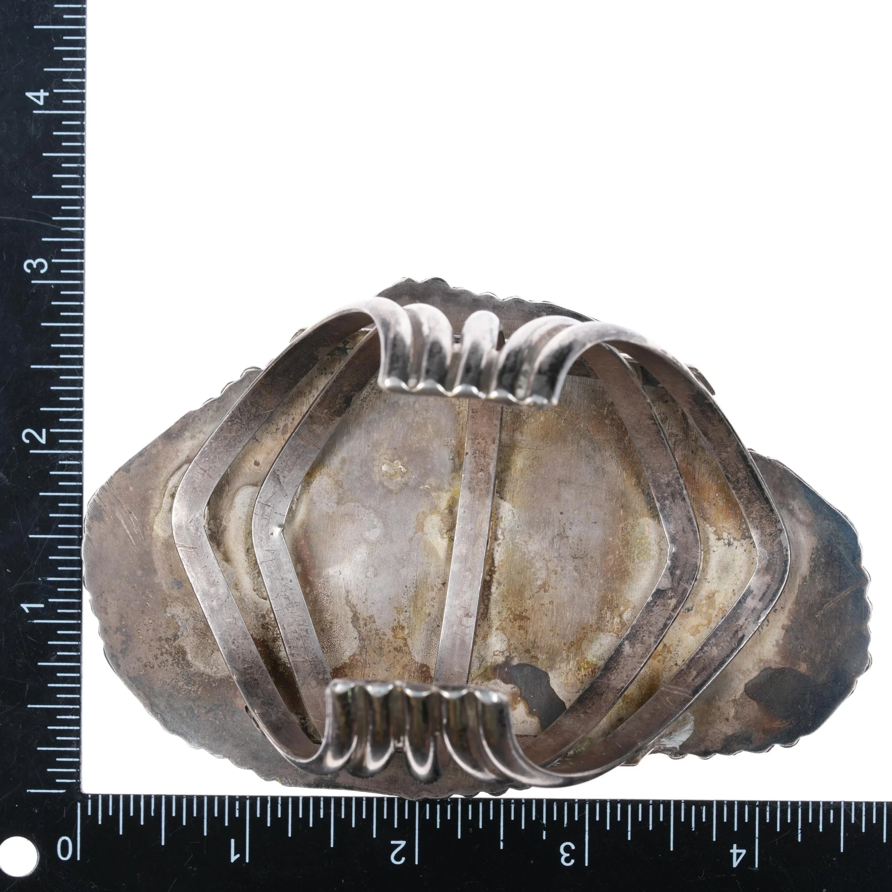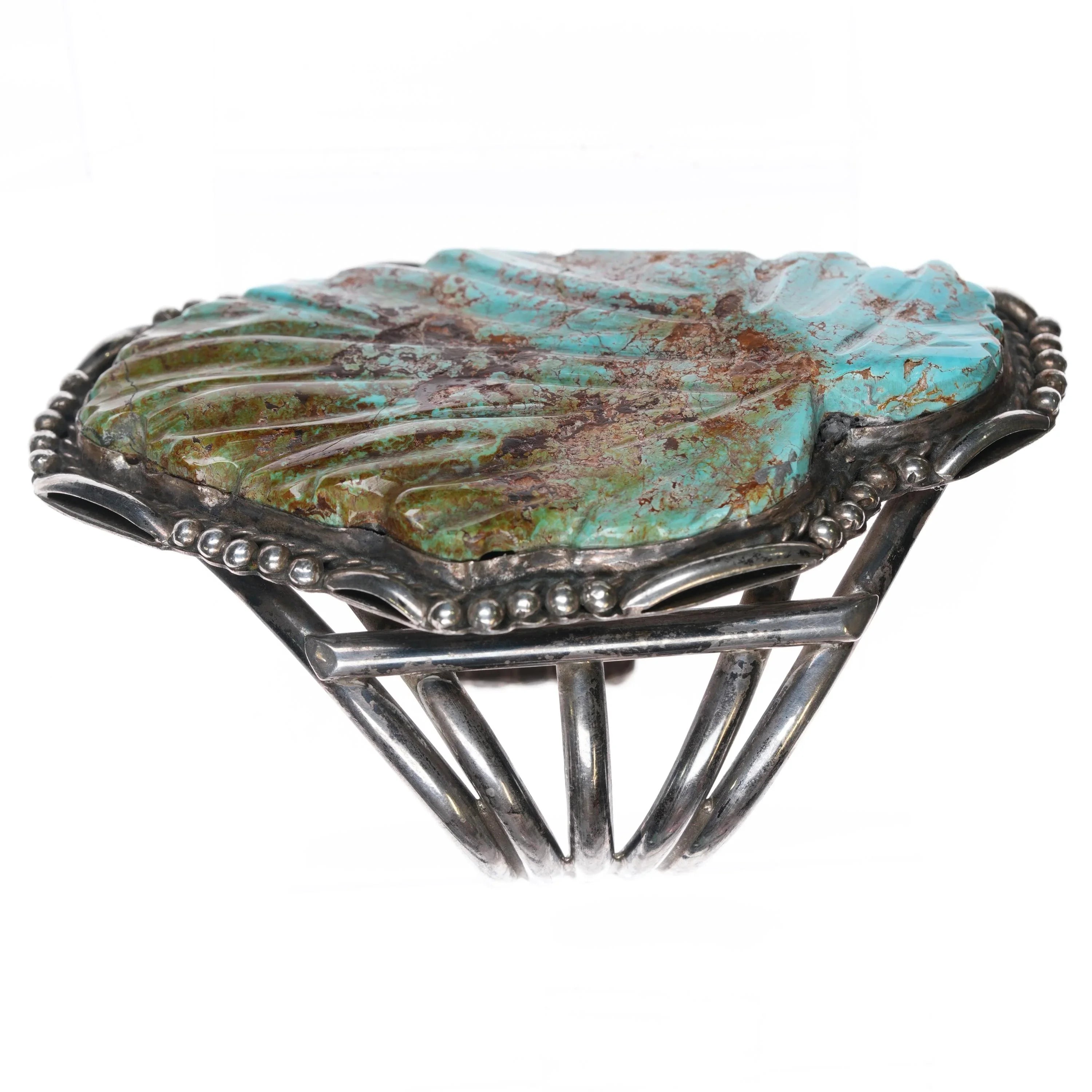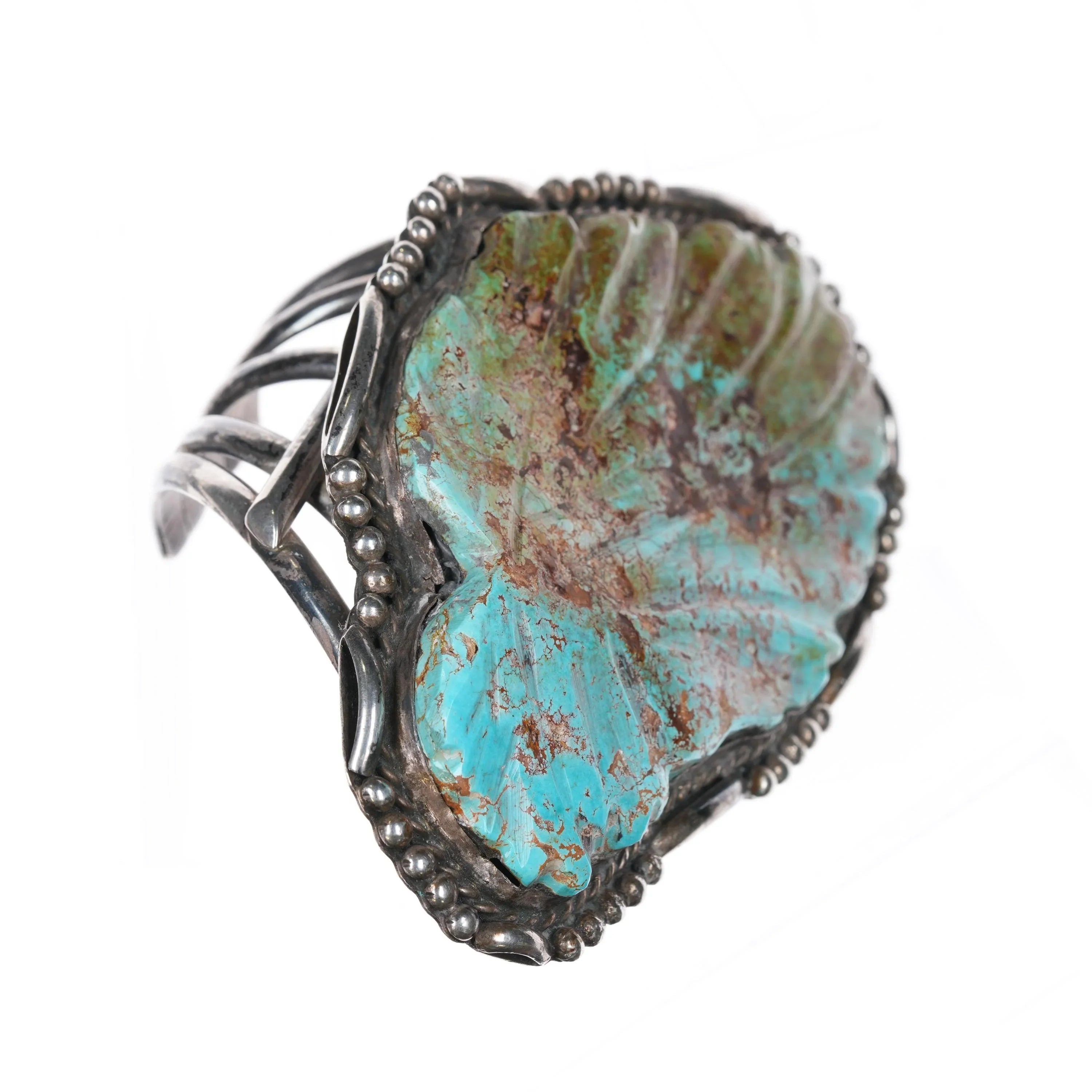 6.8" Huge 60's-70's Navajo sterling silver carved Turquoise leaf cuff bracelet