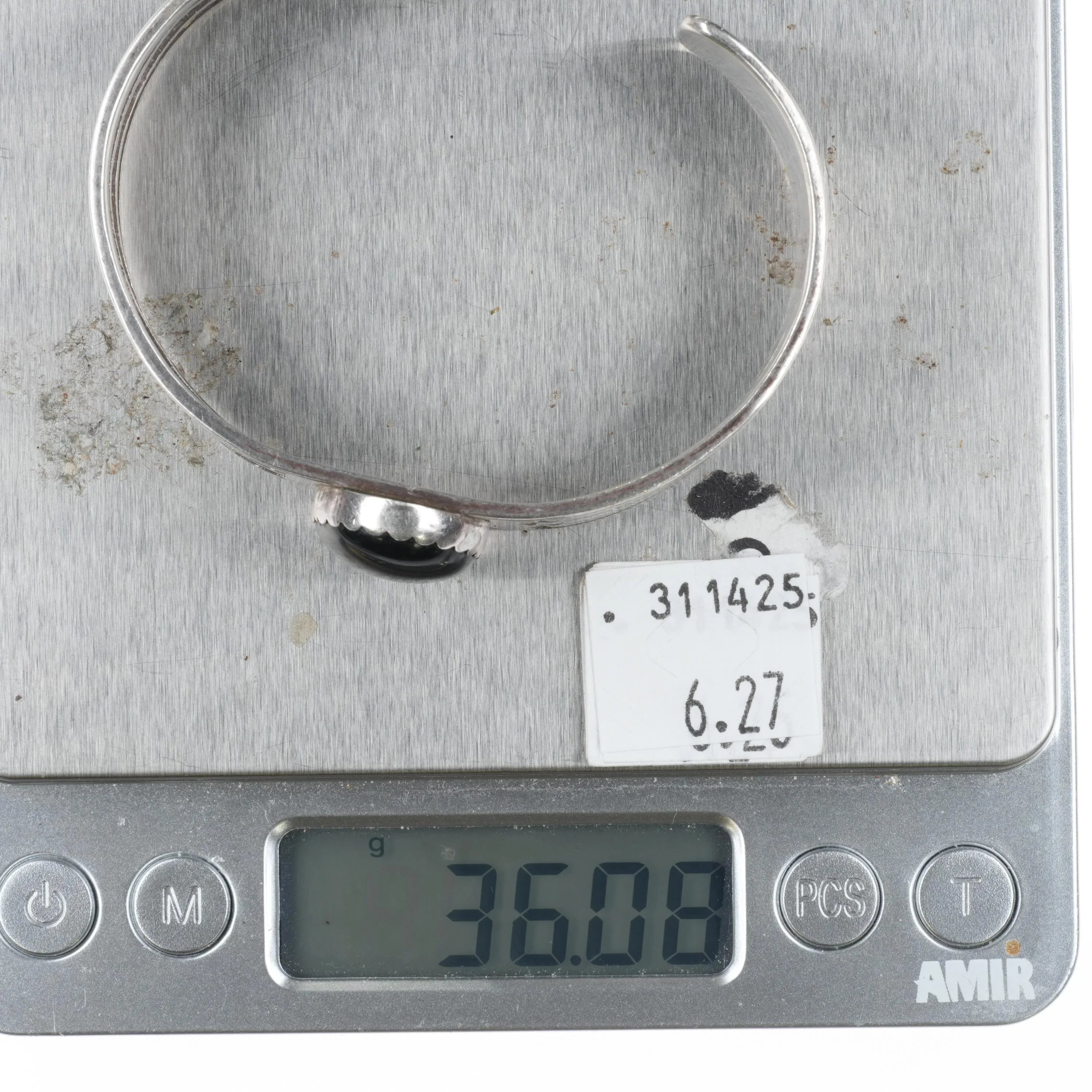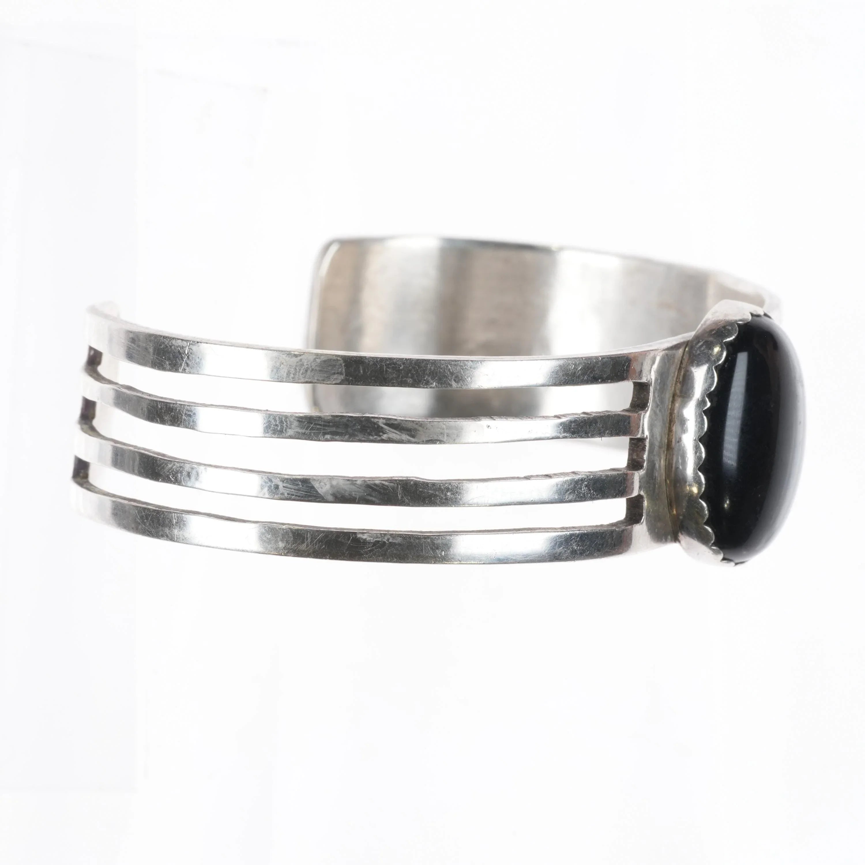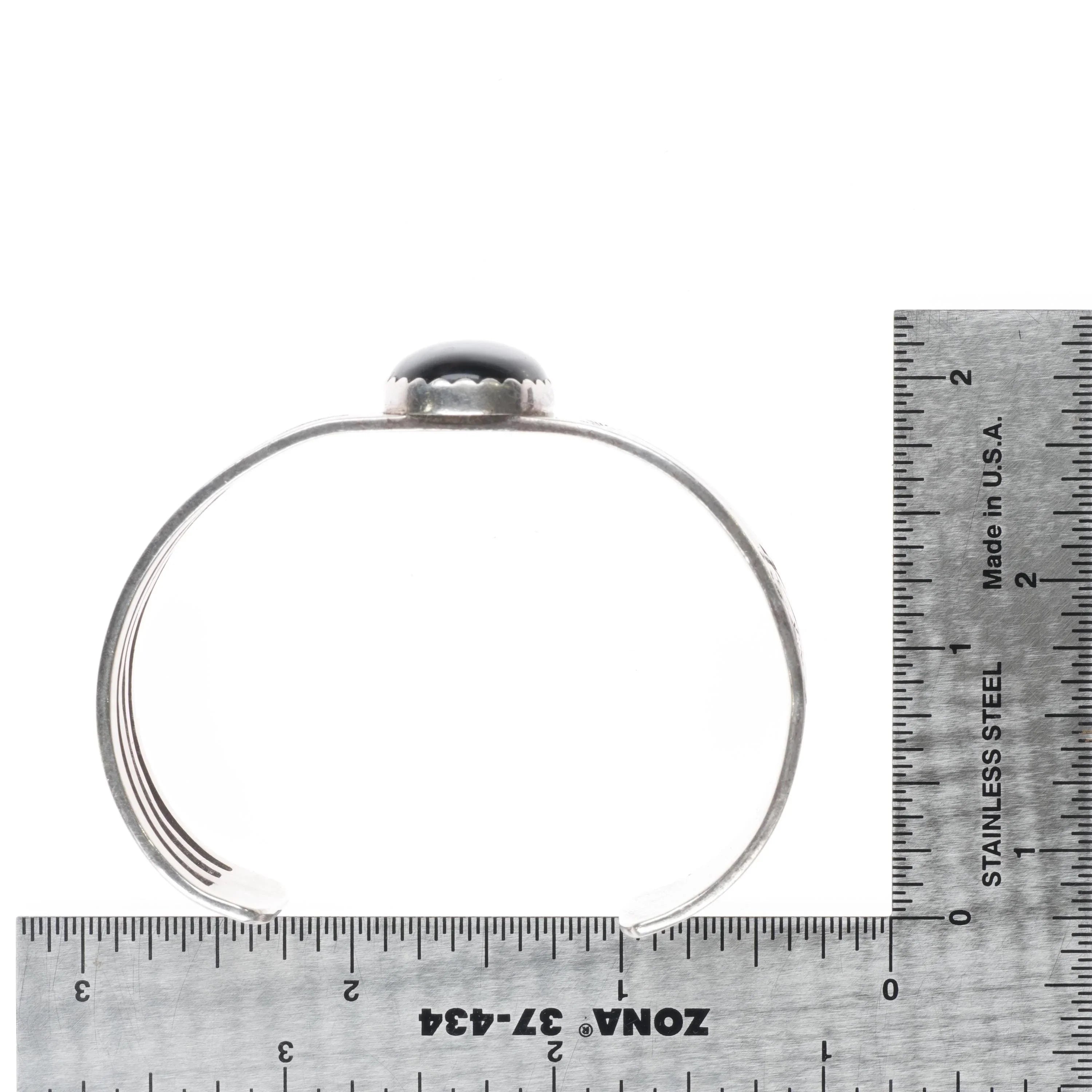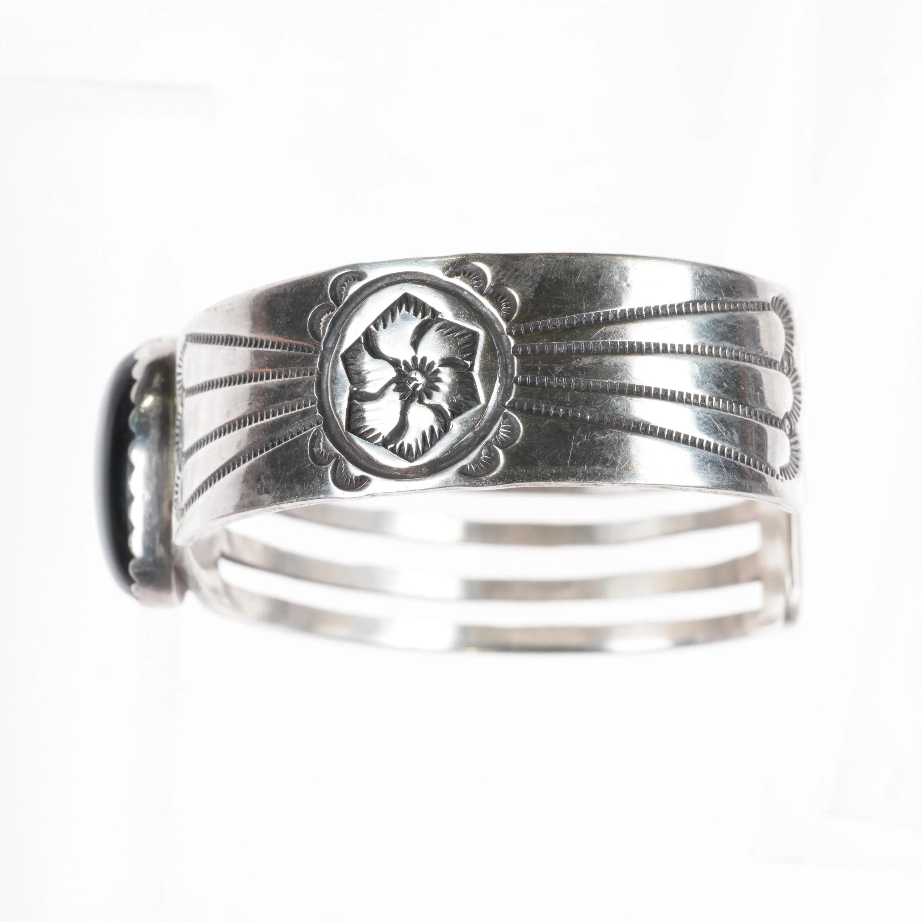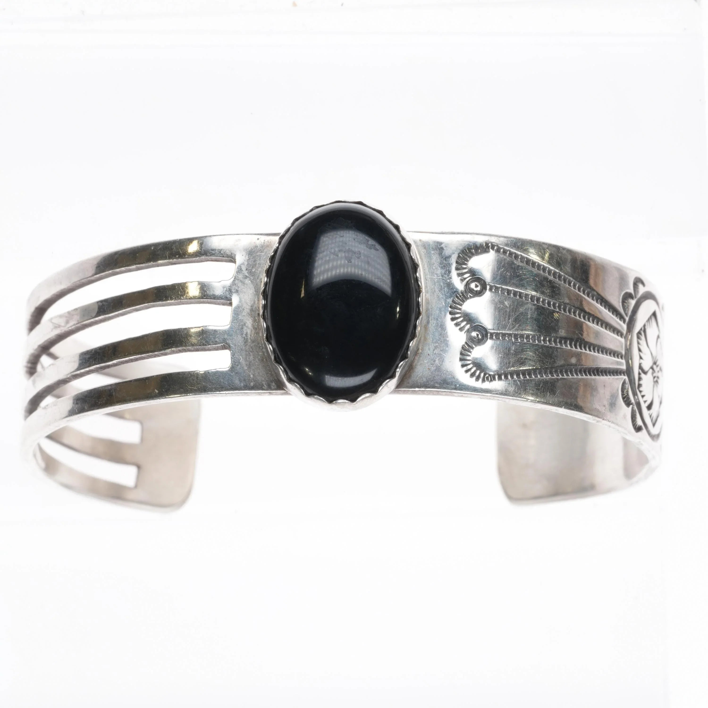 6.8" Lee Begay Navajo sterling silver hand stamped Onyx cuff bracelet