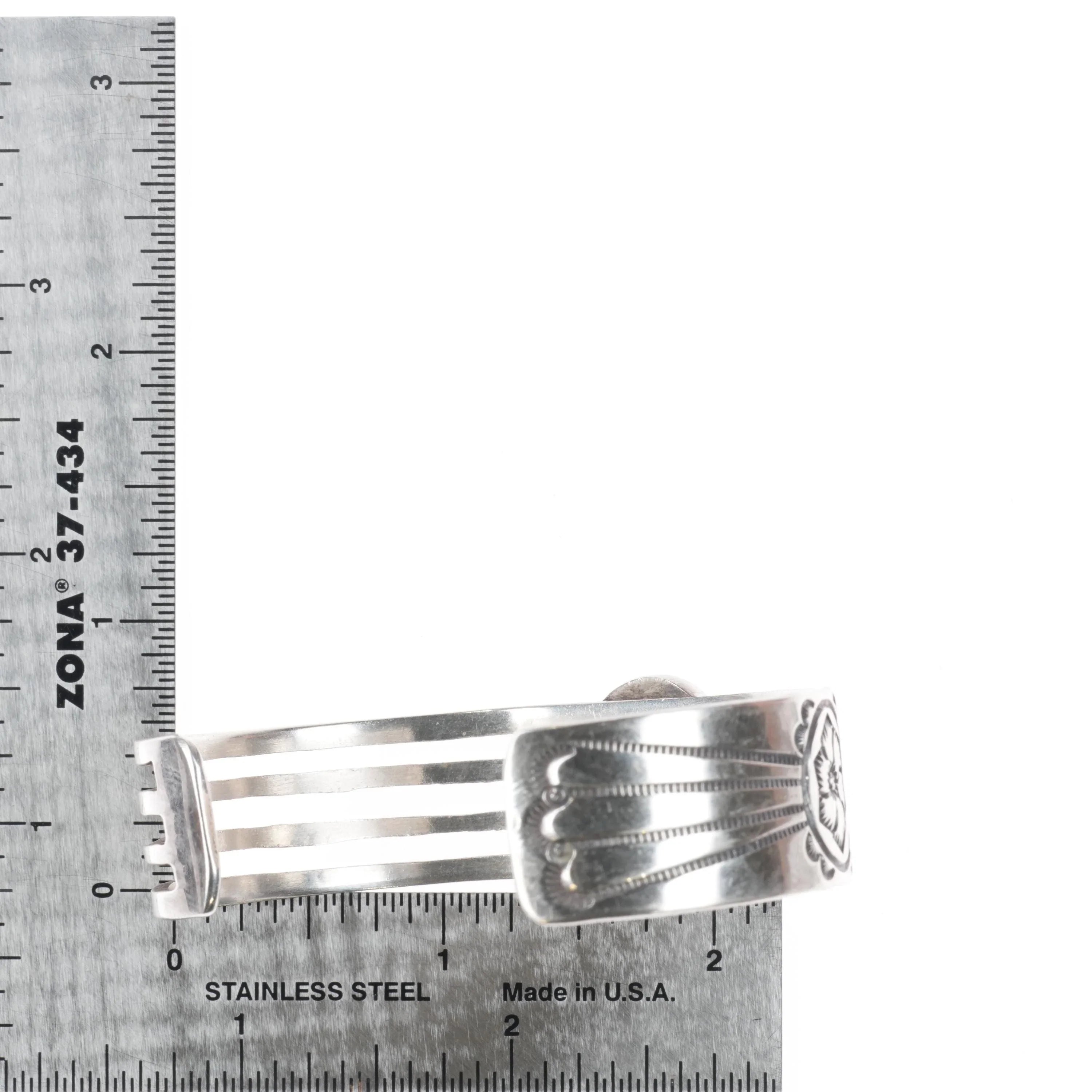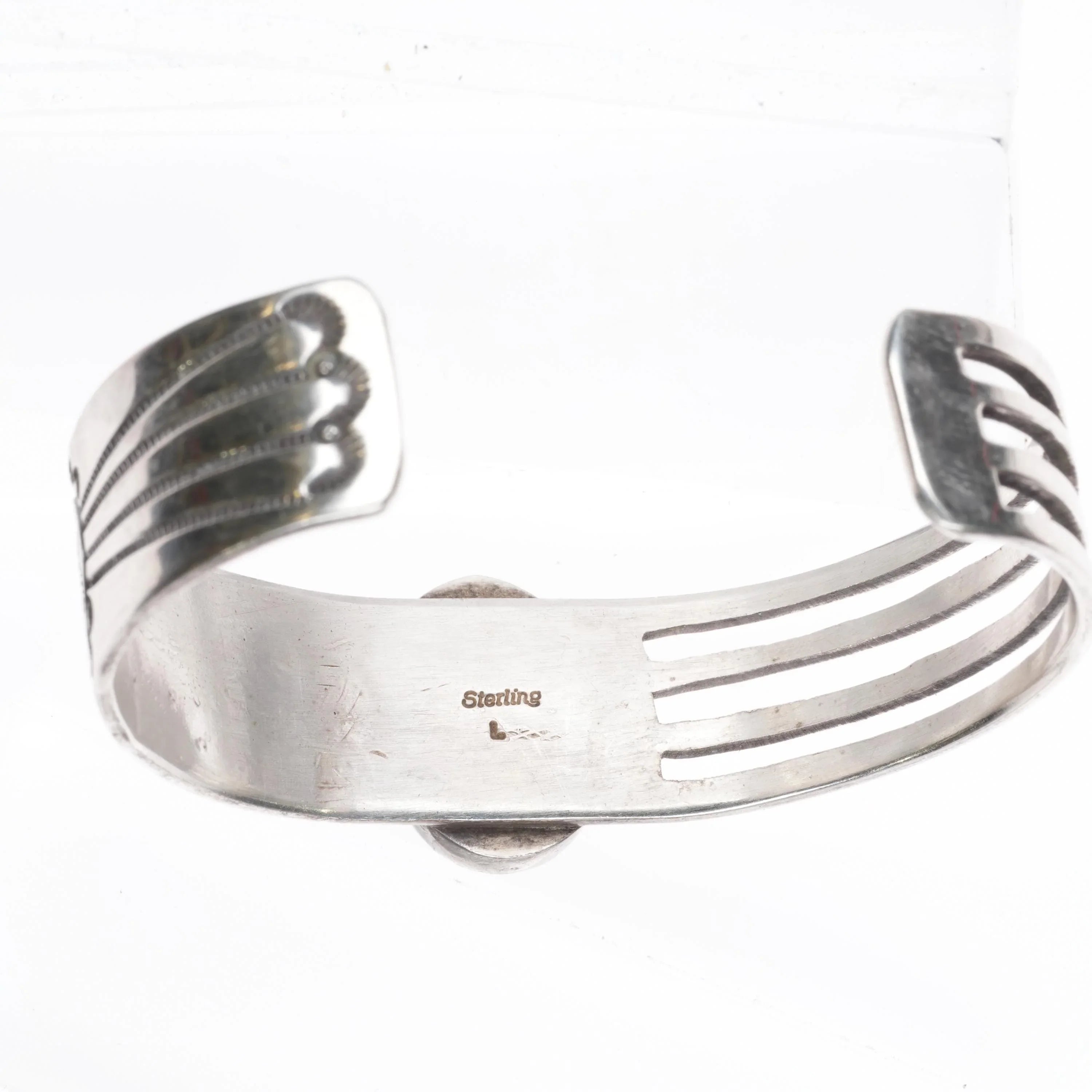 6.8" Lee Begay Navajo sterling silver hand stamped Onyx cuff bracelet. Tested and guaranteed solid sterling silver. Weight and measurements in pictures. Some expected wear with no damage. Circa last quarter of the 20th century.