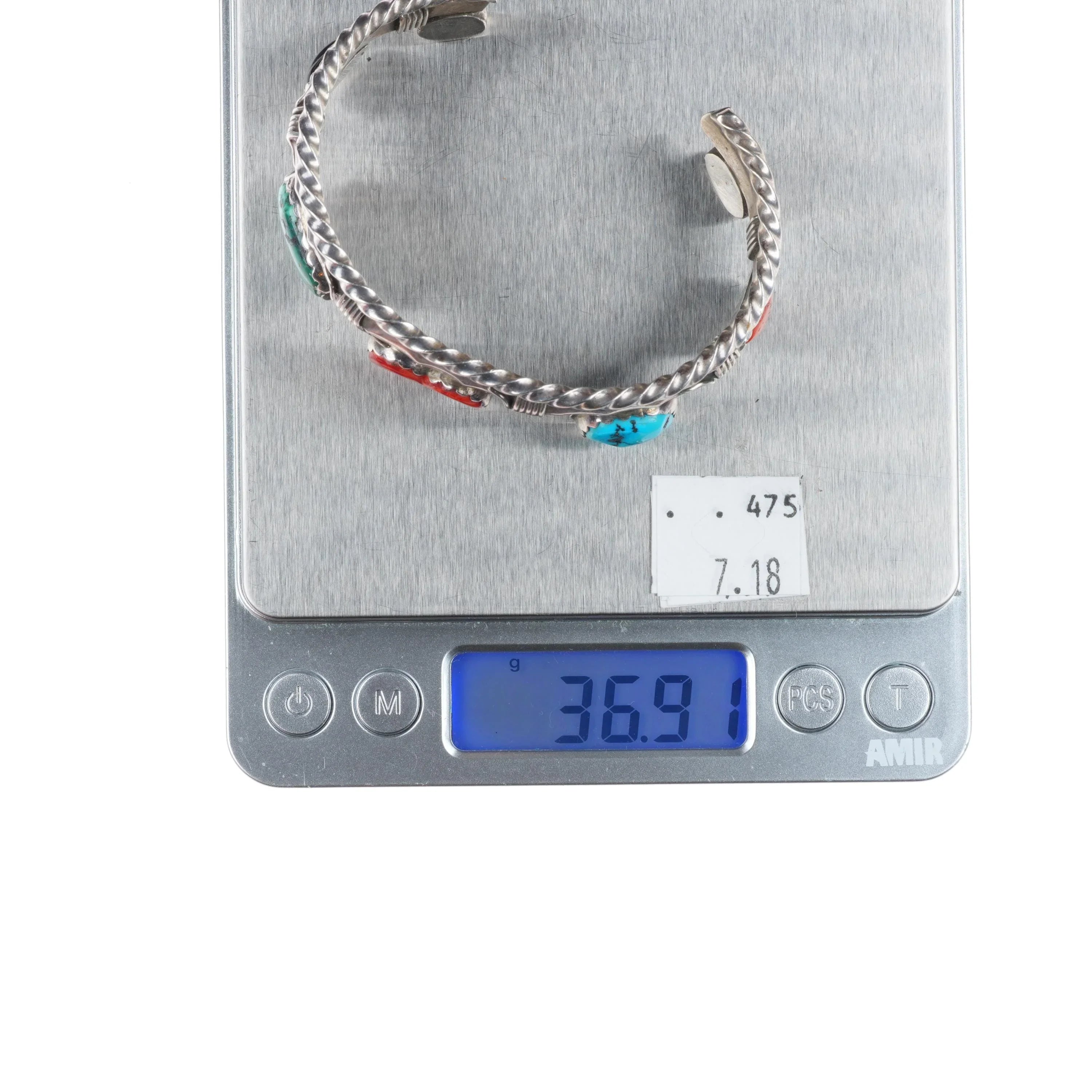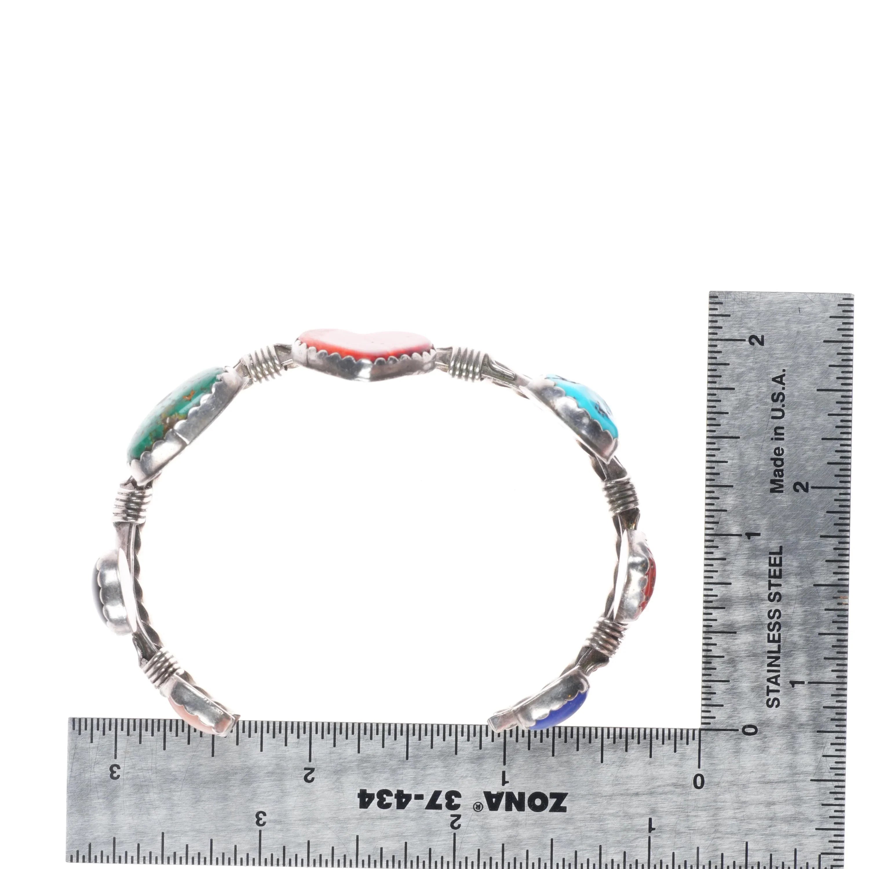 6.8" Southwestern sterling silver heart turquoise/coral/lapis cuff bracelet