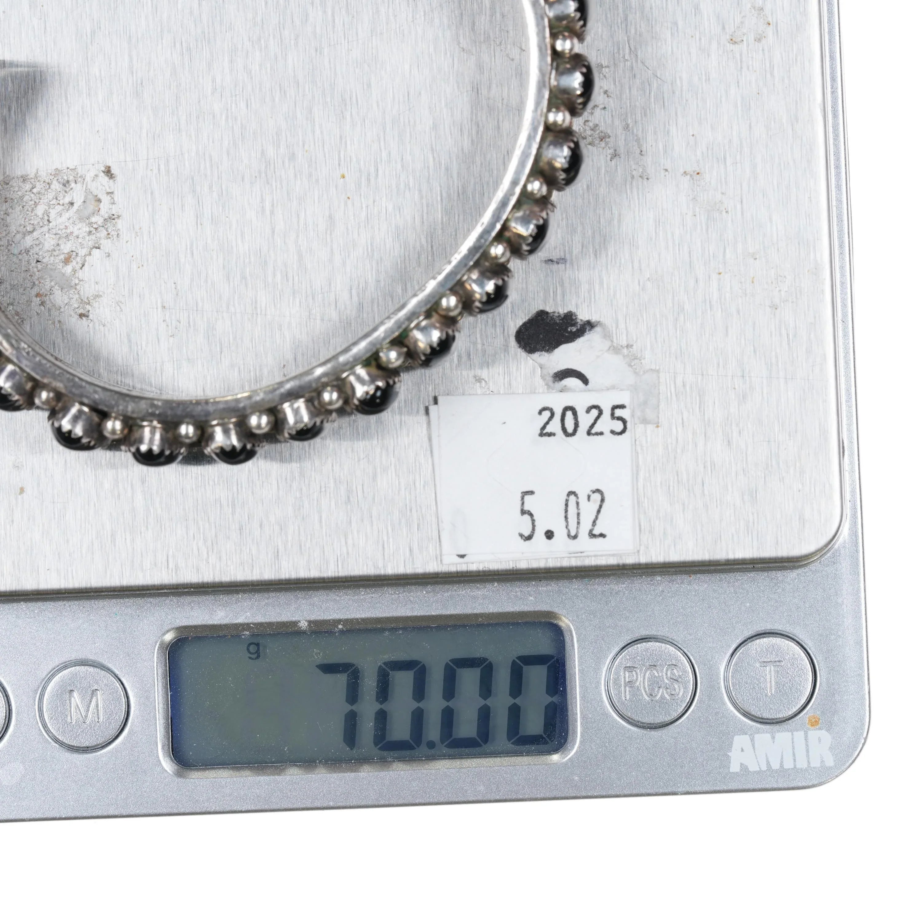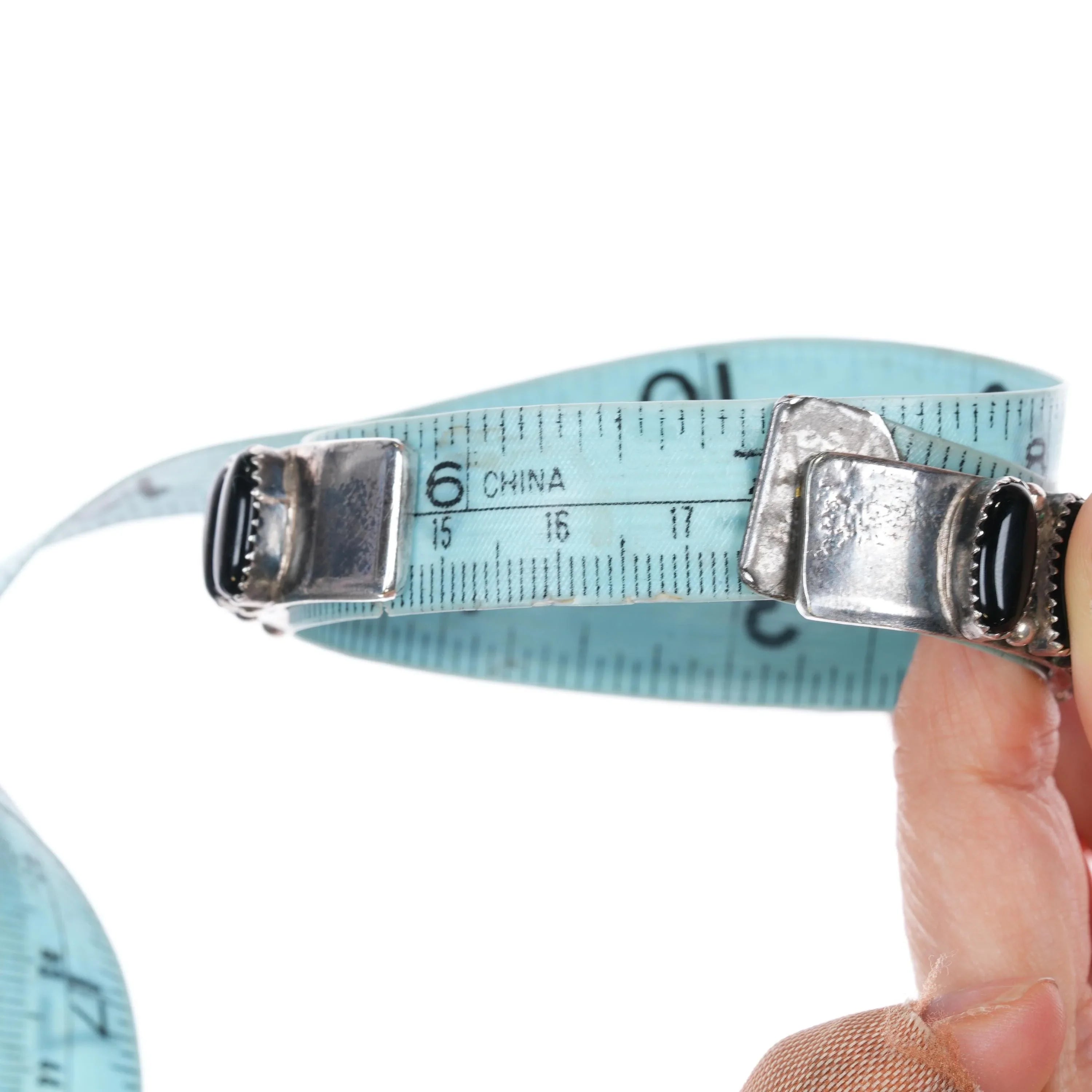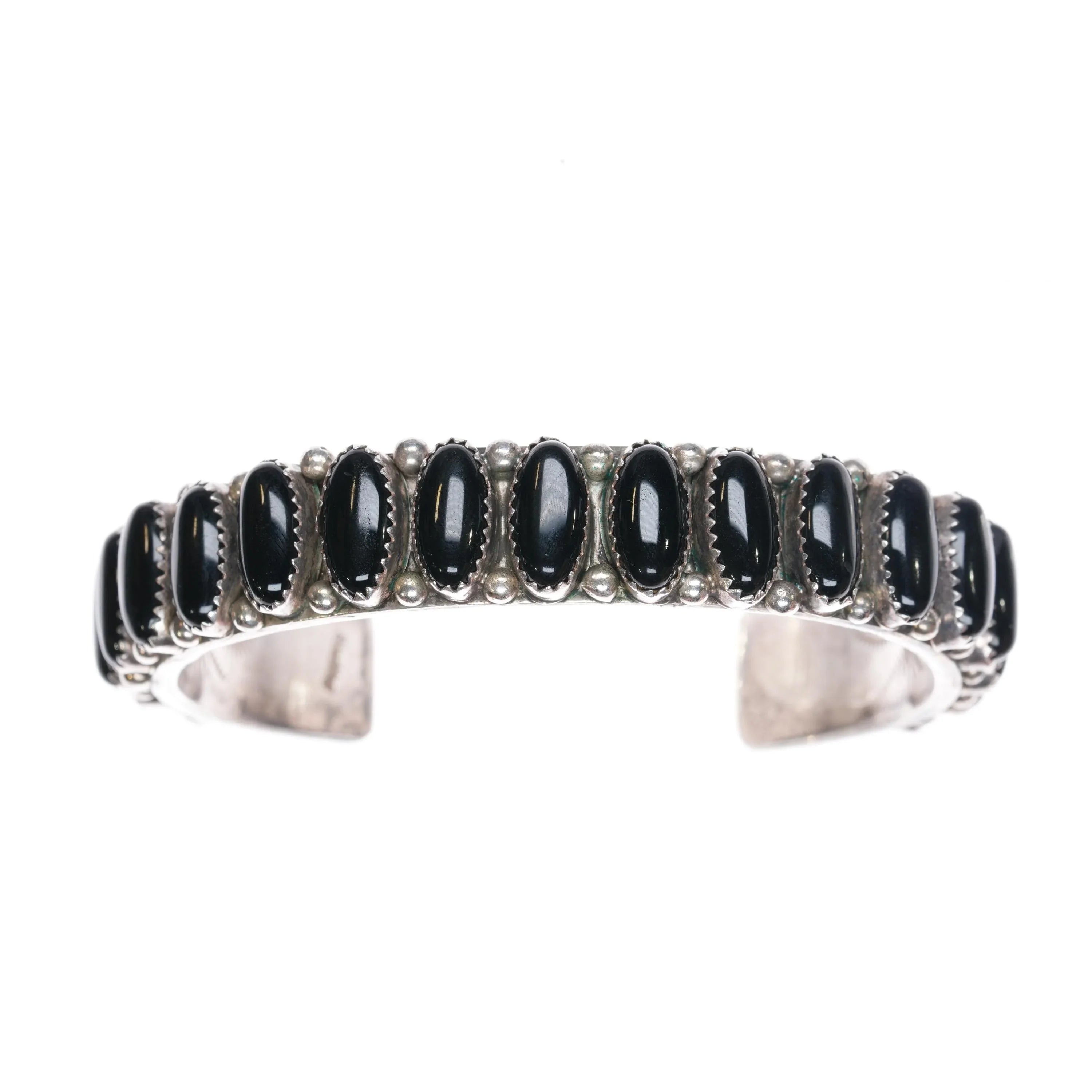 6.85" Vintage Navajo sterling silver onyx row cuff bracelet Interior stamping