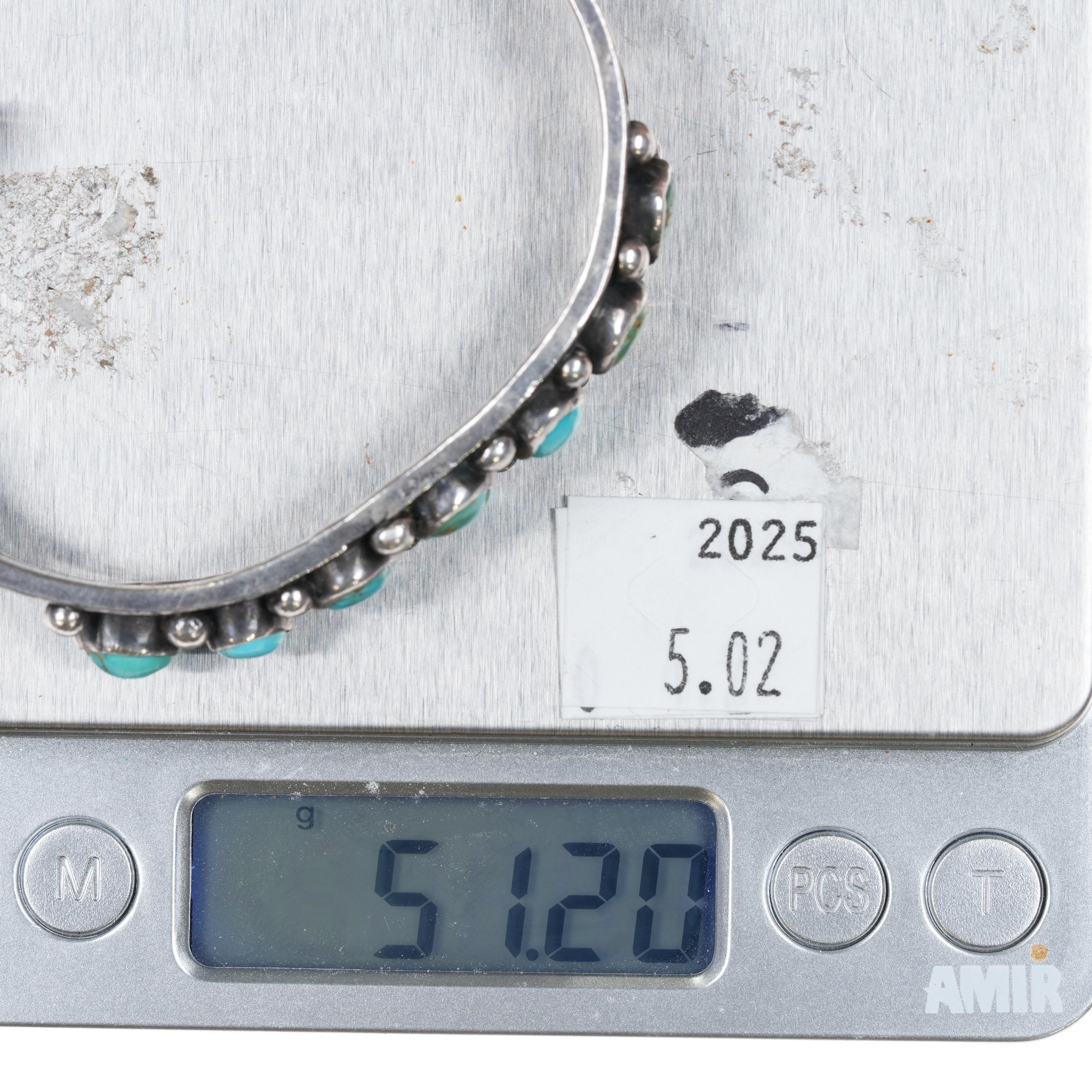 6.87" 20‘s-30‘s Navajo ingot silver turquoise row cuff bracelet w/ twisted wire . Weight and measurements in pictures, solid sterling silver. No damage, no markings. Circa second quarter of the 20th century.