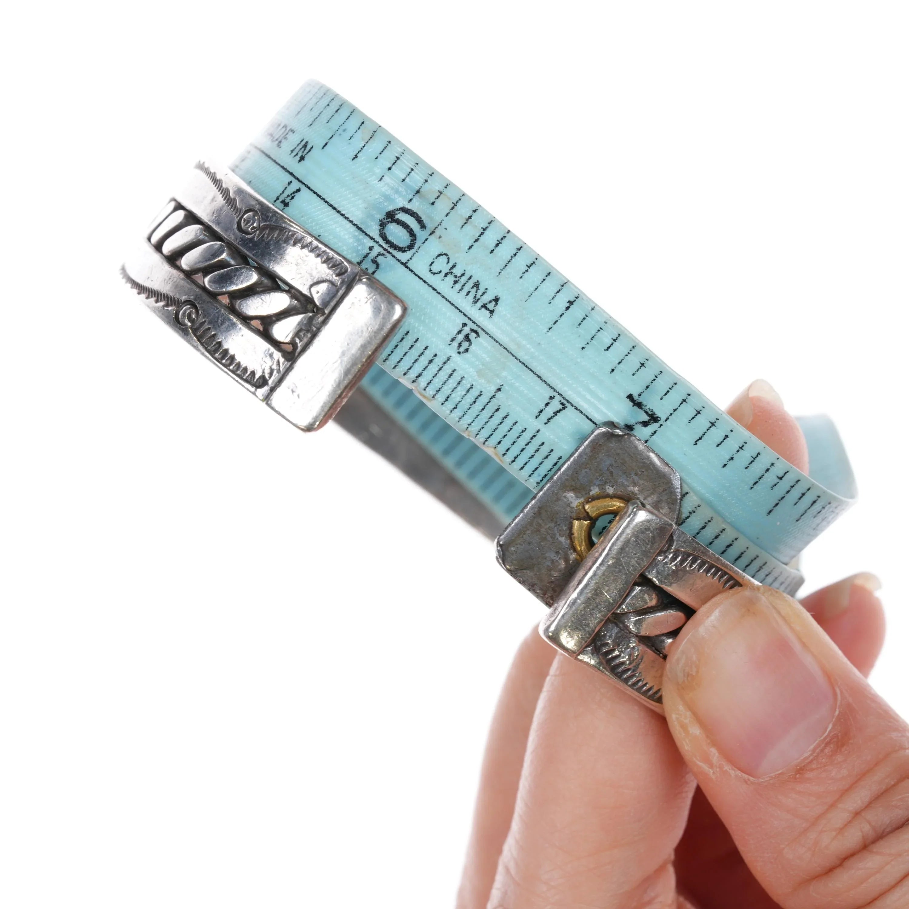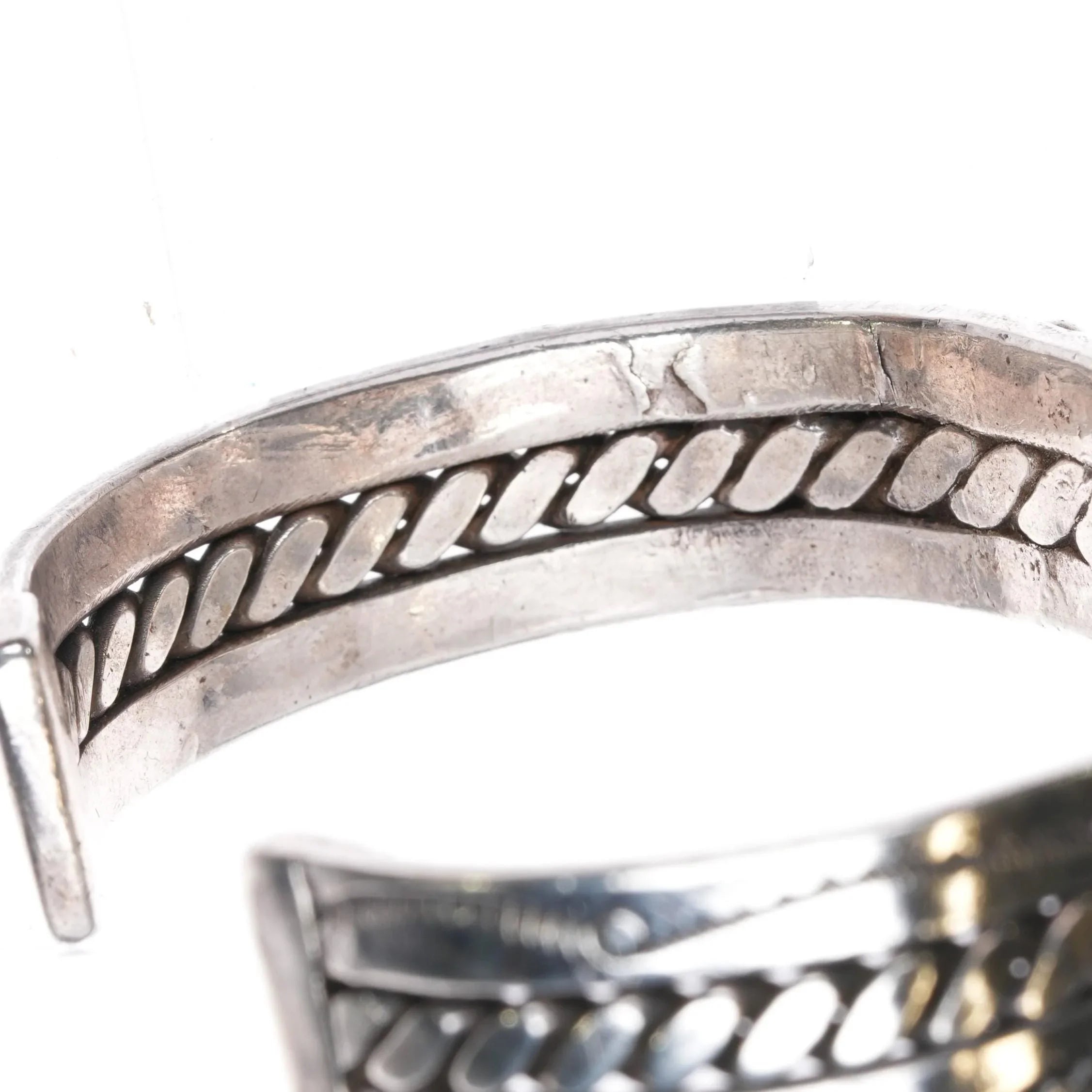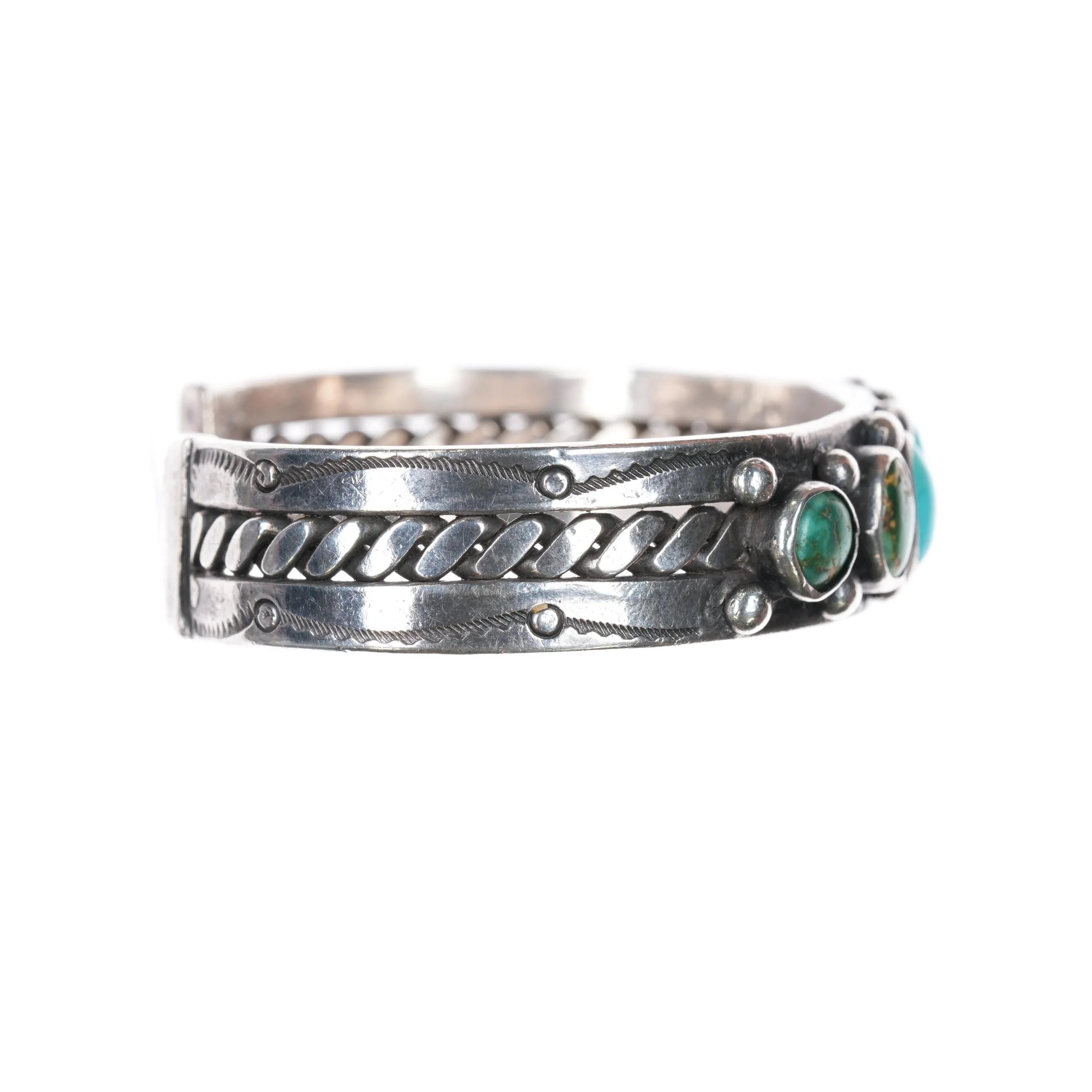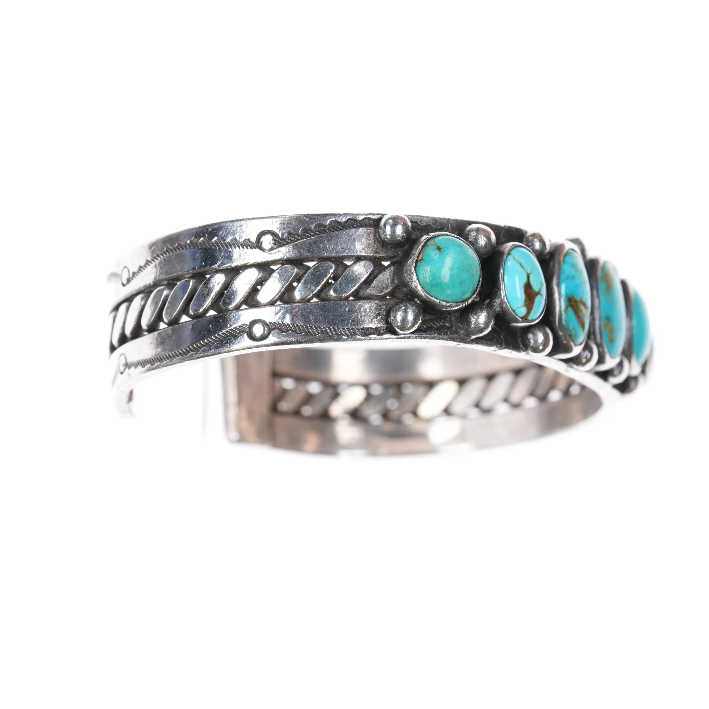 6.87" 20's-30's Navajo ingot silver turquoise row cuff bracelet w/ twisted wire