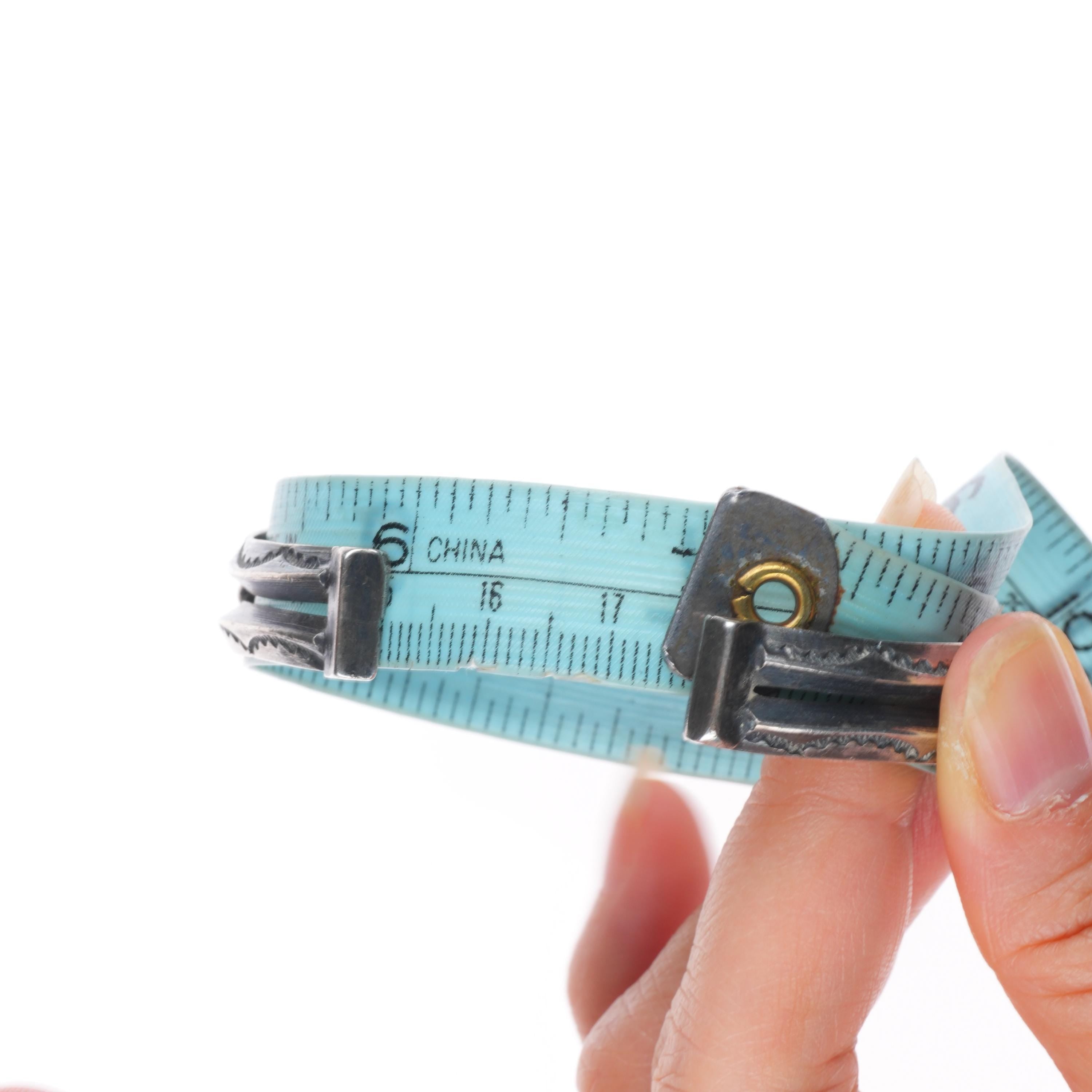 6.9" c1930‘s Navajo carinated sterling silver turquoise row cuff bracelet. Tested and guaranteed solid sterling silver with weight and measurements in pictures. Circa second quarter of the 20th century. Fits up to a 7" wrist without adjustment, though .25" or more of careful adjustment is typically very simple. Any adjustment will change the gap size of course which is shown in the pictures.