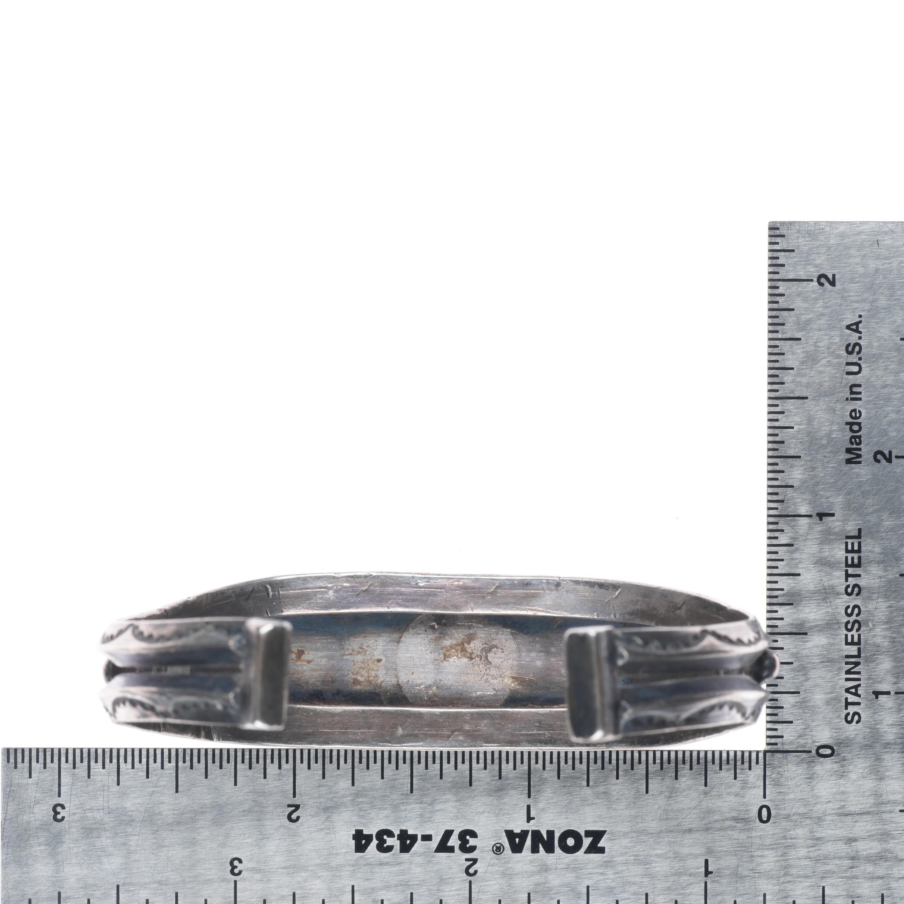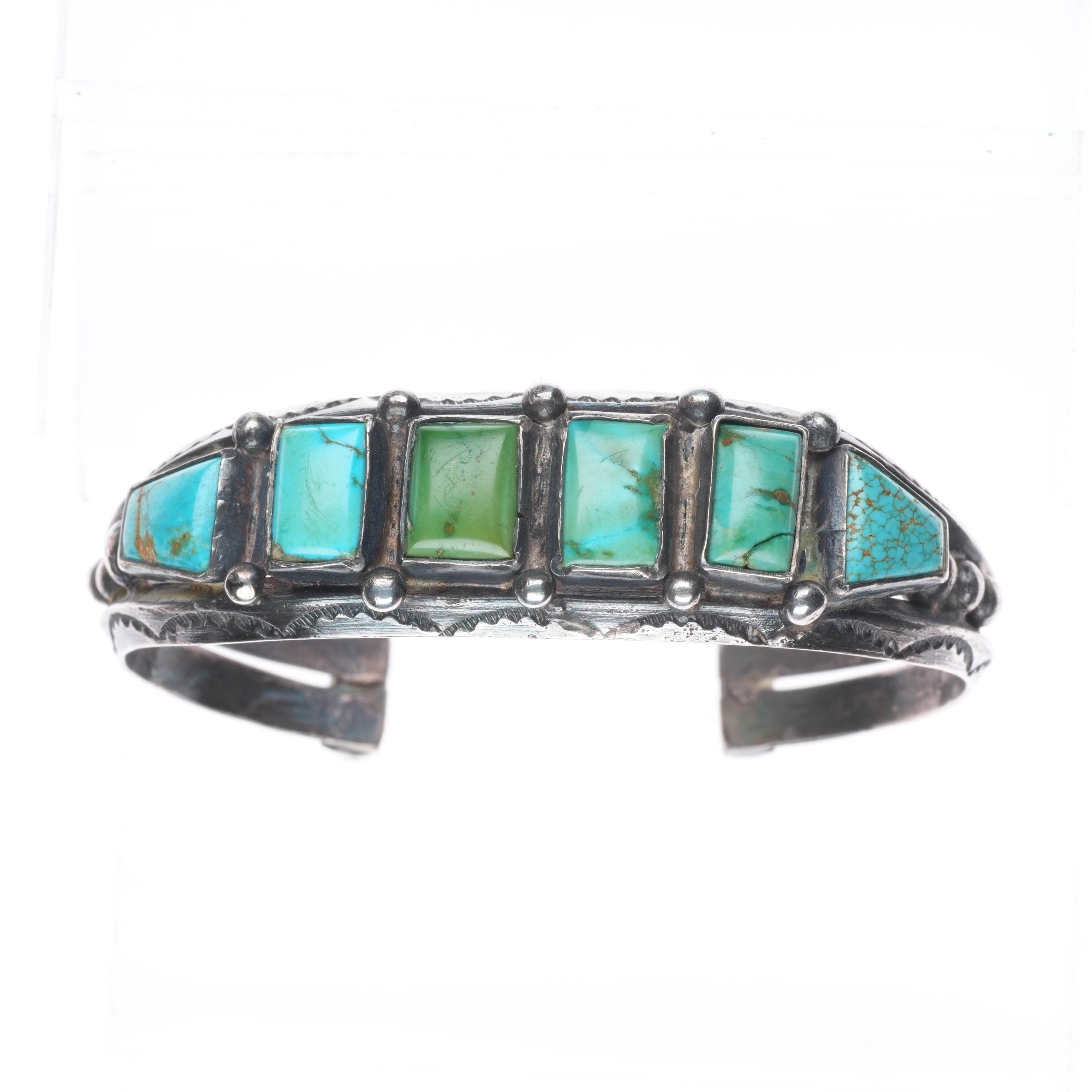 6.9" c1930's Navajo carinated sterling silver turquoise row cuff bracelet