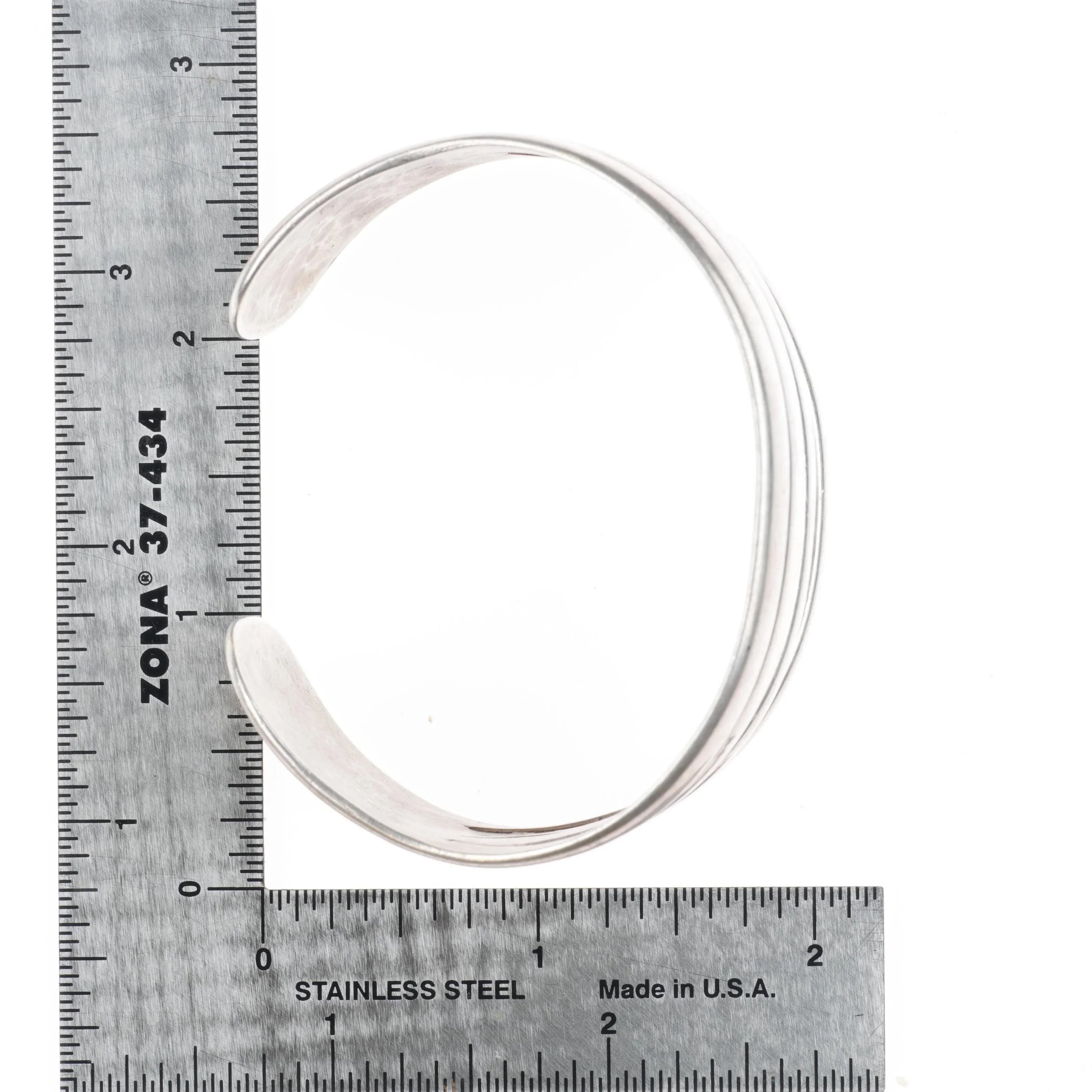 6.9" Vintage Navajo 4 shank ribbed hand stamped sterling silver cuff bracelet. Tested and guaranteed solid sterling silver with no markings whatsoever. Well cared for piece fromt he third quarter of the 20th century with no issues.