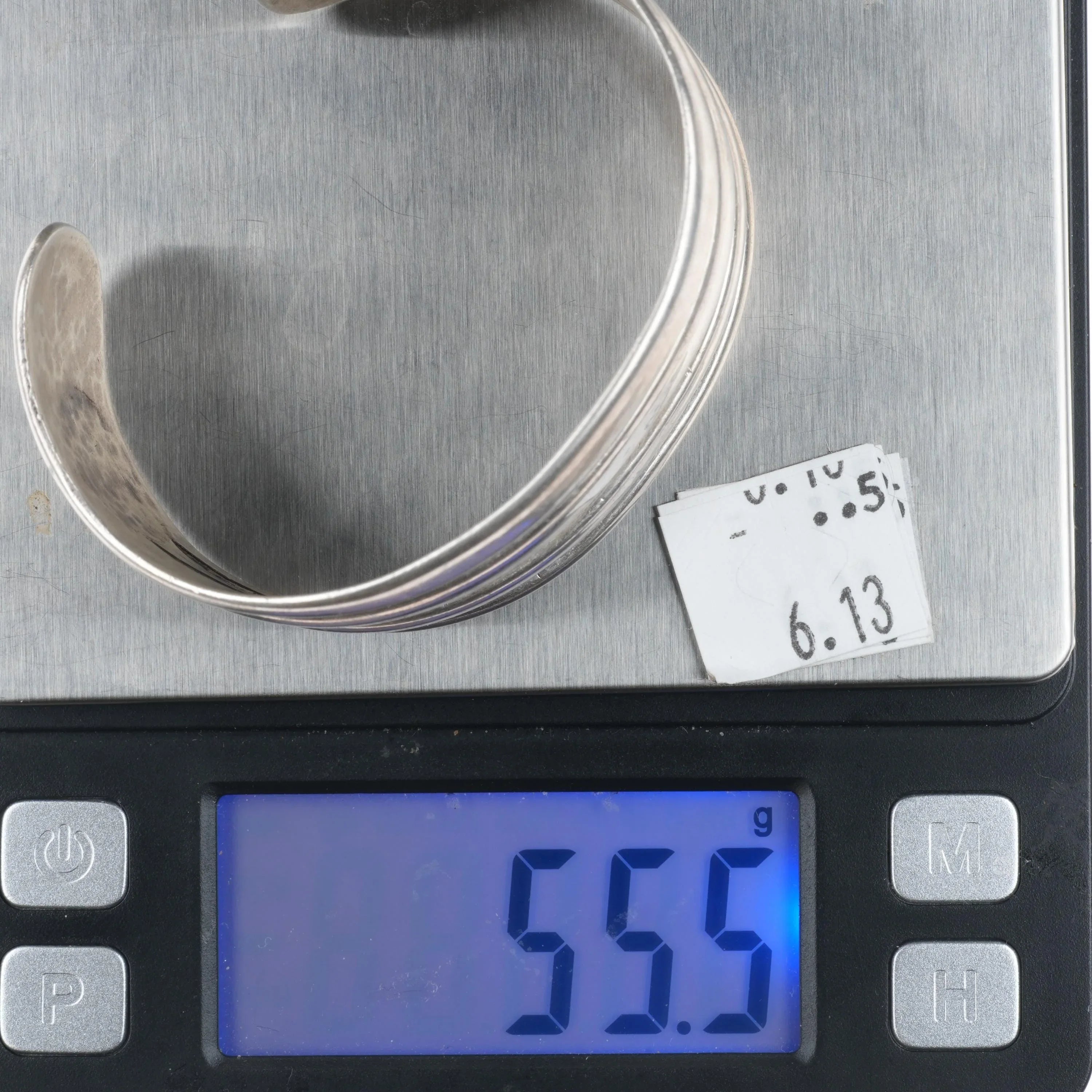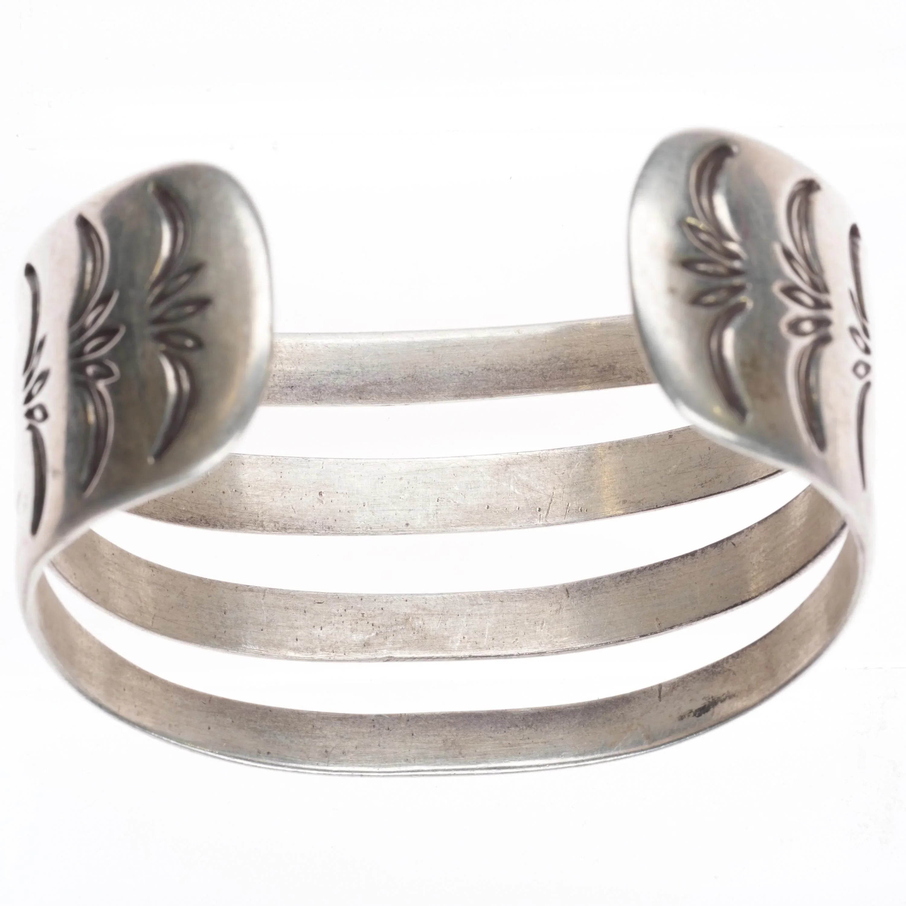 6.9" Vintage Navajo 4 shank ribbed hand stamped sterling silver cuff bracelet