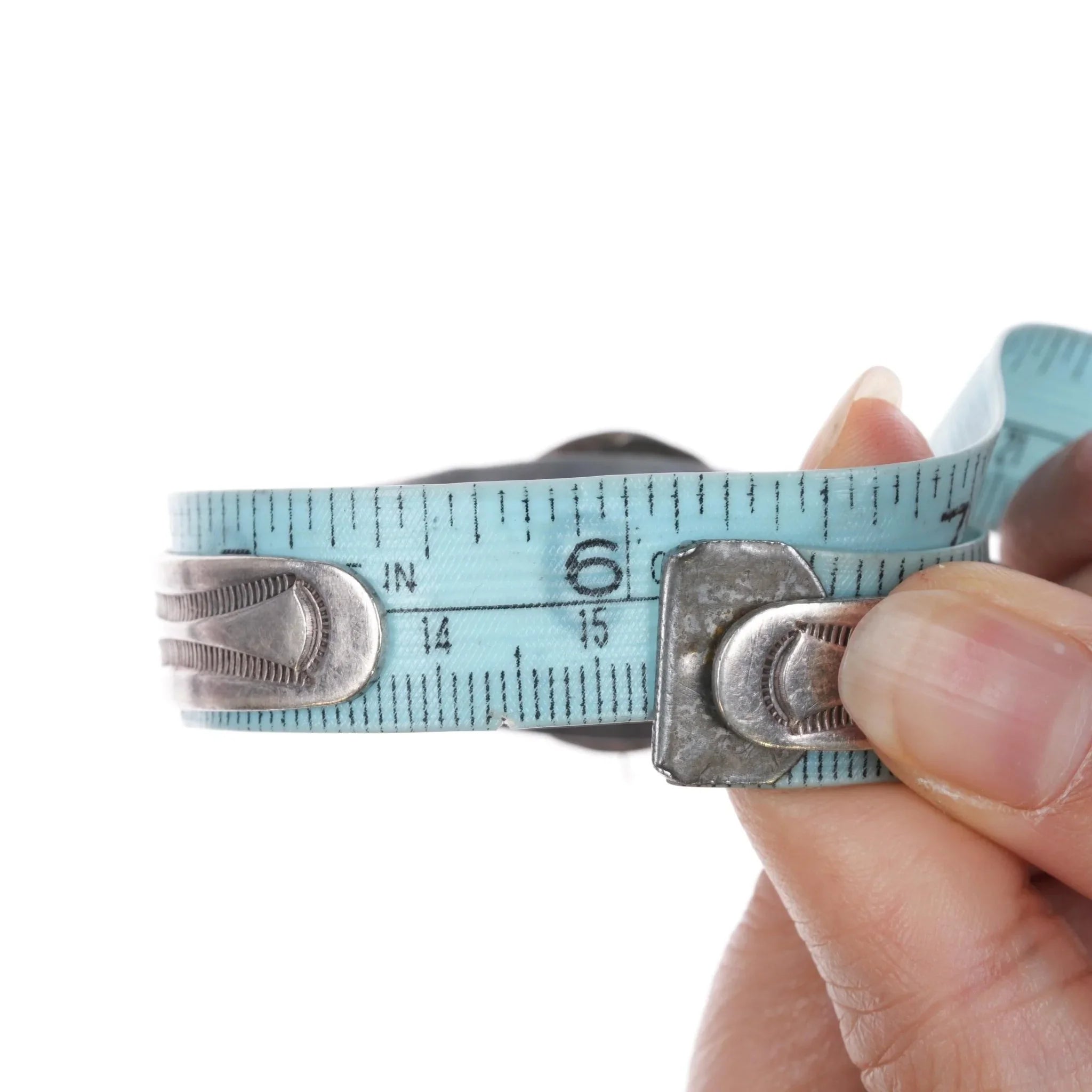 All precious metals are tested and guaranteed. A Native American jewelry piece referred to as "silver" or "ingot" is guaranteed to be at least 90% silver. I rarely use the word "sterling" when referring to older Native American silver or really any older silver jewelry as silver contents vary and "sterling" is 92.5% silver. No older jewelry is going to be exactly 92.5% silver, some a little over, some a little under. It wasn‘t an exact thing with handmade jewelry. I‘ve seen thousands of pieces xrf‘d to prove this. Bracelets are photographed on a 6" women‘s wrist.