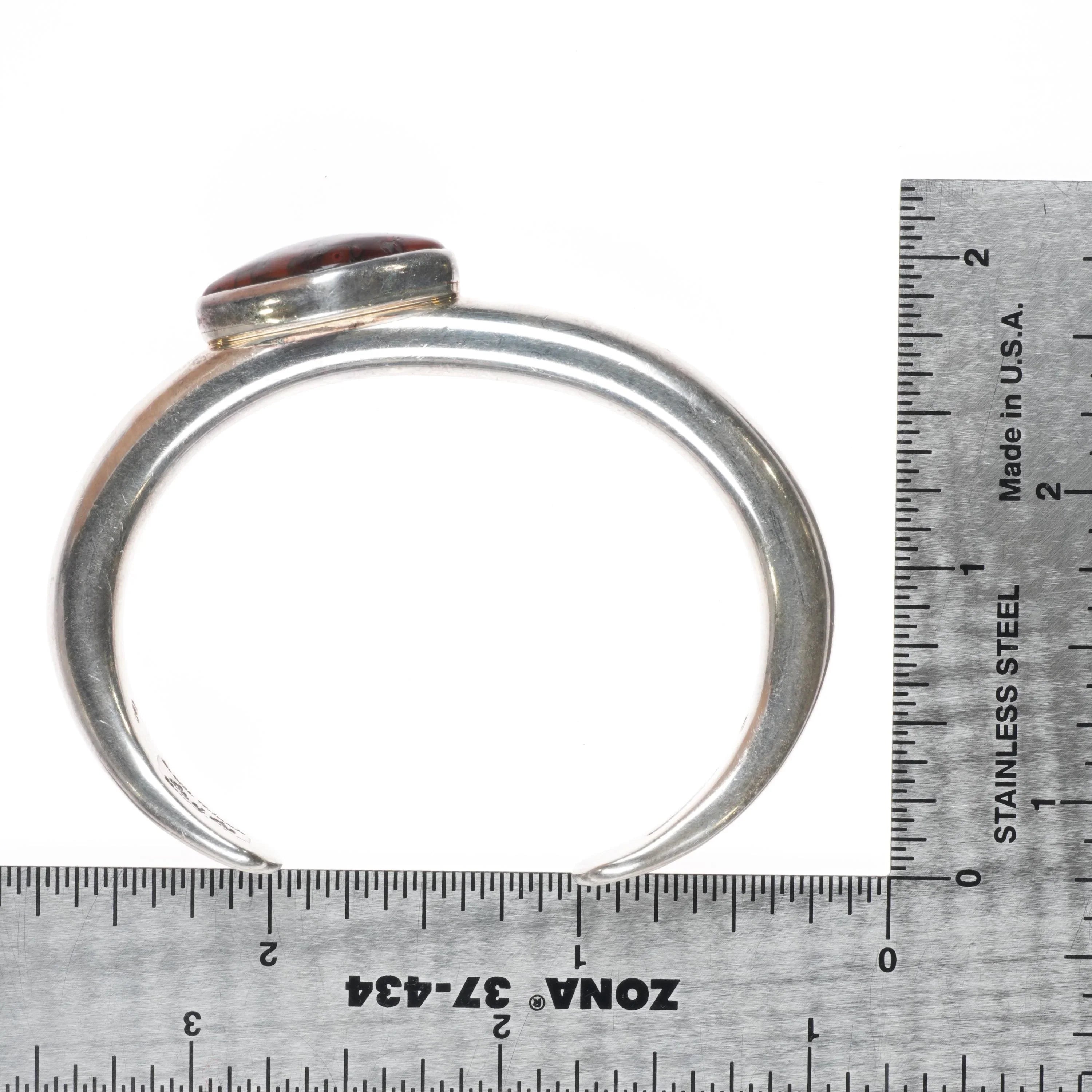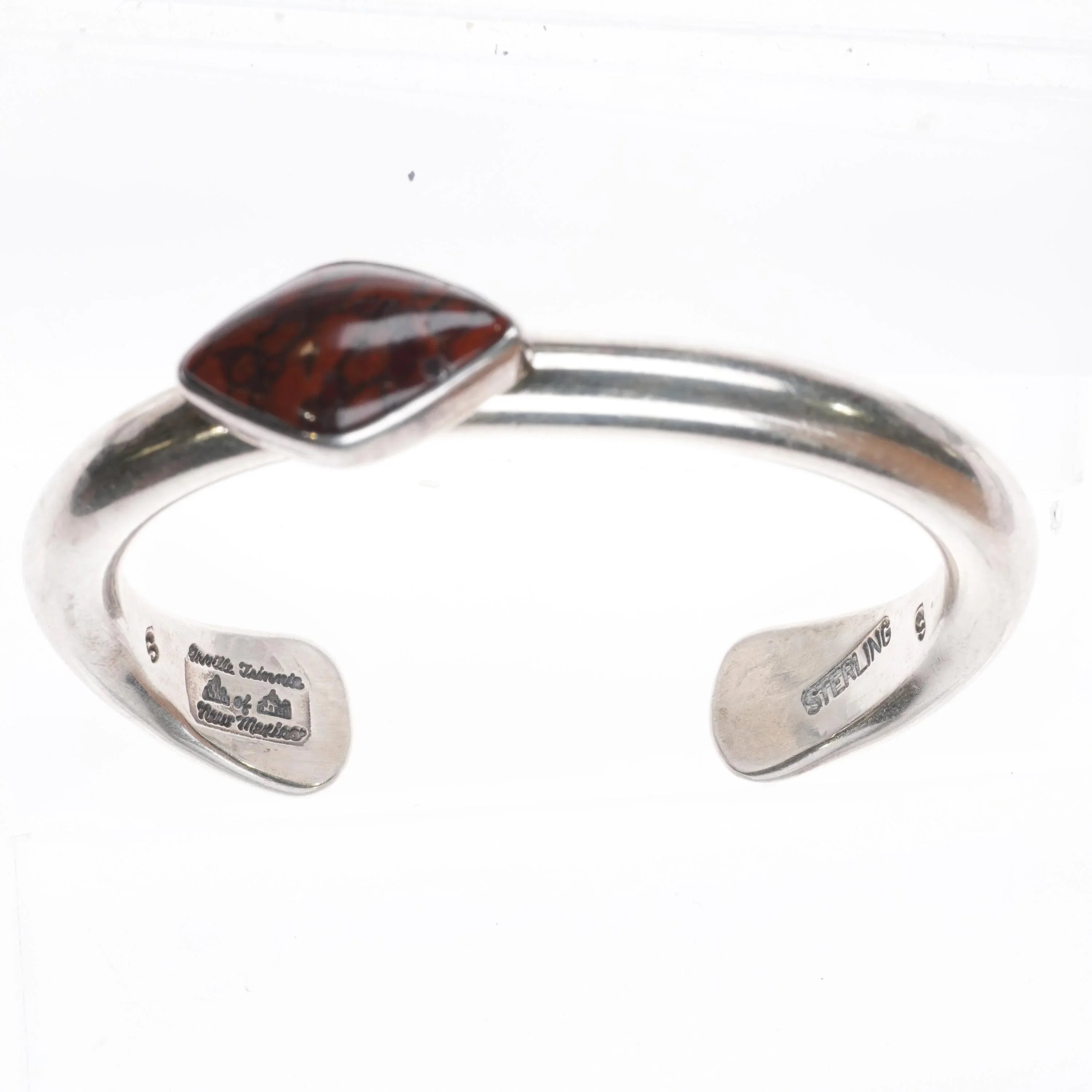 6" Orville Tsinnie Navajo sterling silver agatized petrified wood cuff bracelet. Tested and guaranteed solid sterling silver with weight and measurements in pictures. Good condition, circa last quarter of the 20th century. This and most of the items from this collection were collected but unworn.