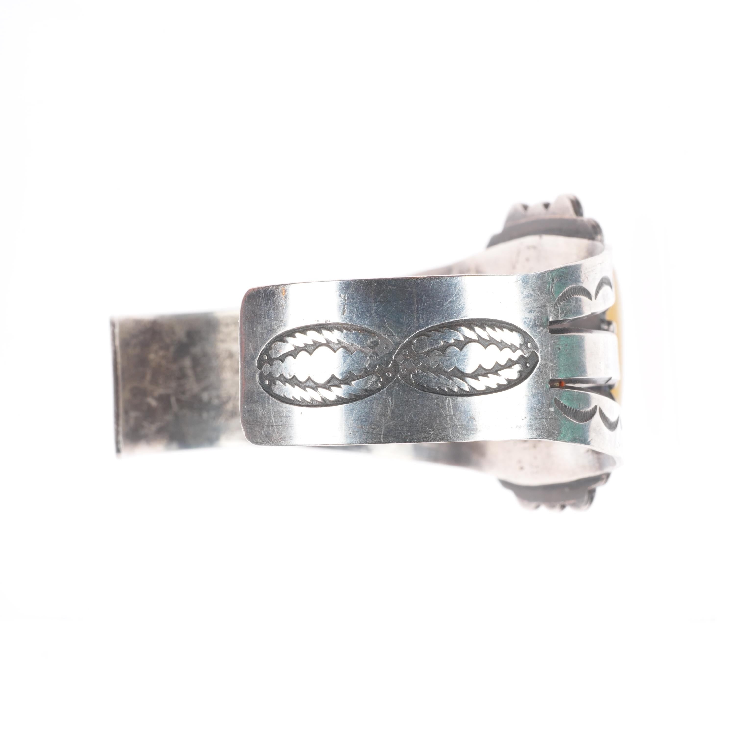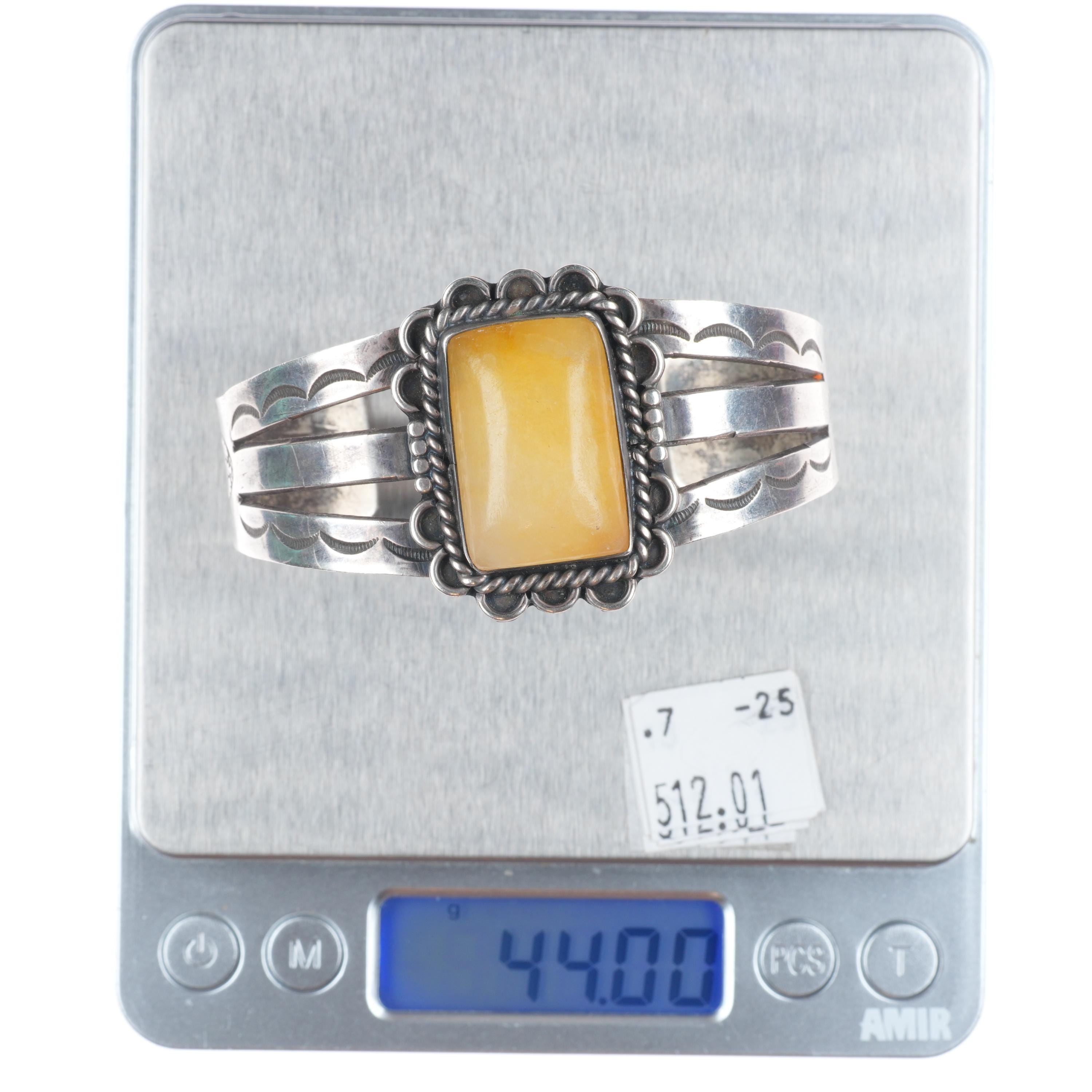 7.1" 1940's Navajo sterling silver yellow Quartz cuff bracelet. Tested and guaranteed solid sterling silver with weight and measurements in pictures. Circa second quarter of the 20th century with some expected age appropriate wear. This stone seems translucent, I think it's quartz but may be wrong.