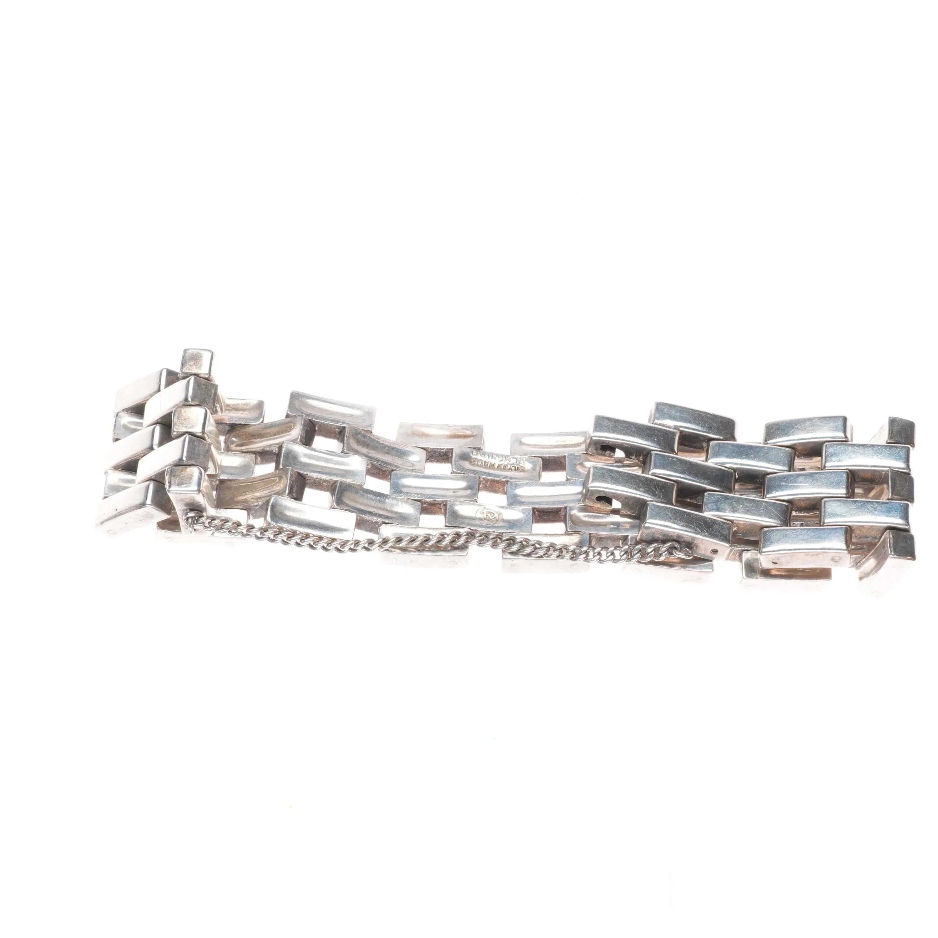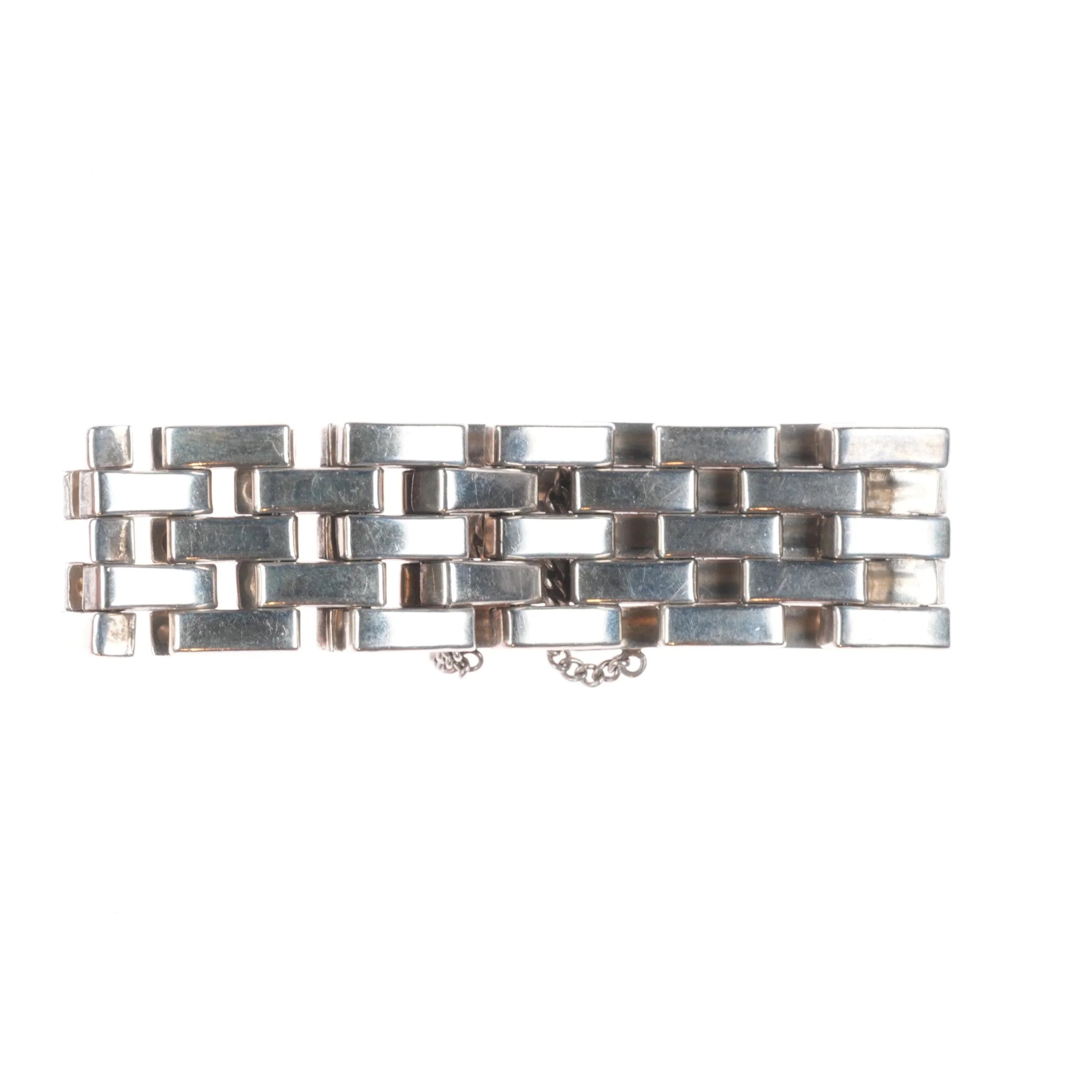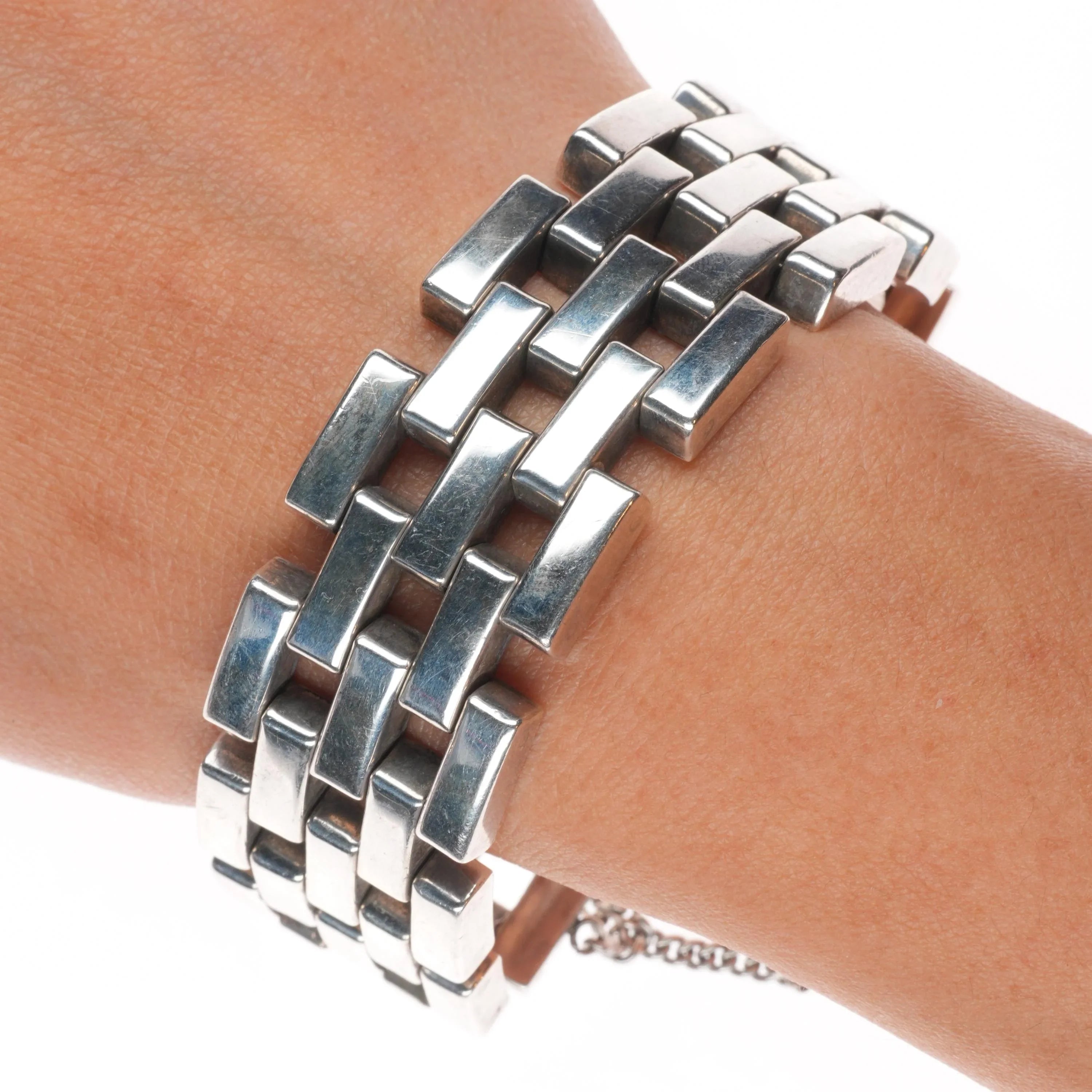 7" 1940's Mexican modernist sterling silver link bracelet CA