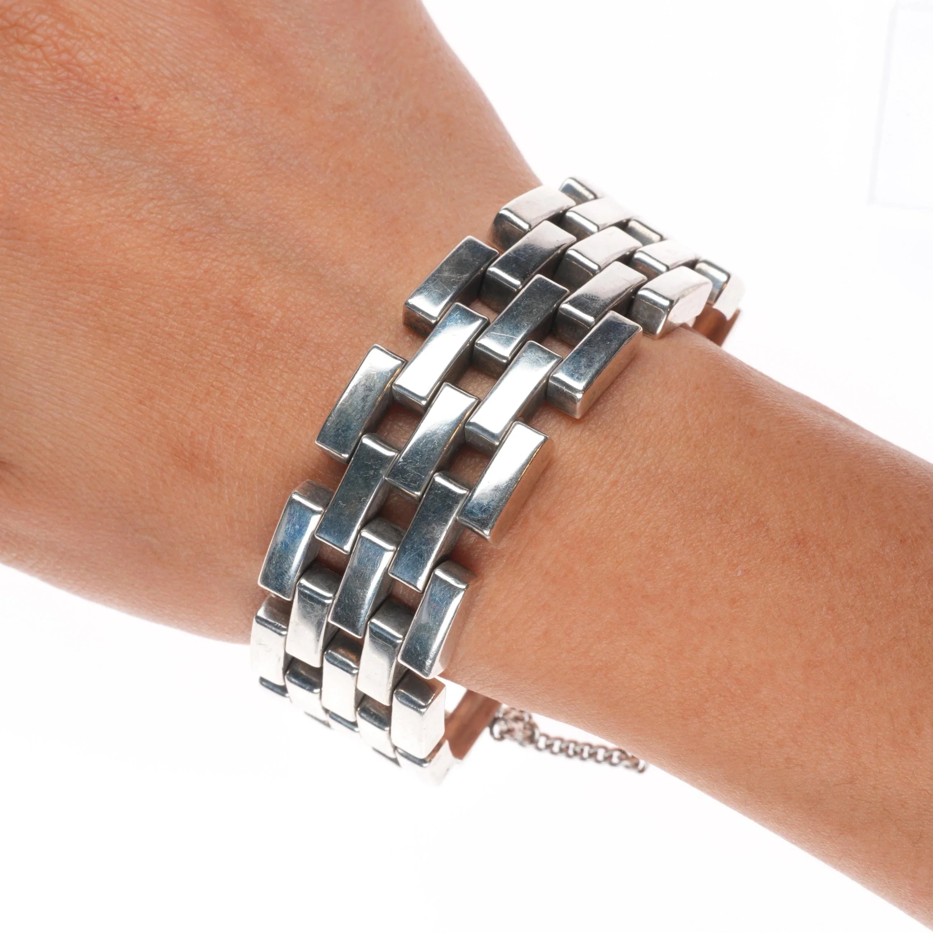 7" 1940‘s Mexican modernist sterling silver link bracelet CA. Weight and measurements in pictures, solid sterling silver. Marked as shown with no damage.