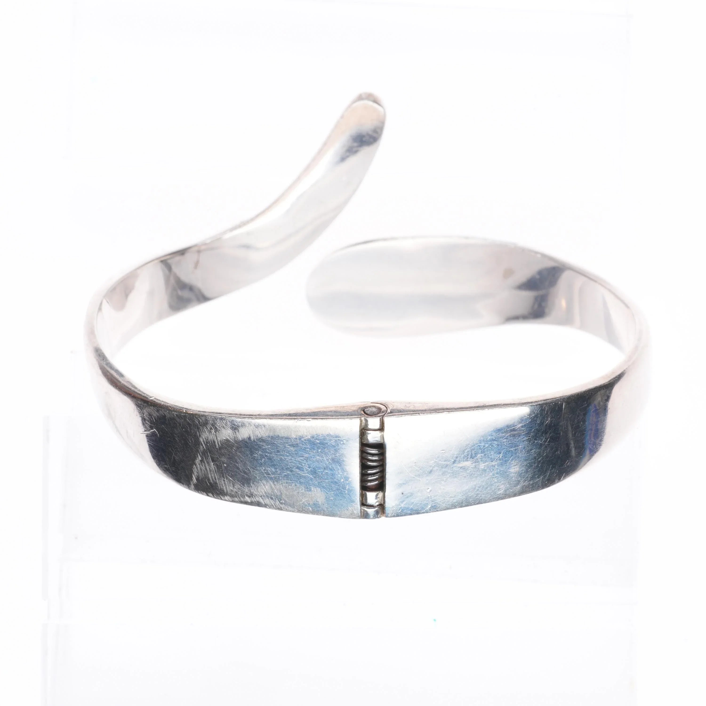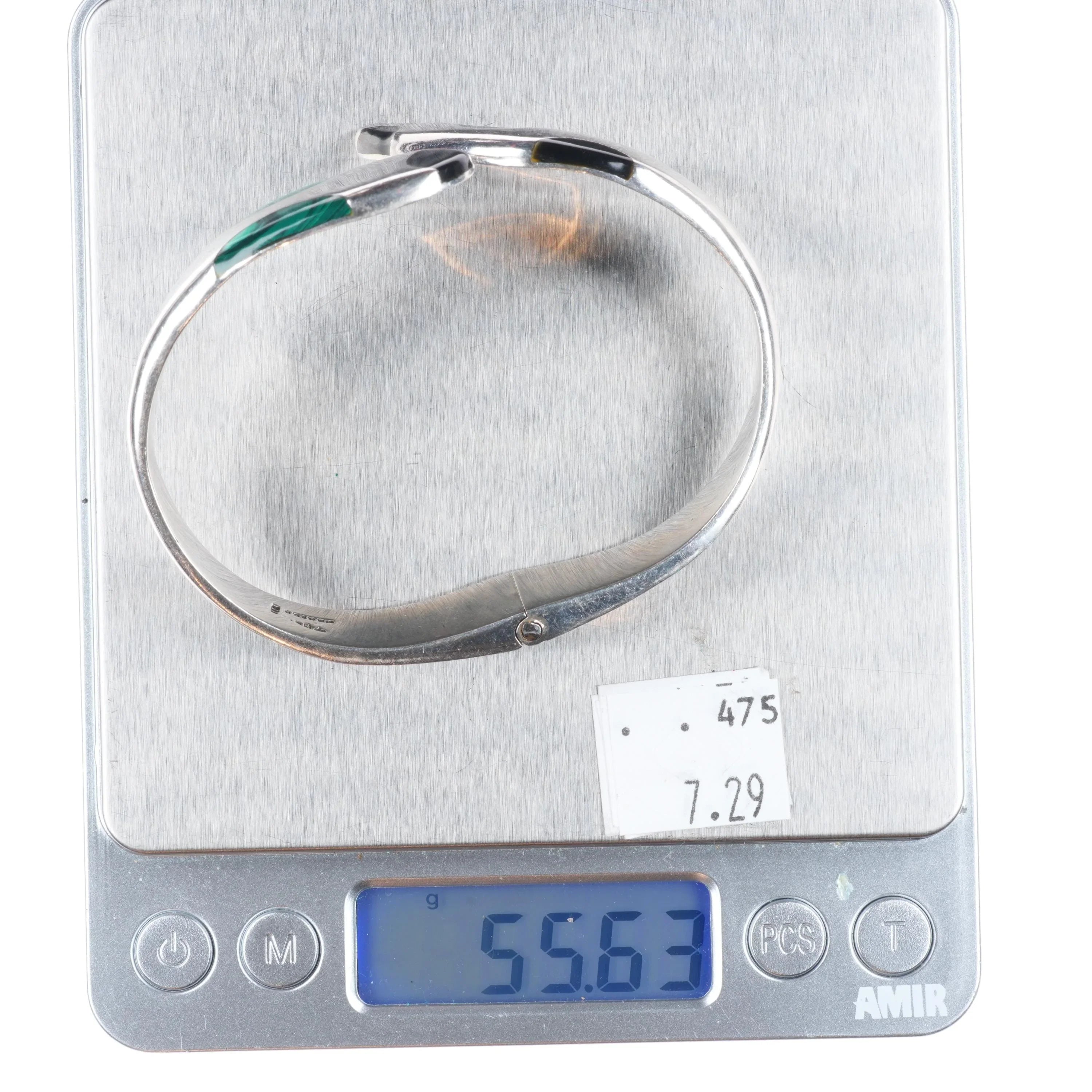 7.25" Retro Mexican sterling silver snake clamper bangle bracelet malachite/onyx. Weight and measurements in pictures, solid sterling silver. Fully functional, with no issues.