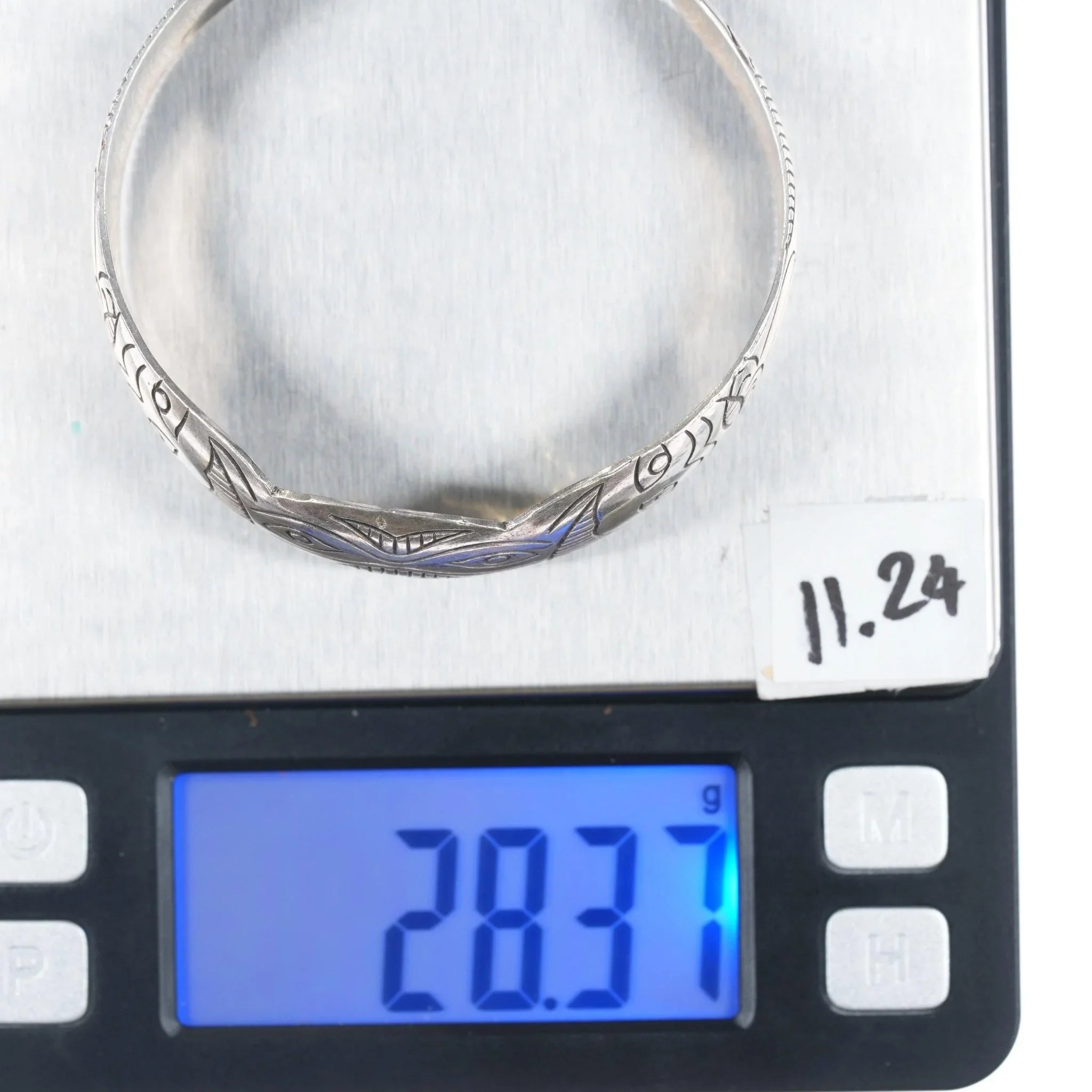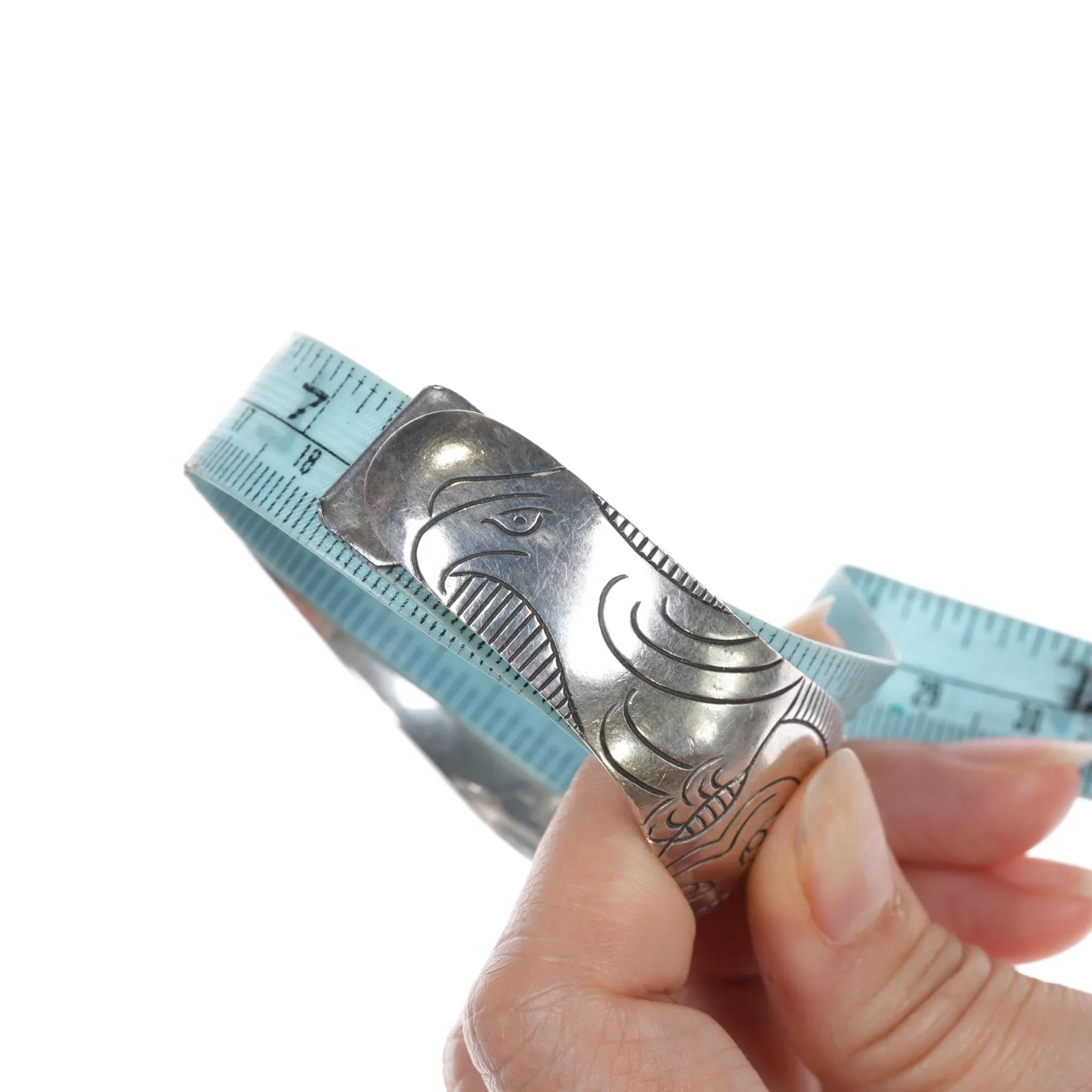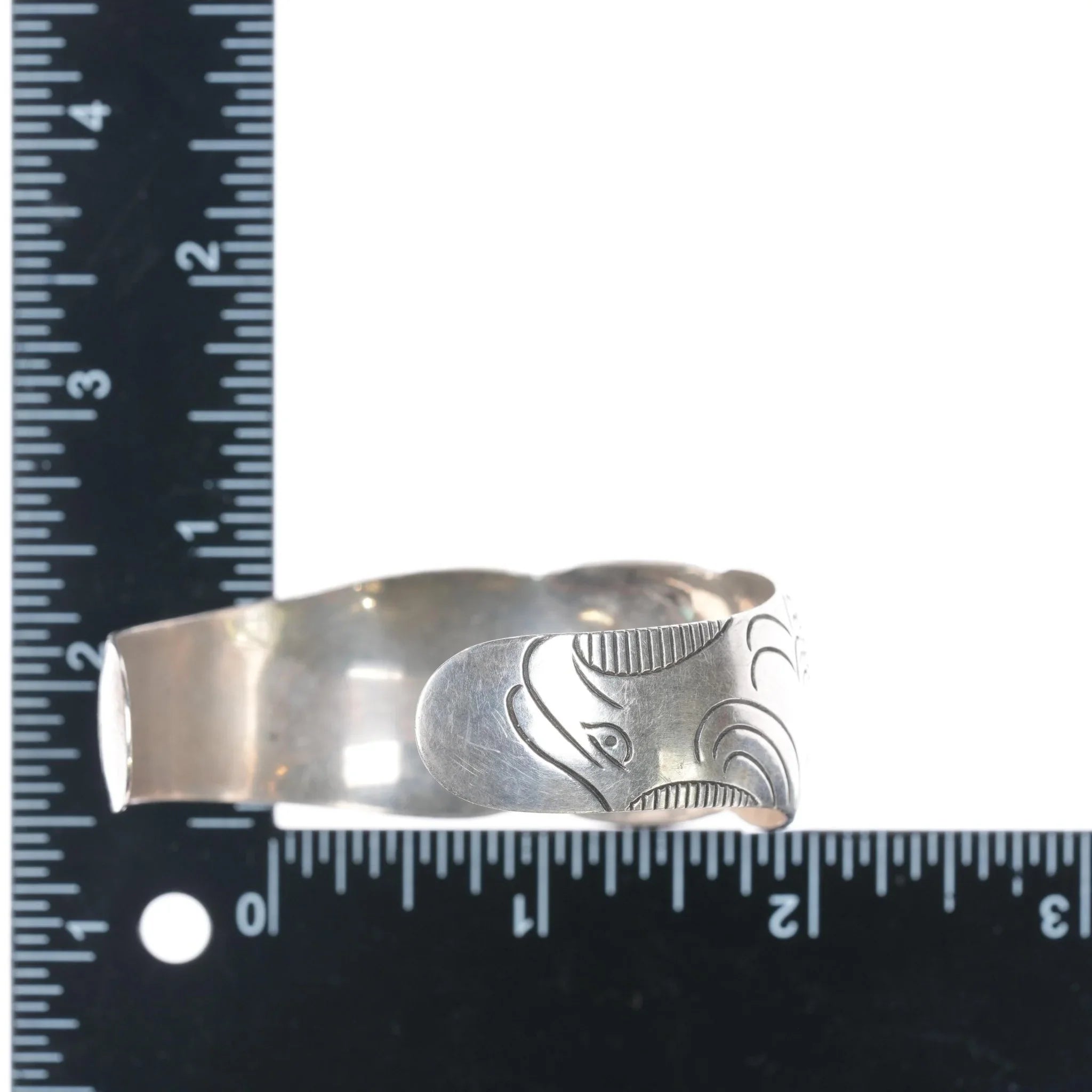 7.25" Vintage Northwest coast style sterling cuff bracelet. Weight and measurements in pics. Solid sterling, marked sterling with no other markings. Circa third quarter of 20th century.