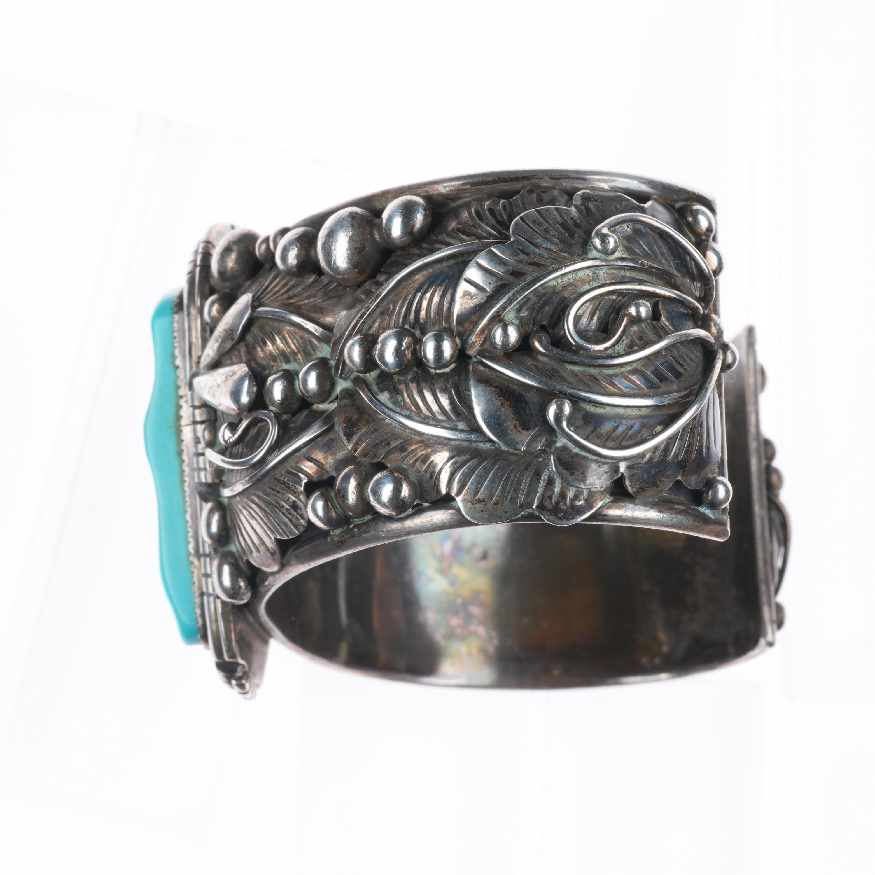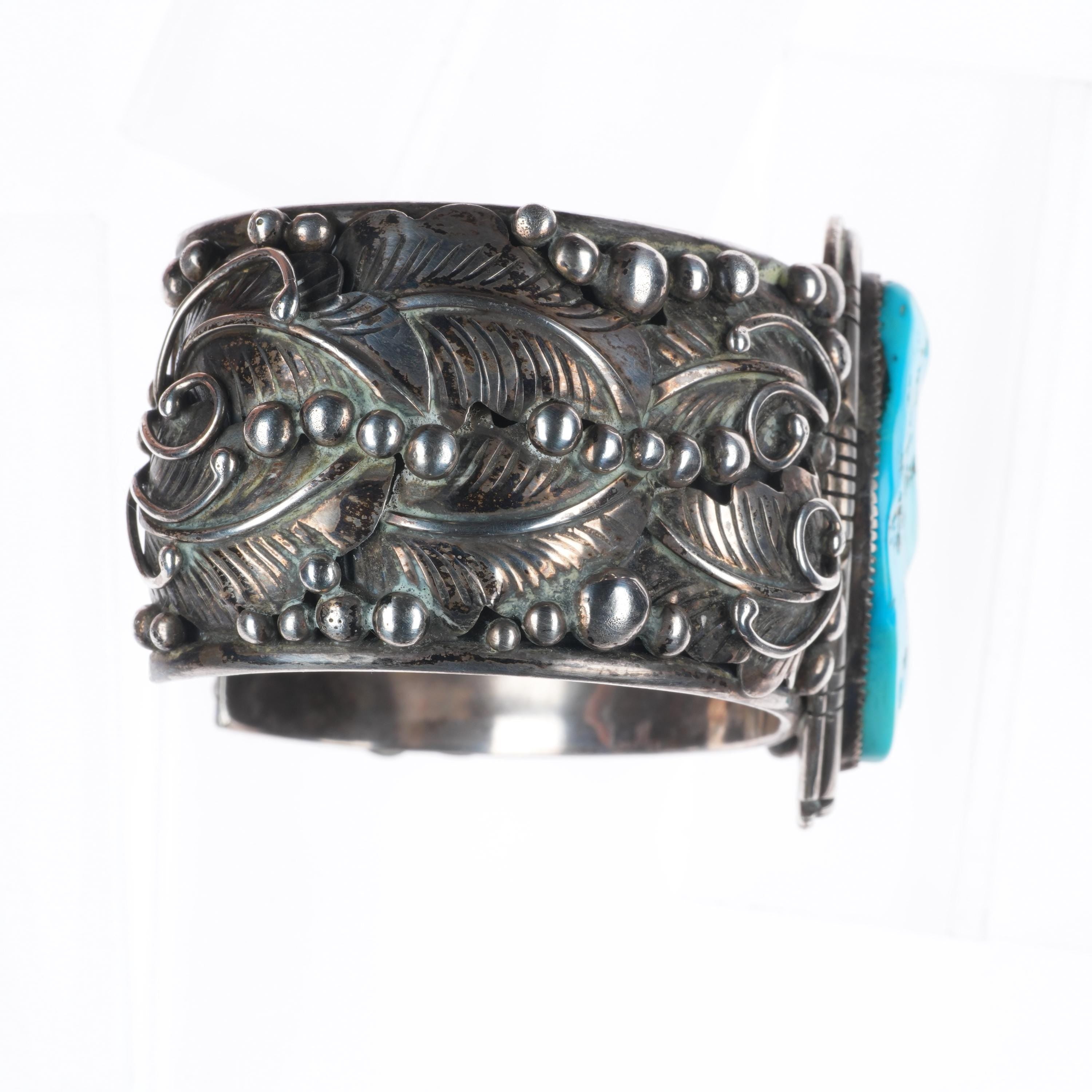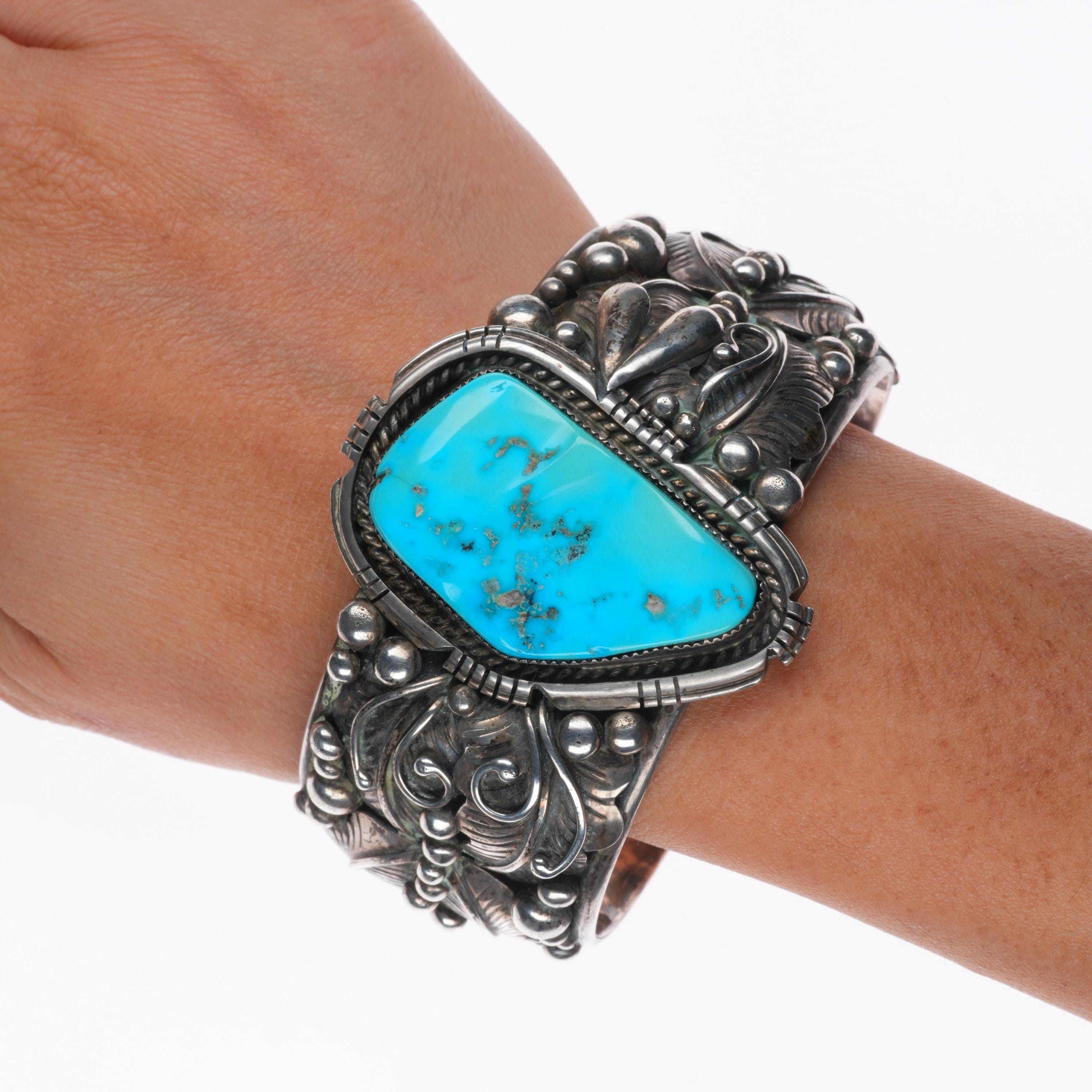 7.25" Vintage Sylvia Chee Navajo sterling silver Kingman turquoise cuff bracelet. Tested and guaranteed solid sterling silver with weight and measurements in pictures. Circa third quarter of the 20th century with age appropriate wear..