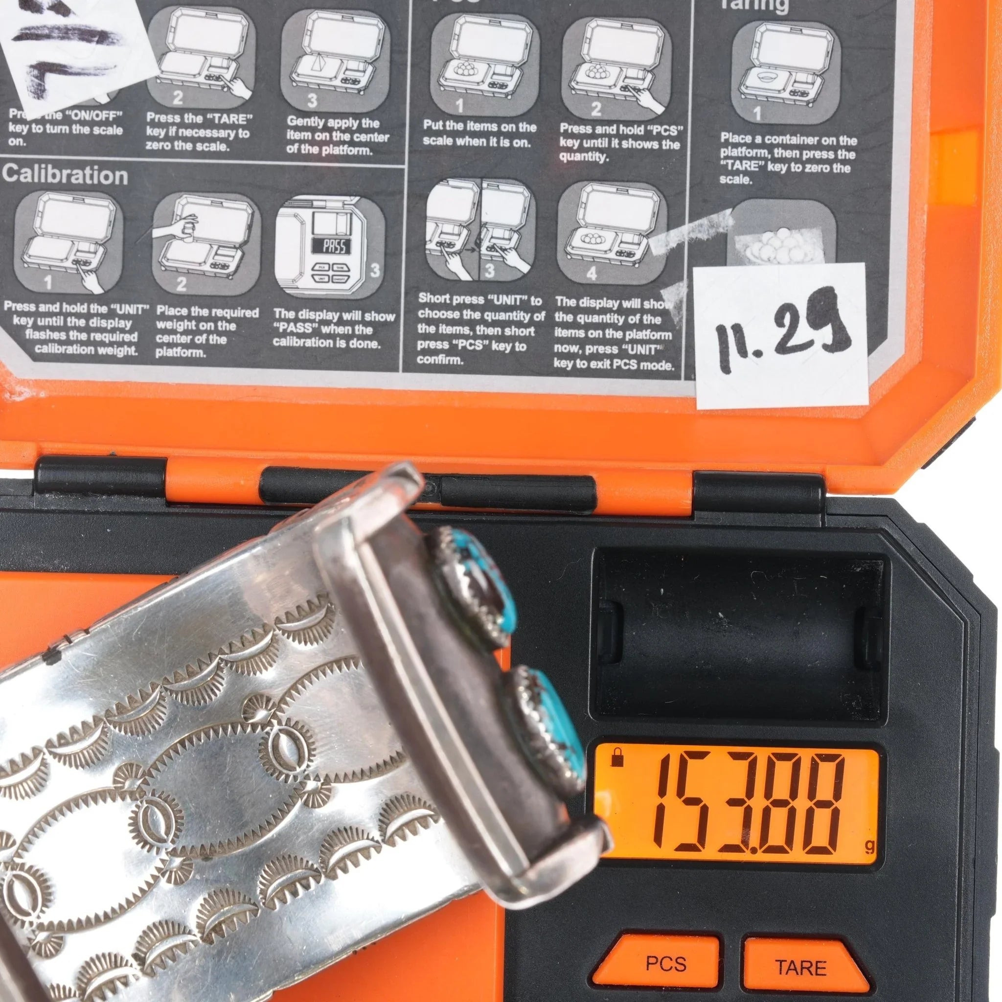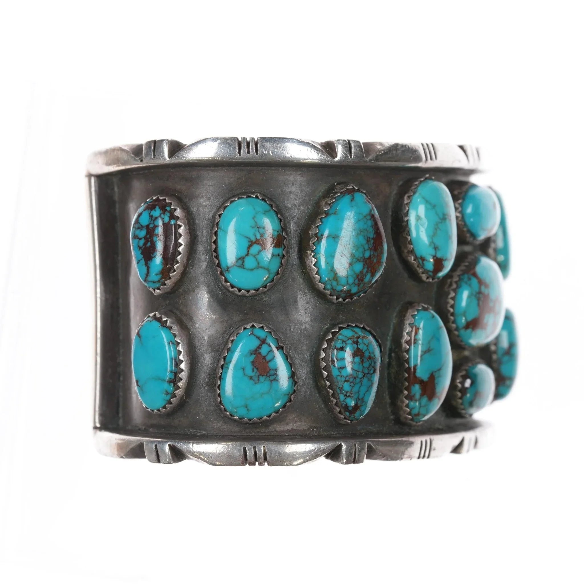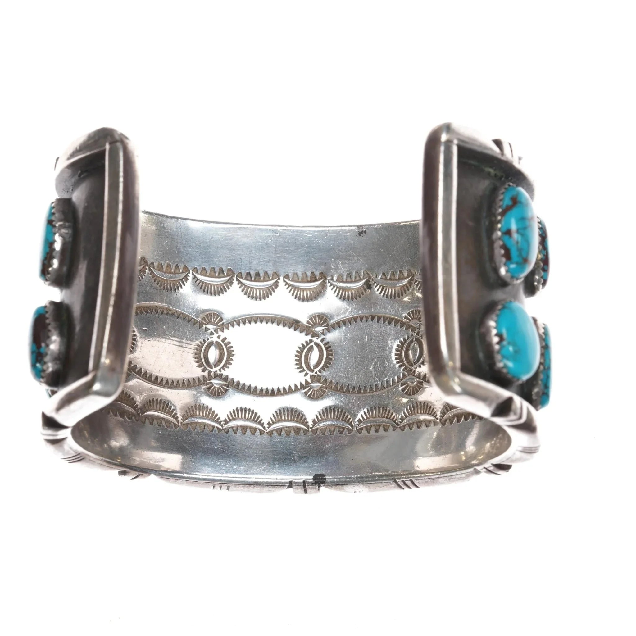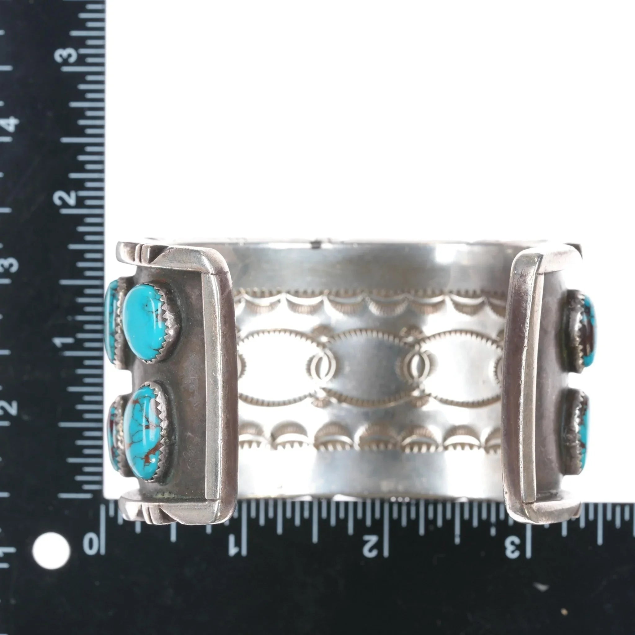 7.5" Clarence Chama Navajo Interior stamped high grade turquoise cuff bracelet