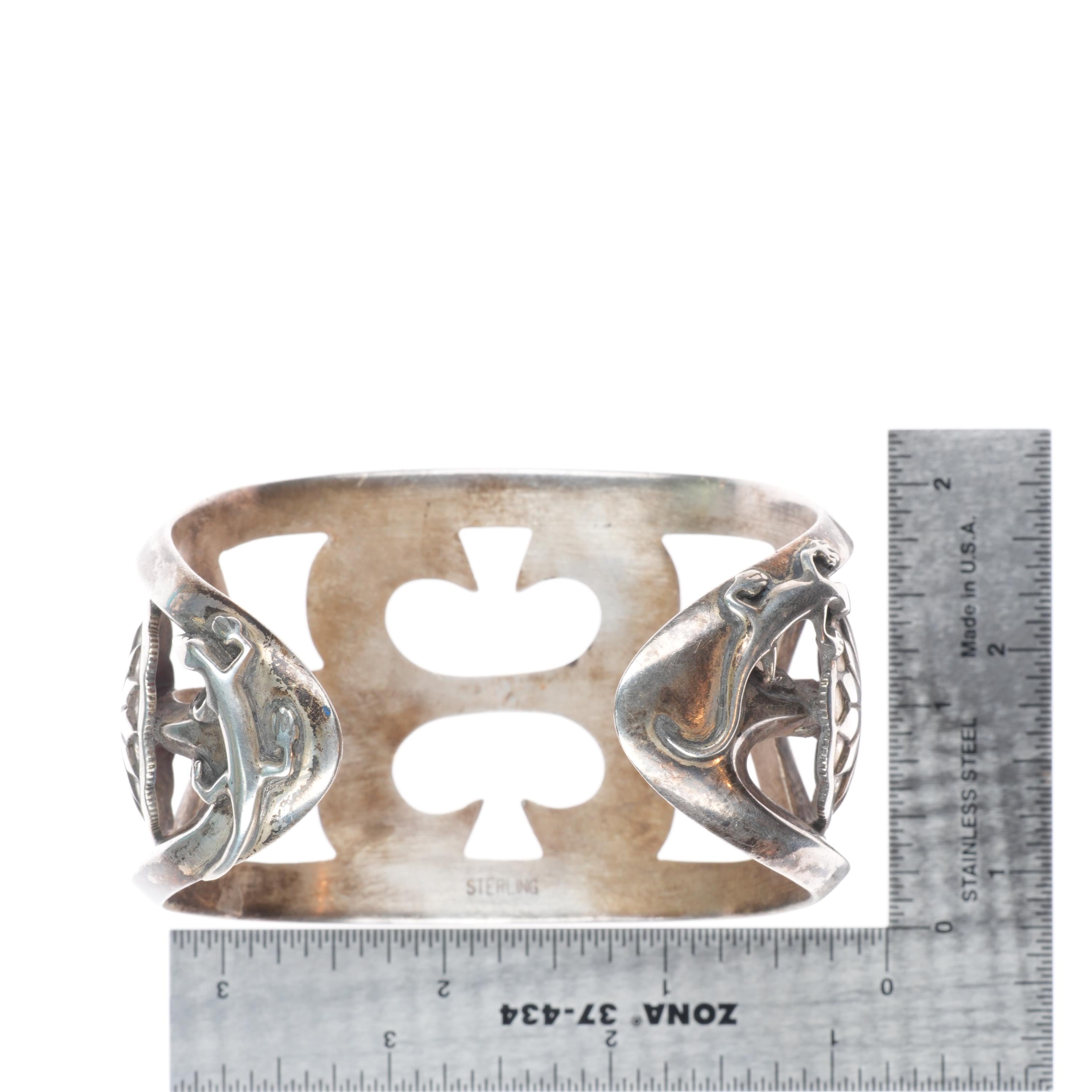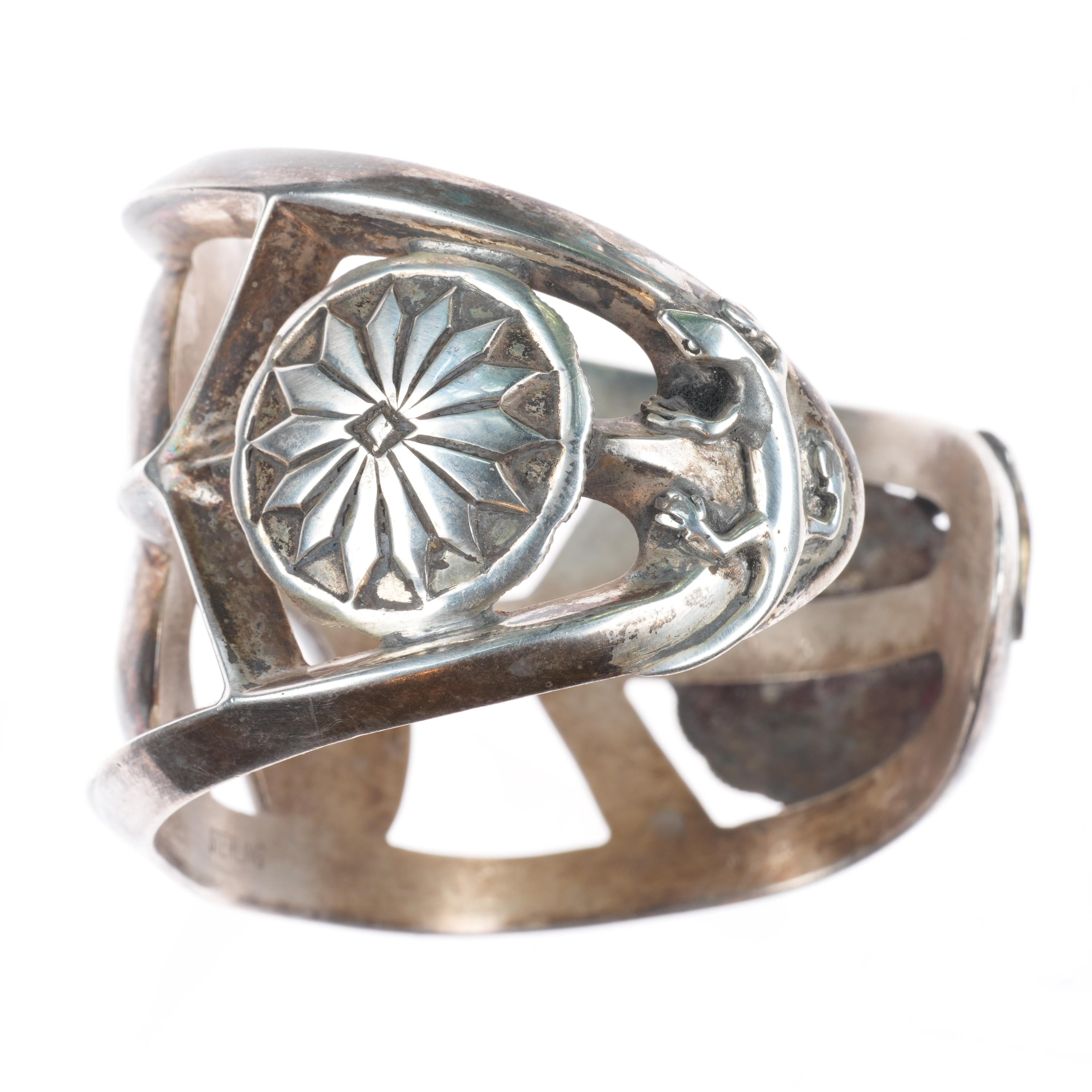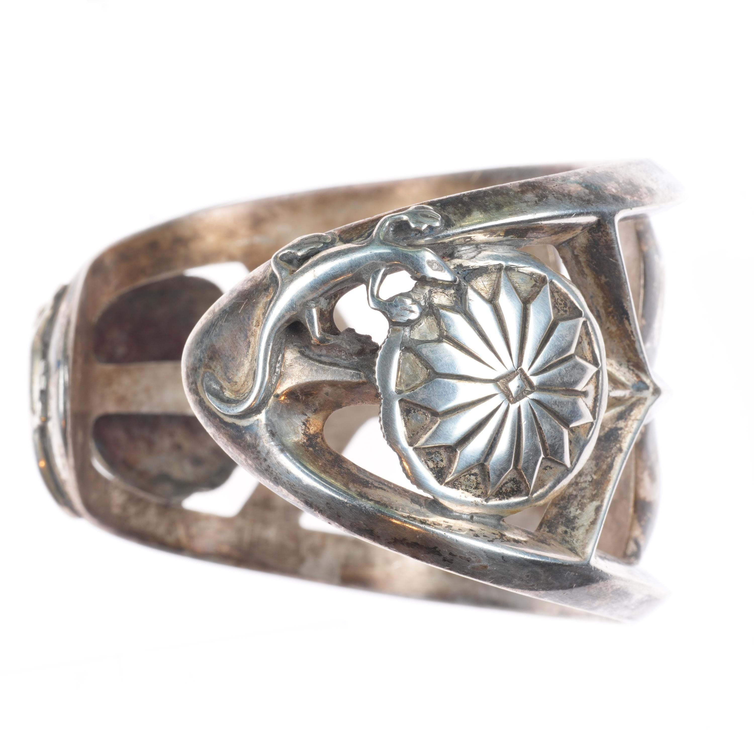 7.5" Huge Vintage Navajo sterling silver cast cuff bracelet w/ lizards