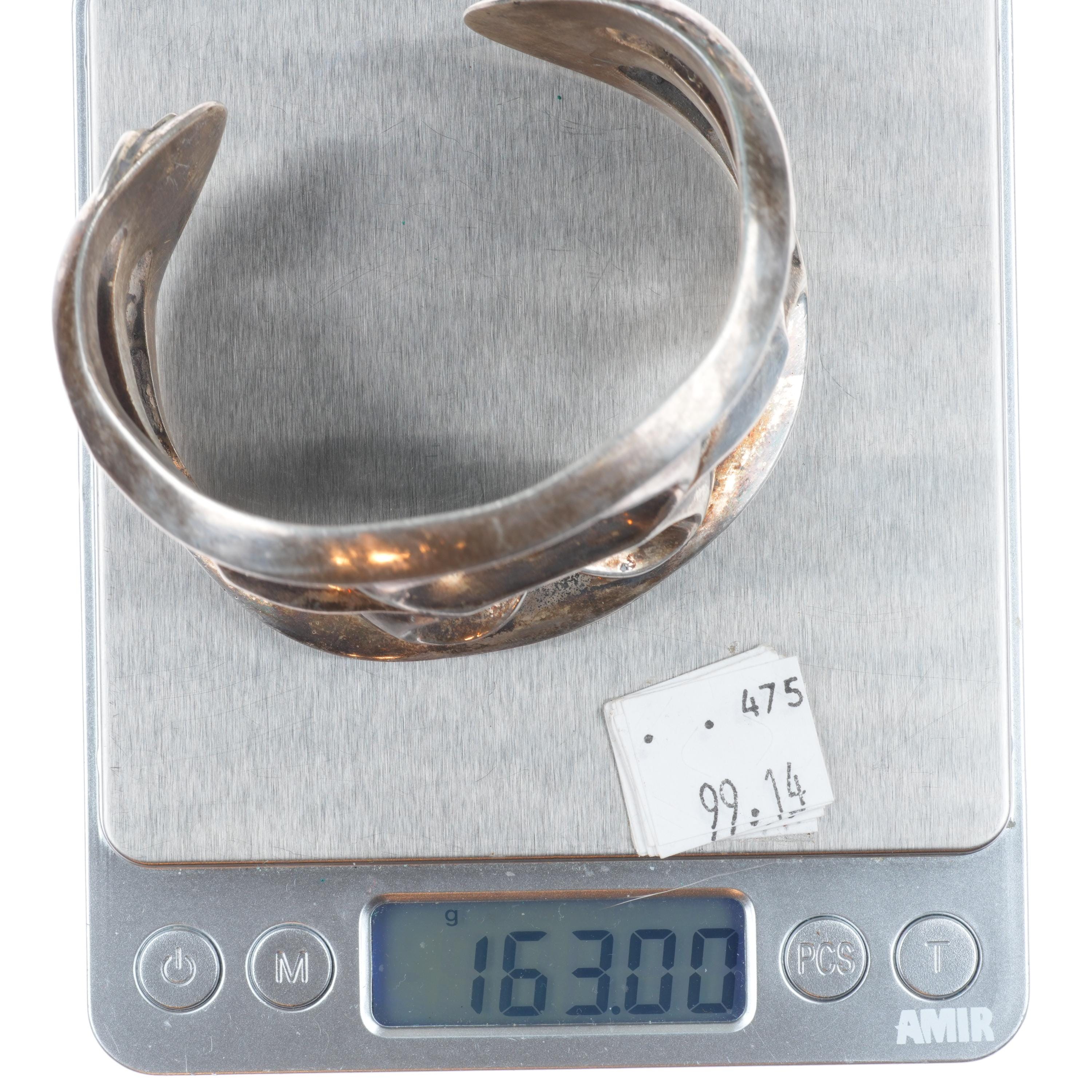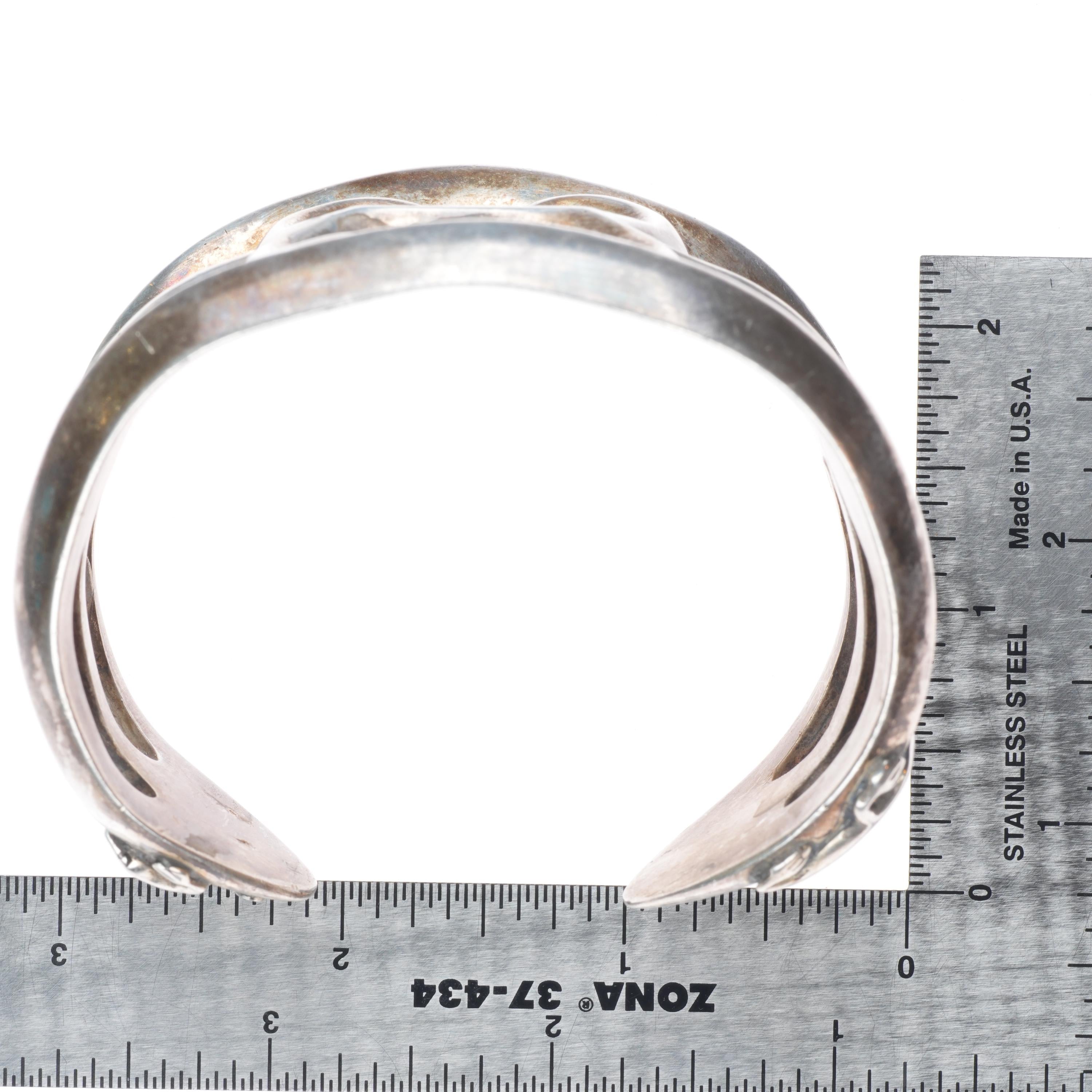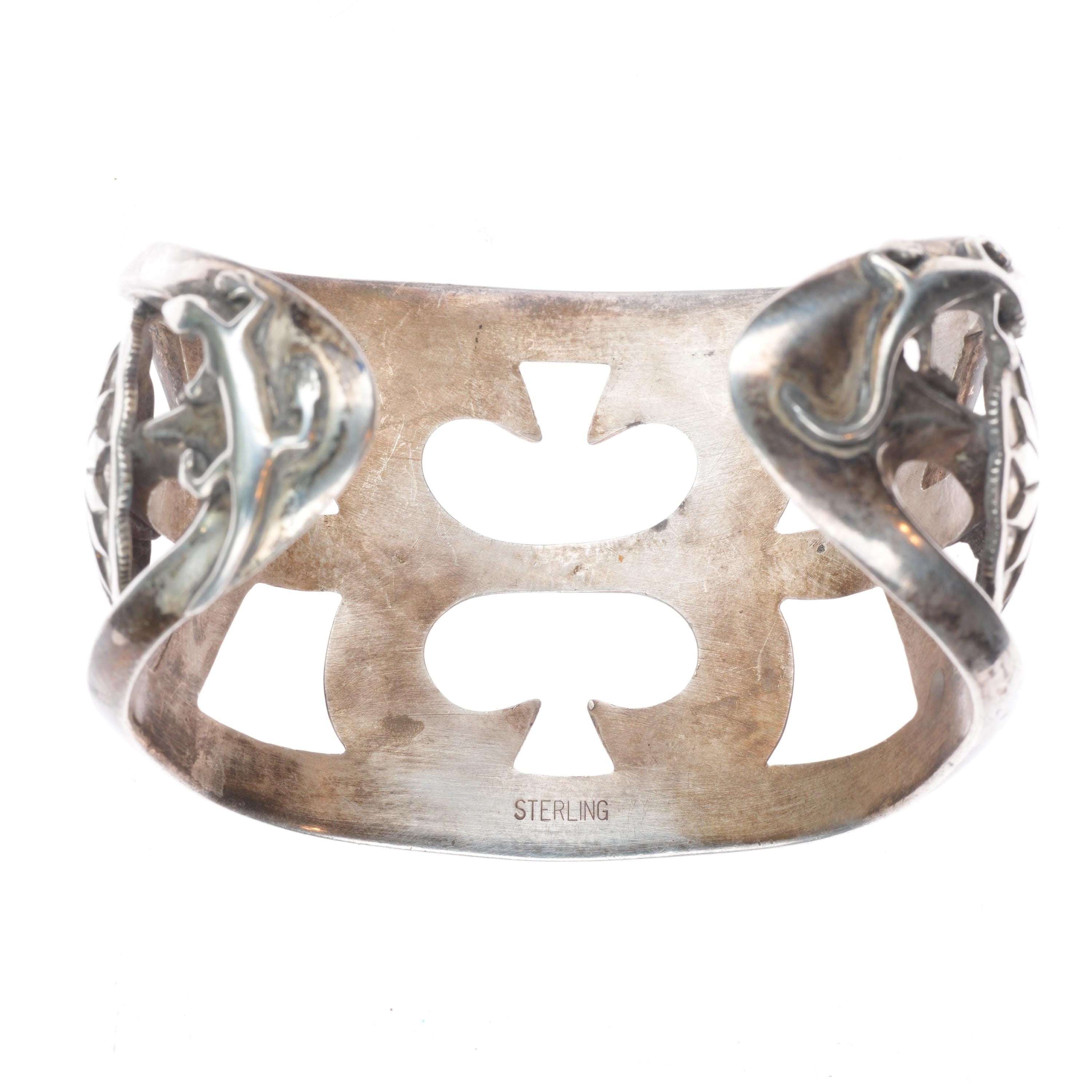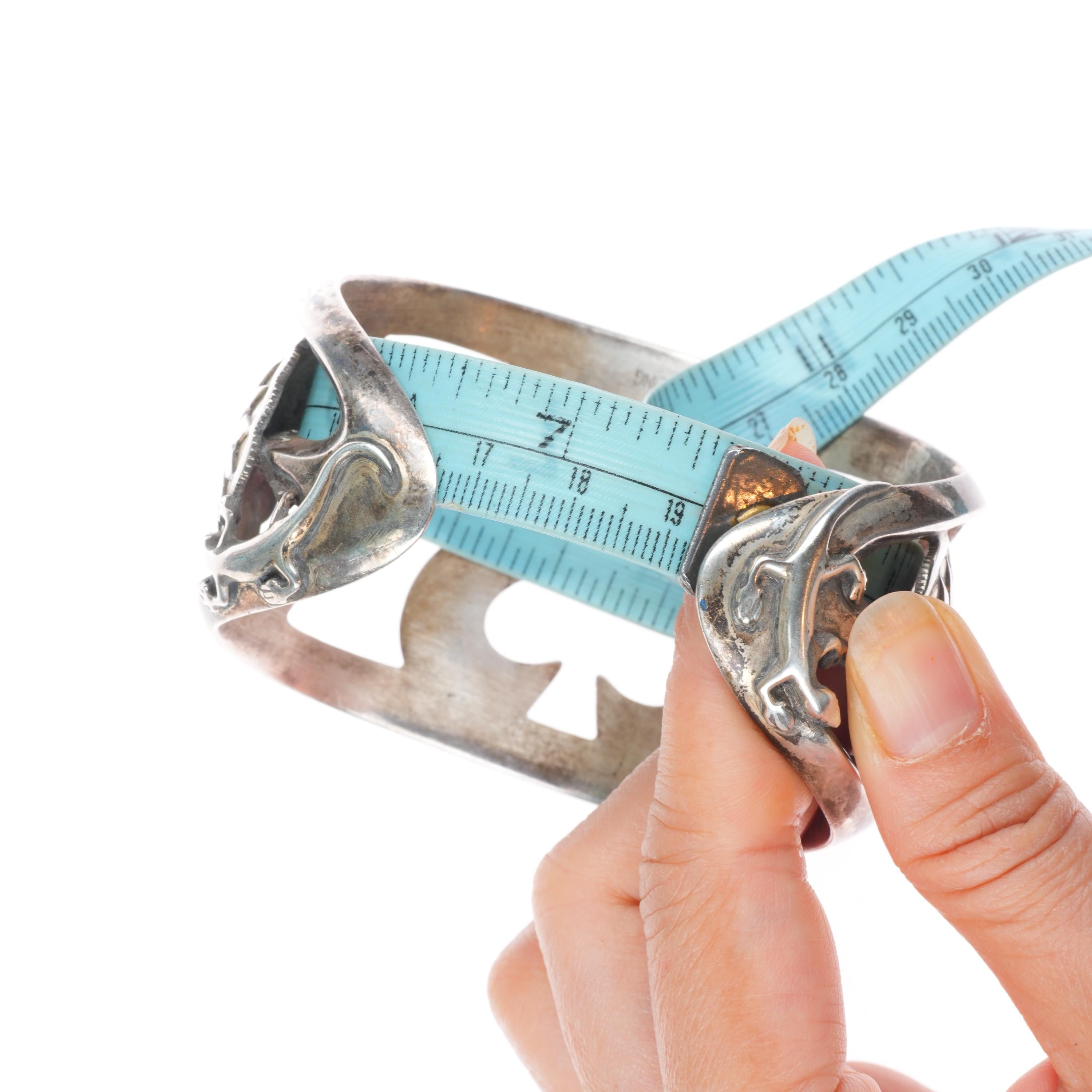 7.5" Huge Vintage Navajo sterling silver cast cuff bracelet w/ lizards